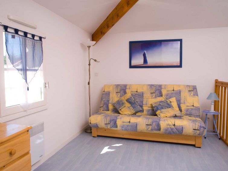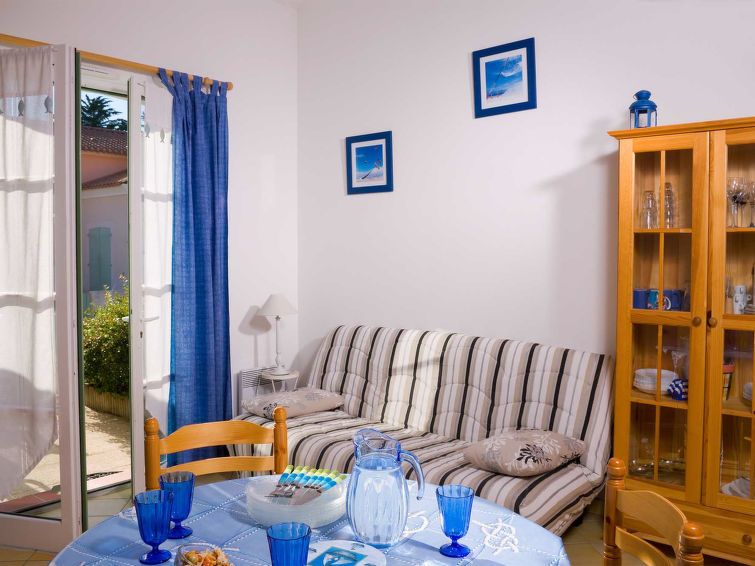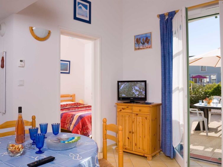 "Les Mas de St. Hilaire", 2-room terraced house 38 to 44 m2 on 2 levels. Practical furnishings: living/dining room with 1 sofabed, dining table and TV can be hired. 1 room with 1 french bed (140 cm, length 190 cm). Kitchenette (4 ceramic glass hob hotplates, toaster, kettle, microwave, electric coffee machine).