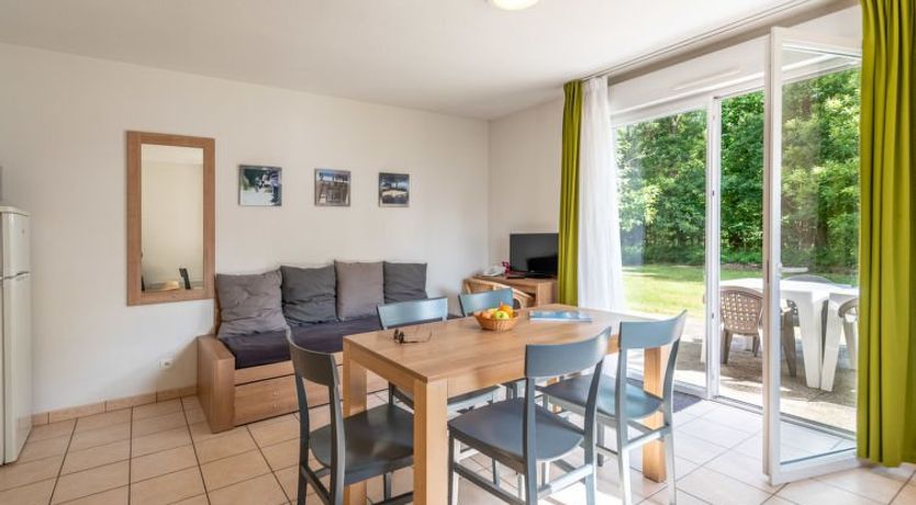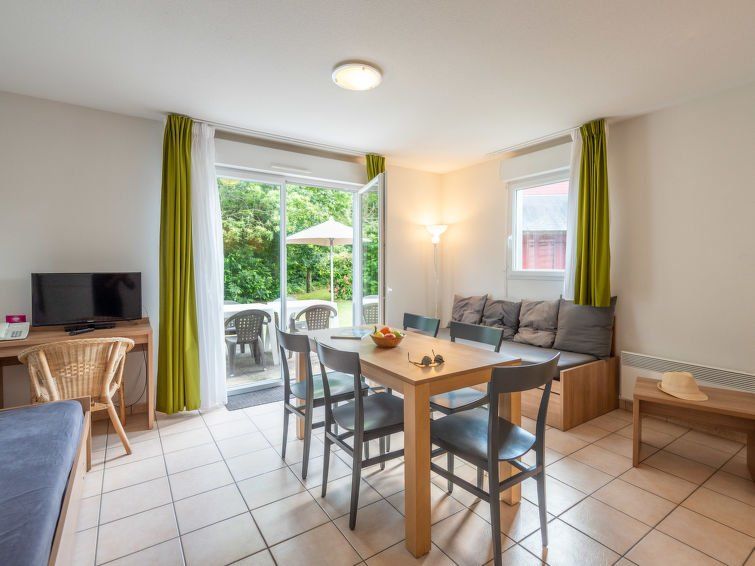 "Cottage Confort 5 Pers.", 2-room terraced house 39 m2. Practical furnishings: living/dining room with 1 sofabed (80 cm, length 190 cm), 1 pull-out bed (2 pers. 2 x 80 cm, length 190 cm), dining table and TV. Exit to the terrace. 1 room with 1 double bed (2 x 80 cm, length 200 cm).