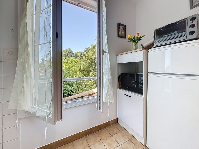2-room apartment 30 m2 on 1st floor. Simple furnishings: living/dining room with TV (flat screen). 1 room with 1 french bed (140 cm, length 190 cm). Kitchenette (4 hot plates, mini-oven, oven, toaster, kettle, microwave, electric coffee machine). Shower, sep. WC. Facilities: washing machine.