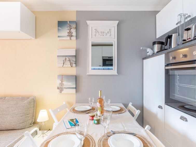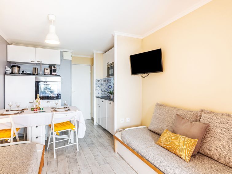 "Le Hameau (L1 310)", 1-room studio 24 m2 on 2nd floor. Beautiful and cosy furnishings: living room with 2 sofabeds (80 cm, length 190 cm), TV (flat screen). Exit to the terrace. Sleeping alcove with 1 french bed (140 cm, length 190 cm). Kitchenette (4 hot plates, oven, dishwasher, toaster, kettle, microwave, freezer, electric coffee machine, Capsules for coffee machine (Nespresso) extra).