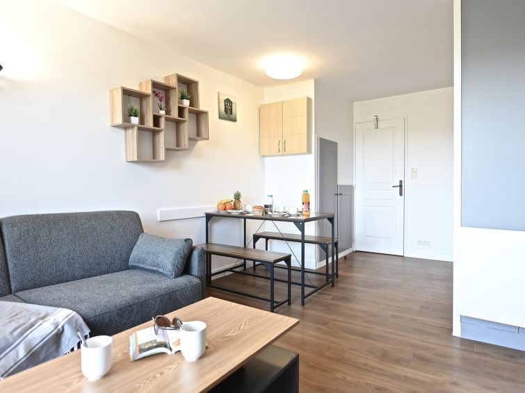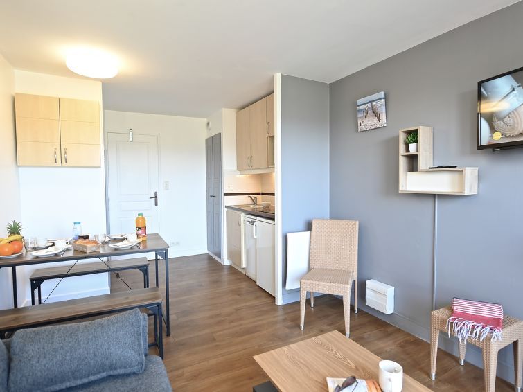 "Le Village (C7 351)", 2-room apartment 28 m2 on 2 levels on 2nd floor. Bright, renovated in 2024, very comfortable and modern furnishings: living room with 1 sofabed (140 cm, length 190 cm), TV (flat screen). Exit to the terrace. Kitchenette (4 hot plates, dishwasher, toaster, kettle, microwave, electric coffee machine).