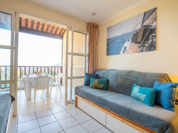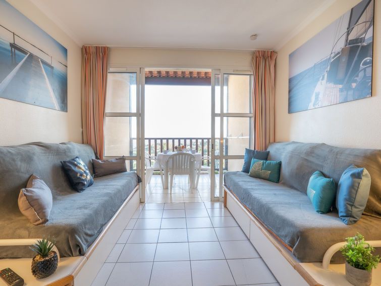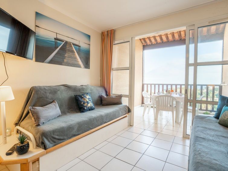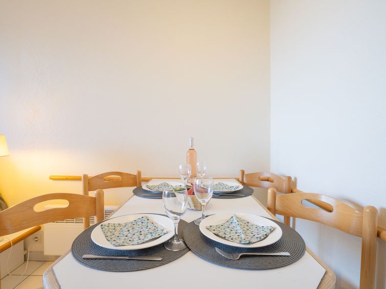 "Le Village (E1320)", 2-room apartment 28 m2. Object suitable for 2 adults + 2 children. Living/sleeping room with 1 pull-out bed (2 pers. 2 x 80 cm, length 190 cm), TV (flat screen). Exit to the terrace. 1 room with 1 french bed (140 cm, length 190 cm). Kitchenette (4 hot plates, dishwasher, toaster, kettle, microwave, electric coffee machine).