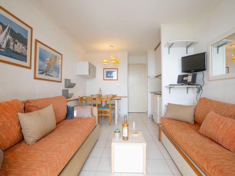 "Le Belvédère(R3 221)", 1-room studio 28 m2. Object suitable for 2 adults + 2 children. Living room with 1 pull-out bed (2 x 80 cm, length 190 cm), TV (flat screen), CD-player. Exit to the terrace. Sleeping alcove with 1 x 2 bunk beds (80 cm, length 190 cm). Kitchenette (4 hot plates, dishwasher, toaster, kettle, microwave, electric coffee machine).
