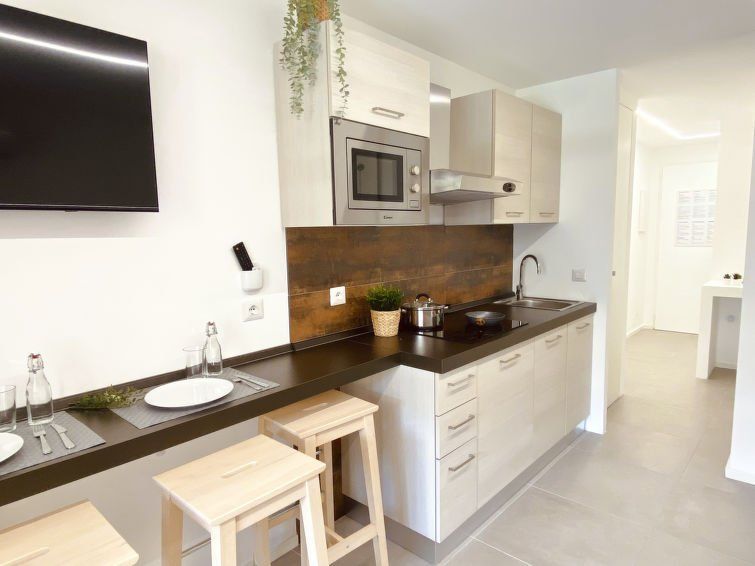 "L'Esquinade (J2 206)", 1-room studio 24 m2 on 1st floor. Object suitable for 2 adults + 2 children. Living room with 1 double sofabed (140 cm, length 190 cm), TV (flat screen). Exit to the terrace. Sleeping alcove with 1 x 2 bunk beds (80 cm, length 190 cm). Kitchenette (4 hot plates, dishwasher, toaster, microwave, electric coffee machine).