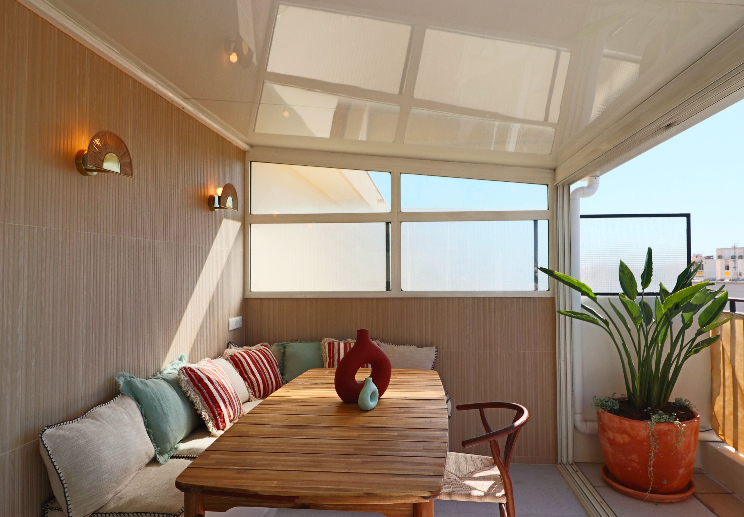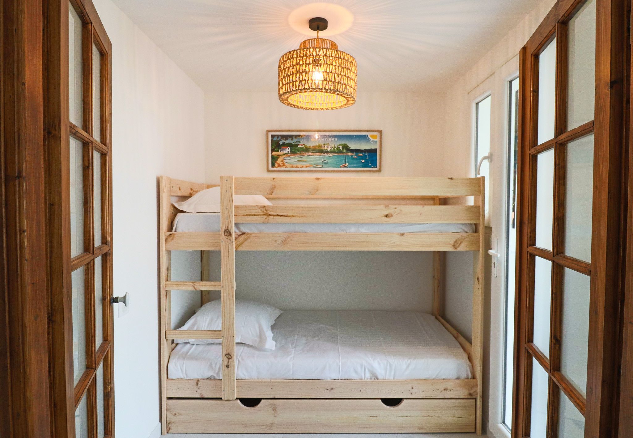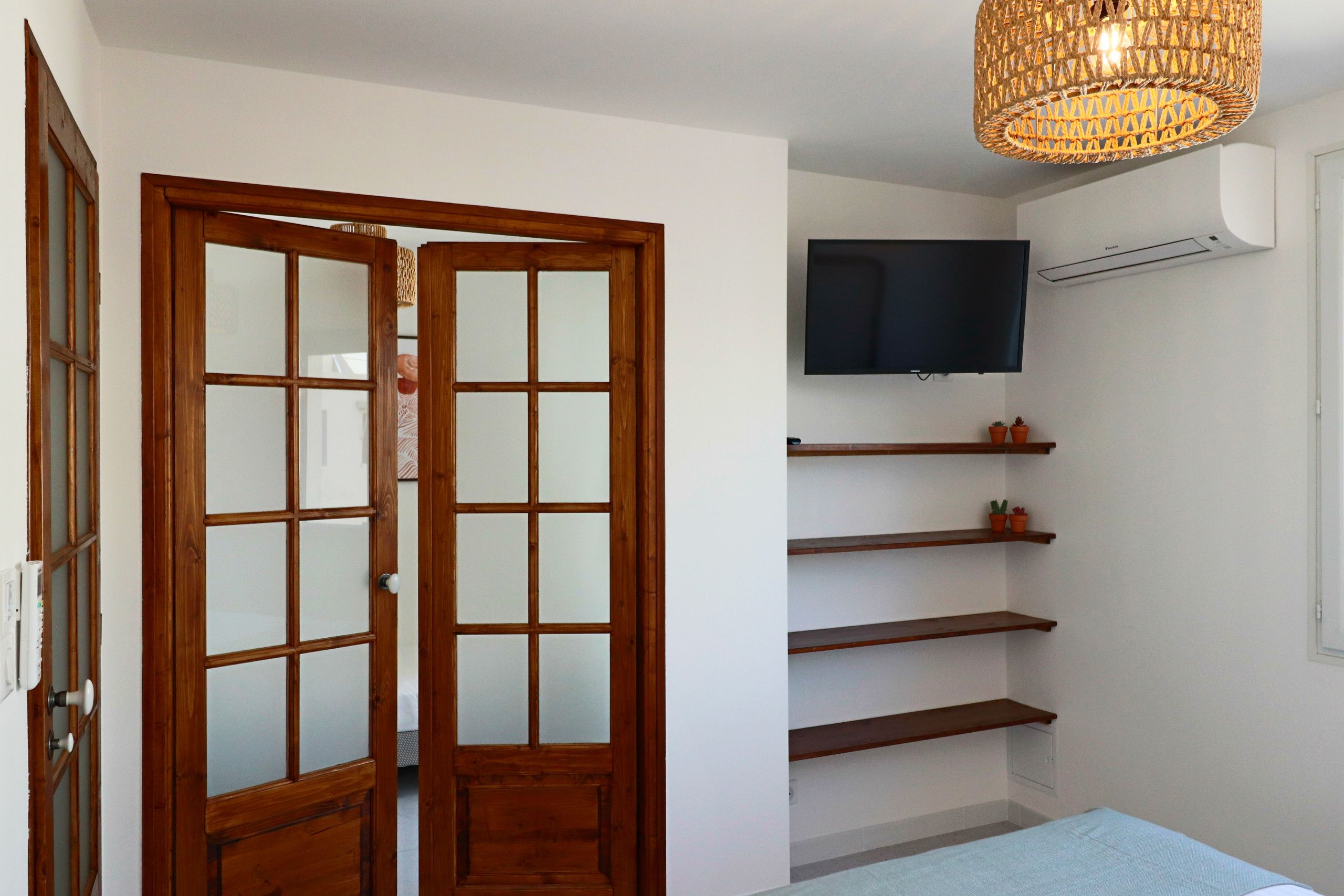 This mini penthouse puts you right in the heart of Antibes – but with no neighbours above or next to you, you'll have some peace amidst the hustle and bustle. The real highlight is the veranda, with its sea glimpses and cosy nook for relaxing or eating alfresco. Inside, the apartment is compact, but it's perfectly functional. At full capacity, one guest will be on the sofa bed, so it might be a bit snug. The location is ideal, though. Ponteil Beach and Juan-Les-Pins are both just a short walk, and the charming streets of Old Antibes are even closer.