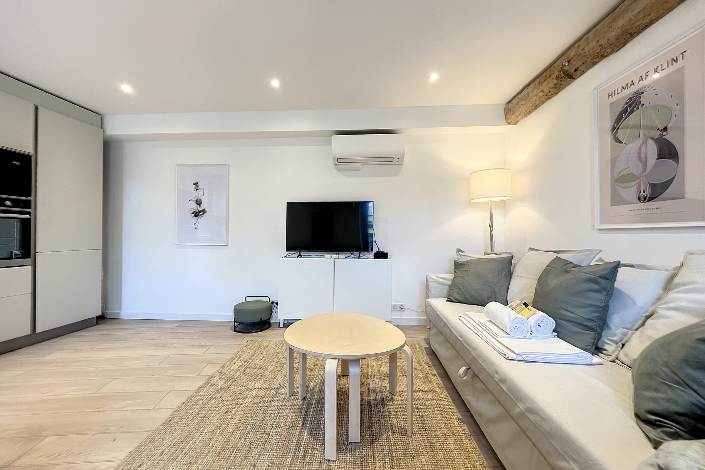 An ideal base for exploring the French Riviera, this apartment is in Antibes’ old town. Plage de la Gravette is a short walk away, as are bars and restaurants – this is a pedestrian area, so ditch the car and meander through the narrow streets like a local. Cannes is only fifteen minutes away, and you can be in Nice in twenty-five minutes. The cosy apartment has a petite balcony and rustic wooden beams. It’s in an older building, so there’s no lift and some of the ceilings are low. It’s also worth pointing out that two guests will sleep on a sofa bed in the living space. For such a great location, we think it’s still a solid choice for a family.