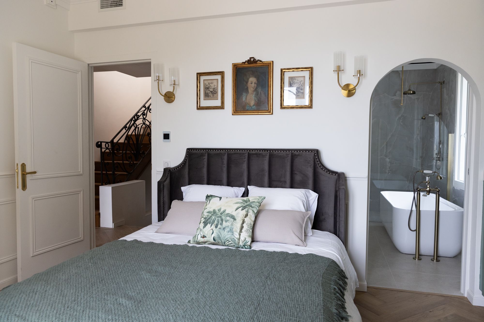 There are stunning sea views to enjoy from the southwest-facing garden and balcony of this beautiful Côte D'Azur home. A large private pool, alfresco living area, and fully equipped outdoor kitchen help you make the most of the French Riviera's warm climate. The vistas can be admired from the light-filled living room, and we love the en-suite bathrooms with their freestanding baths. The location is fantastic here as well – you’ll be a short walk from the marina and sandy beach.