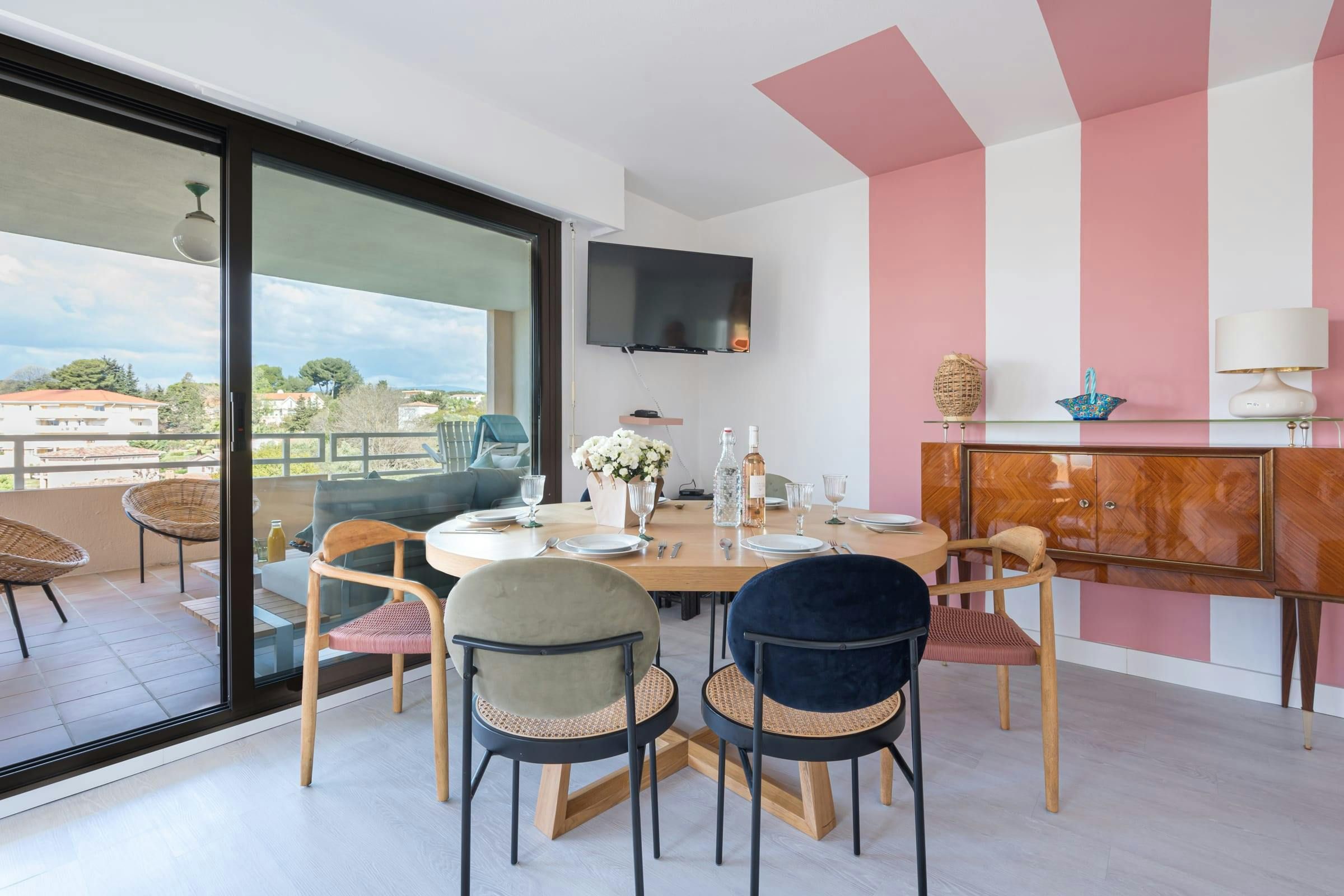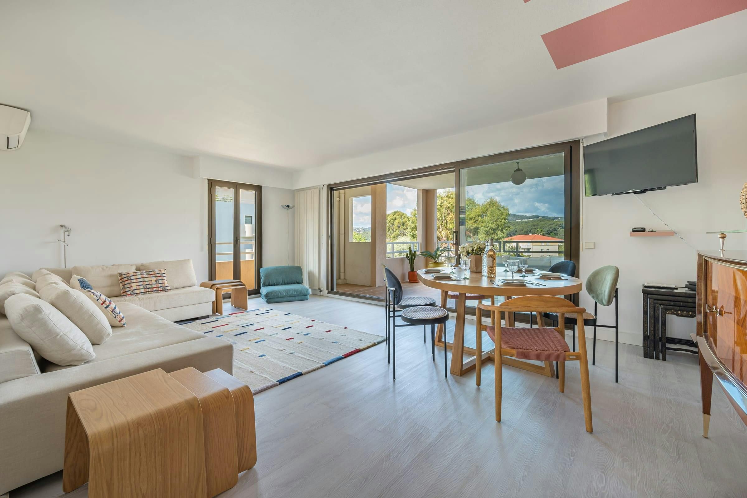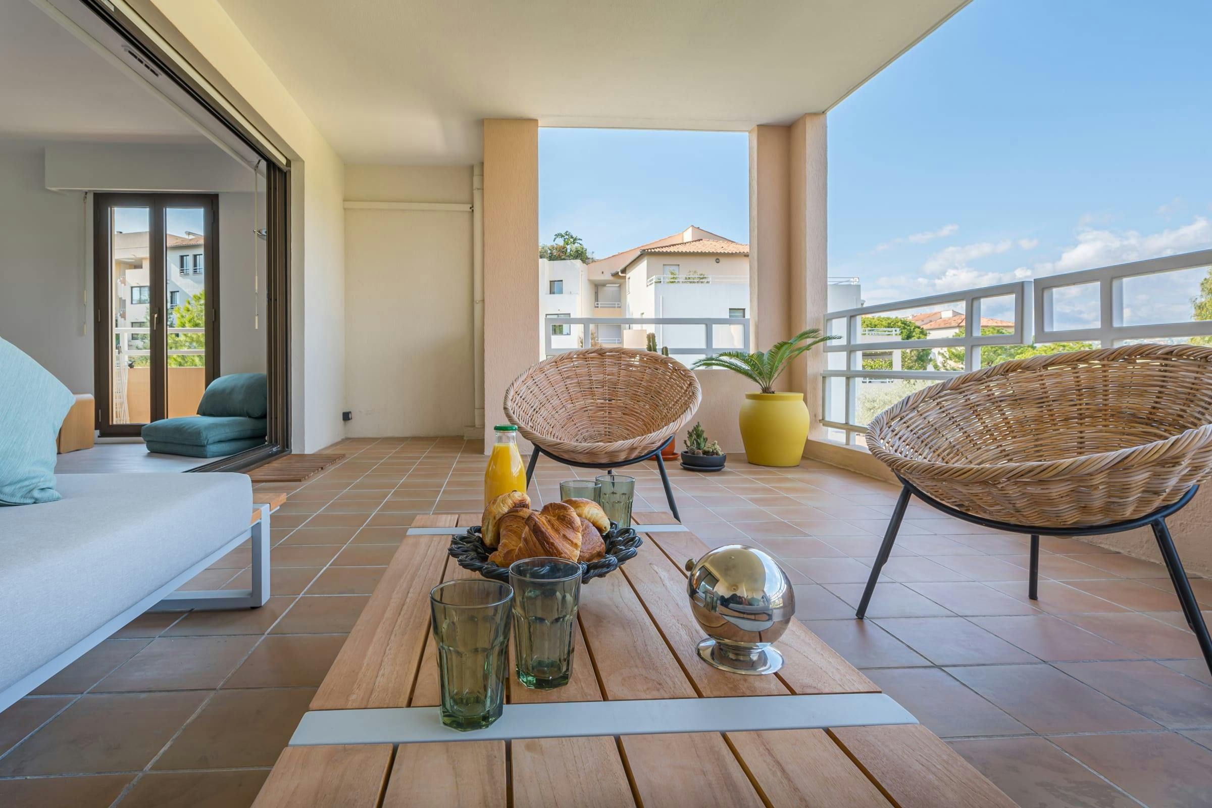 Surrounded by palm-lined gardens and the hush of a private residence, this modern Antibes hideaway invites you to slow the pace. Days begin with breakfast on the terrace, the scent of pine and the glint of pool water just beyond. Inside, contemporary finishes and cool tiled floors create a sense of effortless ease, with two comfortable bedrooms and a sociable open-plan layout. After morning swims or seaside strolls, return for a long lunch alfresco or an evening match on the tennis court. Whether you're here for lazy poolside days or exploring the coastline, this is a serene and well-connected spot for families or friends.