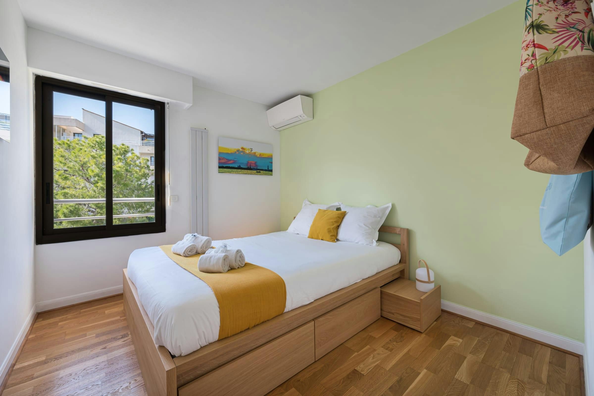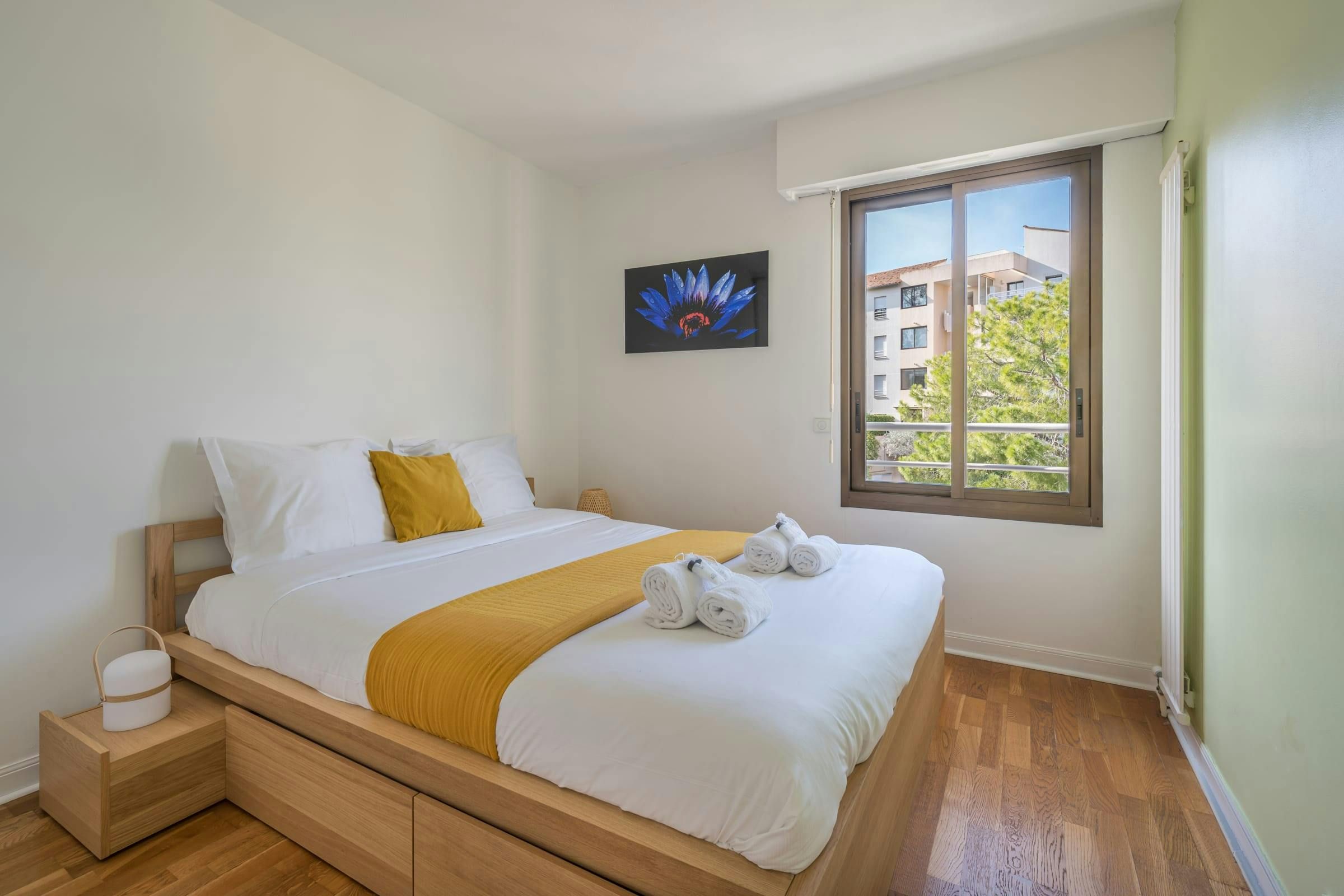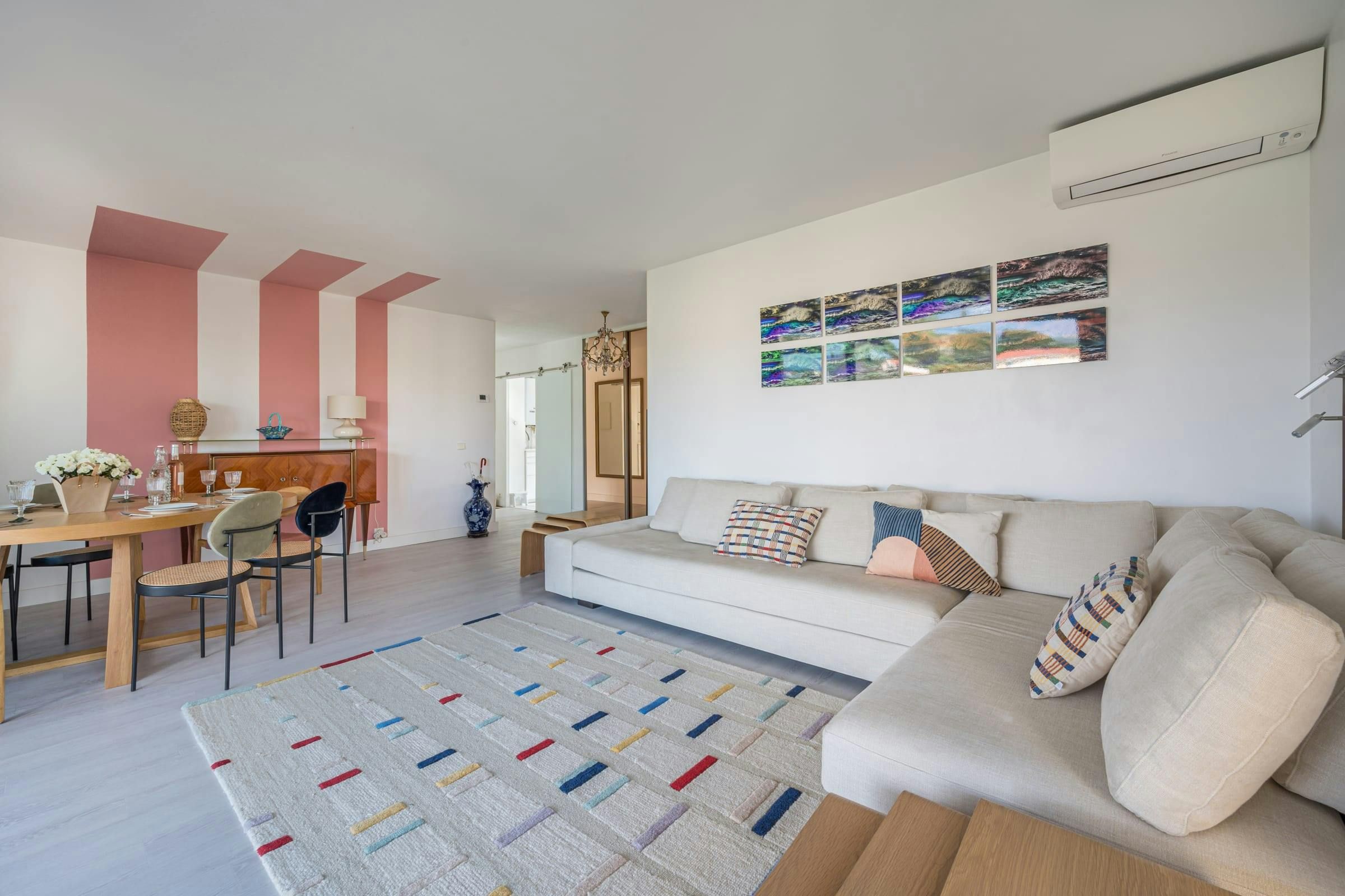 Surrounded by palm-lined gardens and the hush of a private residence, this modern Antibes hideaway invites you to slow the pace. Days begin with breakfast on the terrace, the scent of pine and the glint of pool water just beyond. Inside, contemporary finishes and cool tiled floors create a sense of effortless ease, with two comfortable bedrooms and a sociable open-plan layout. After morning swims or seaside strolls, return for a long lunch alfresco or an evening match on the tennis court. Whether you're here for lazy poolside days or exploring the coastline, this is a serene and well-connected spot for families or friends.