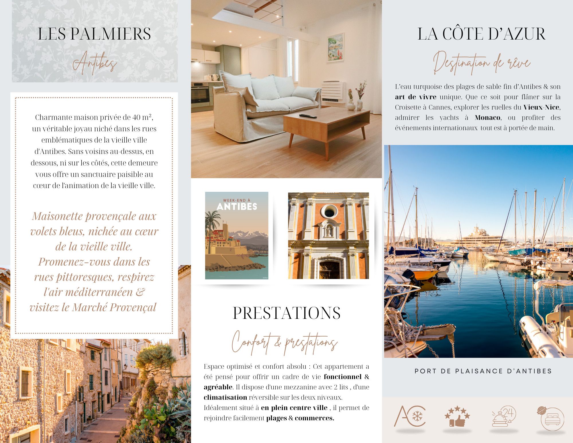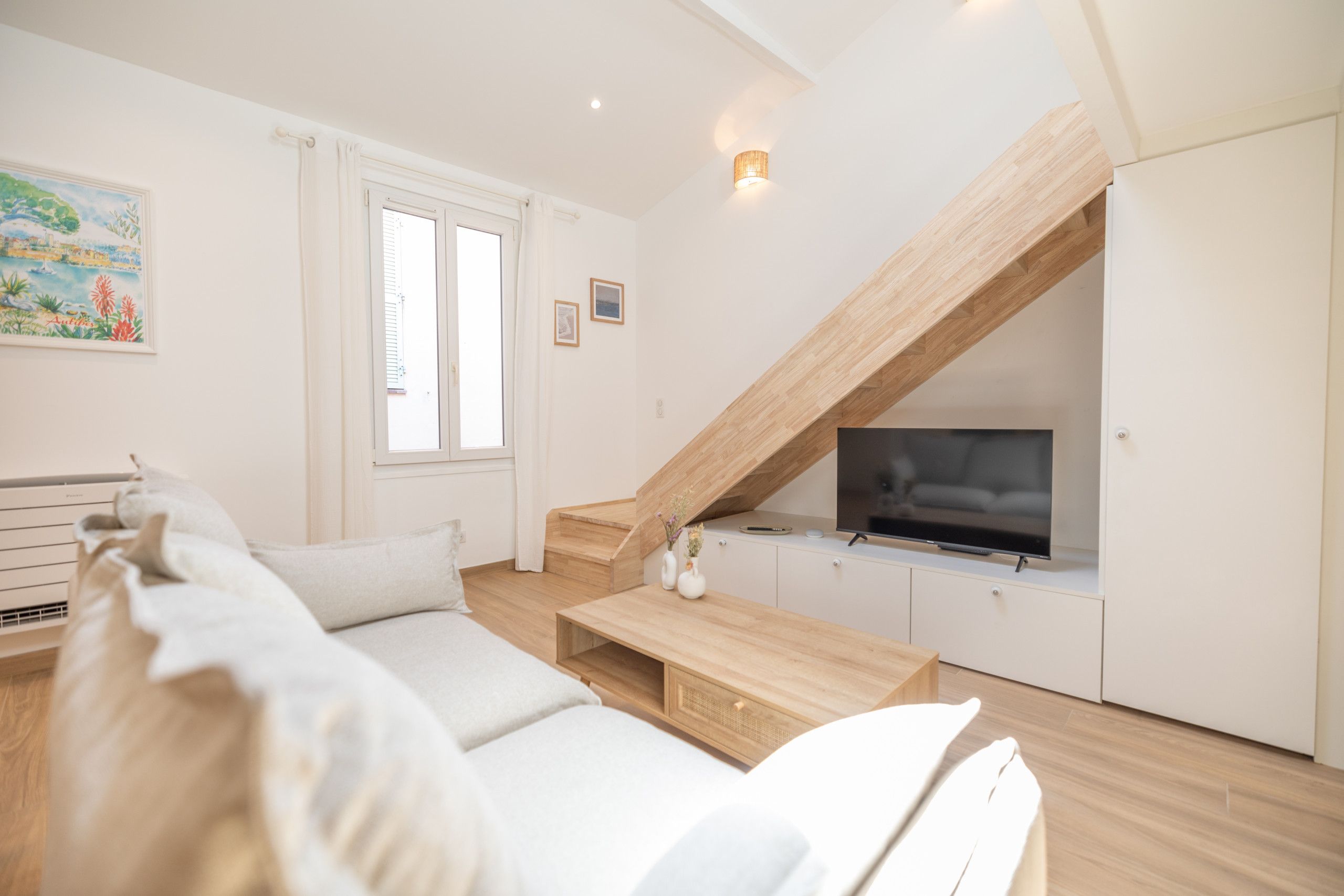 Set in the heart of Antibes’ old town, this characterful home gives you a peaceful retreat while keeping the buzz of the Riviera on your doorstep. With no neighbours above or beside you, it feels private and calm, yet you’re only a short stroll from the port, local markets and winding streets lined with cafes and restaurants. Inside, light floods through large windows and skylights, with modern touches adding comfort to its traditional style. From here, you can explore the Picasso Museum, Cap d’Antibes, and the Riviera’s beaches and coastal paths.