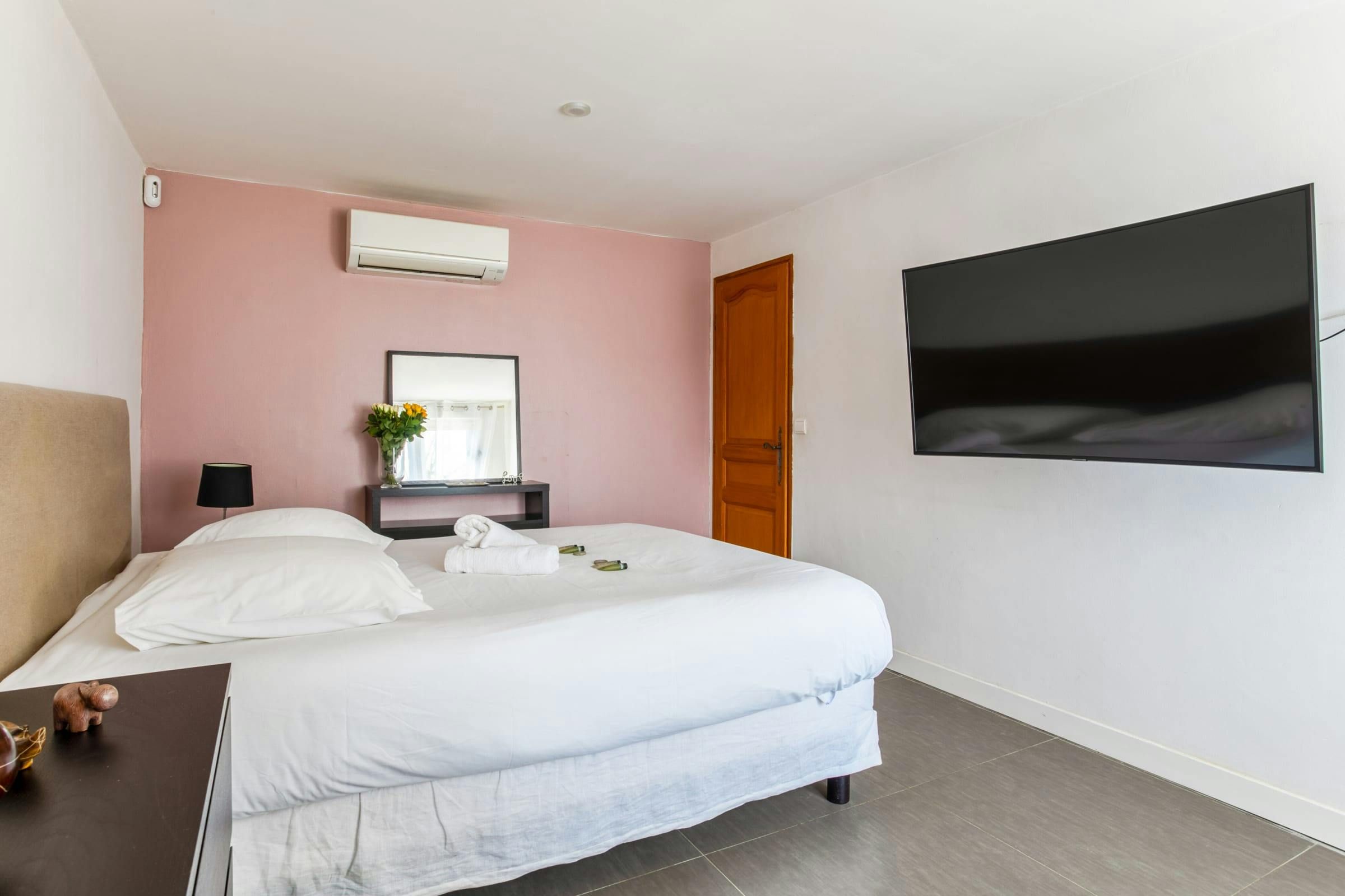 Perfect for families and friends looking for a peaceful break in Provence, this villa is in a quiet residential neighbourhood. You’ll be just a short walk from the centre of Aubagne and only a twenty-minute drive from Cassis and Marseille. Aix-en-Provence is thirty minutes away by car. The villa is modern and stylish, equipped with everything you might need. Kids will love playing table tennis and pétanque, and watching movies on the projector screen, while grown-ups will surely enjoy sipping cocktails by the pool while admiring the view.