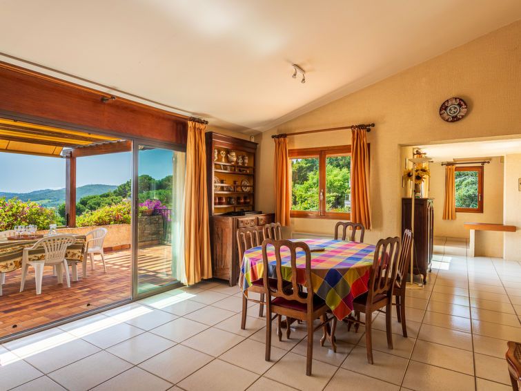 "Maison Heliosa", 5-room house 130 m2 on 3 levels, south-east facing position. Comfortable furnishings: large living/dining room with open-hearth fireplace (only for decoration), dining table and TV (flat screen), DVD. Exit to the terrace. Small kitchen (4 hot plates, oven, dishwasher, toaster, kettle, microwave, freezer, electric coffee machine, Capsules for coffee machine (Senseo) extra).