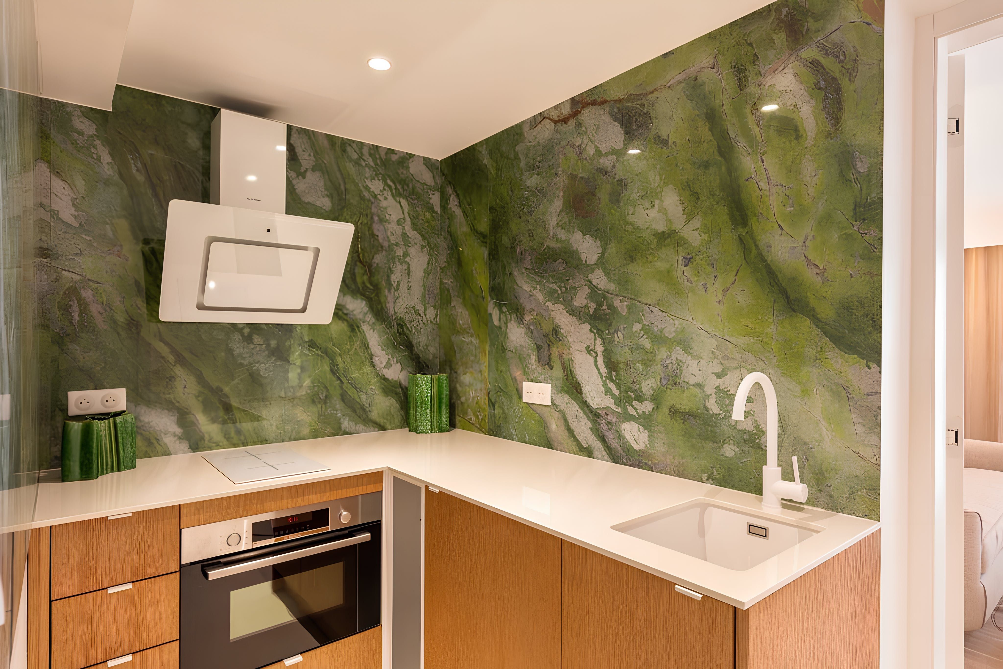This smart apartment suits a small family or a couple of friends looking for a comfortable landing pad on the French Riviera. Croisette Beach is within walking distance, and the centre of Cannes is a short bus ride away. The home boasts a private plunge pool plus a terrace for dining or reclining in the sunshine. Inside, the small kitchen has everything you need for quick meals. As there’s no living area, we recommend this place for those who are always on the go.