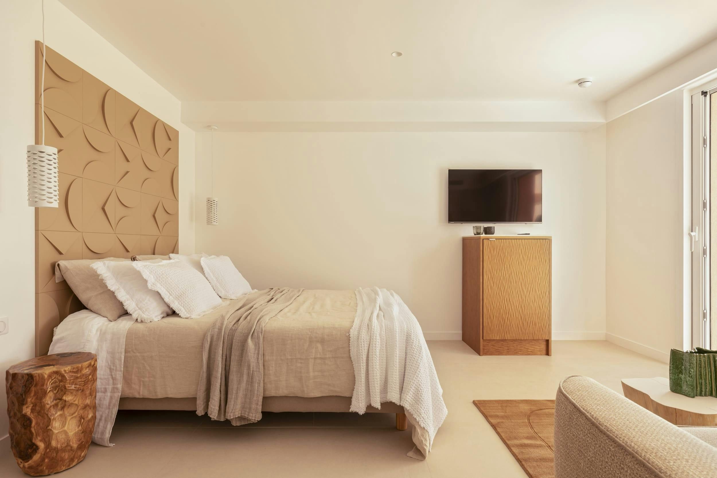 Home truths: *There's no kitchen here, so this home might not be the best option for everyone. That said, you'll find some of the area's best restaurants close by. *The communal pool is heated from April to October. *This home is near a main road, so expect to hear some traffic noise.