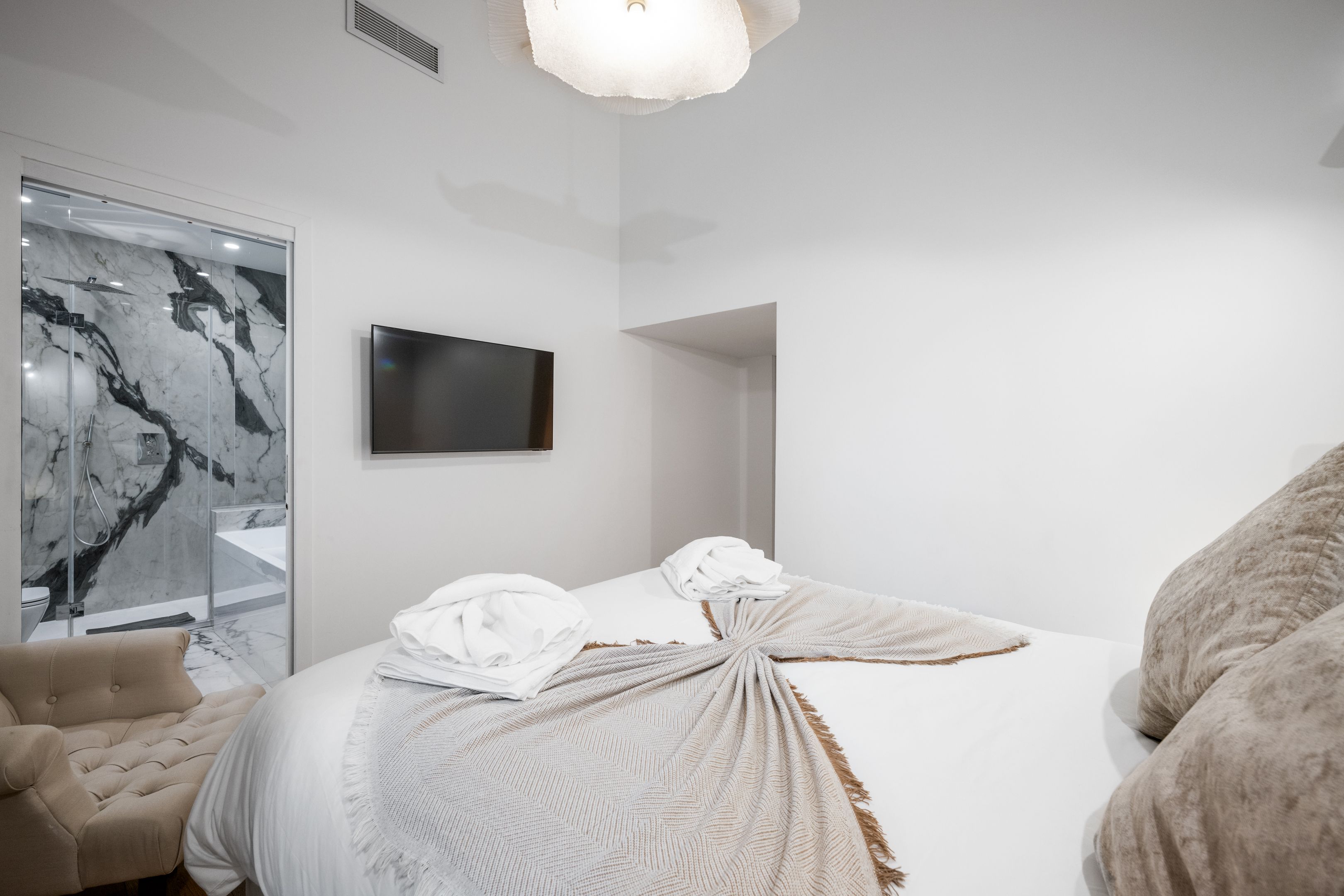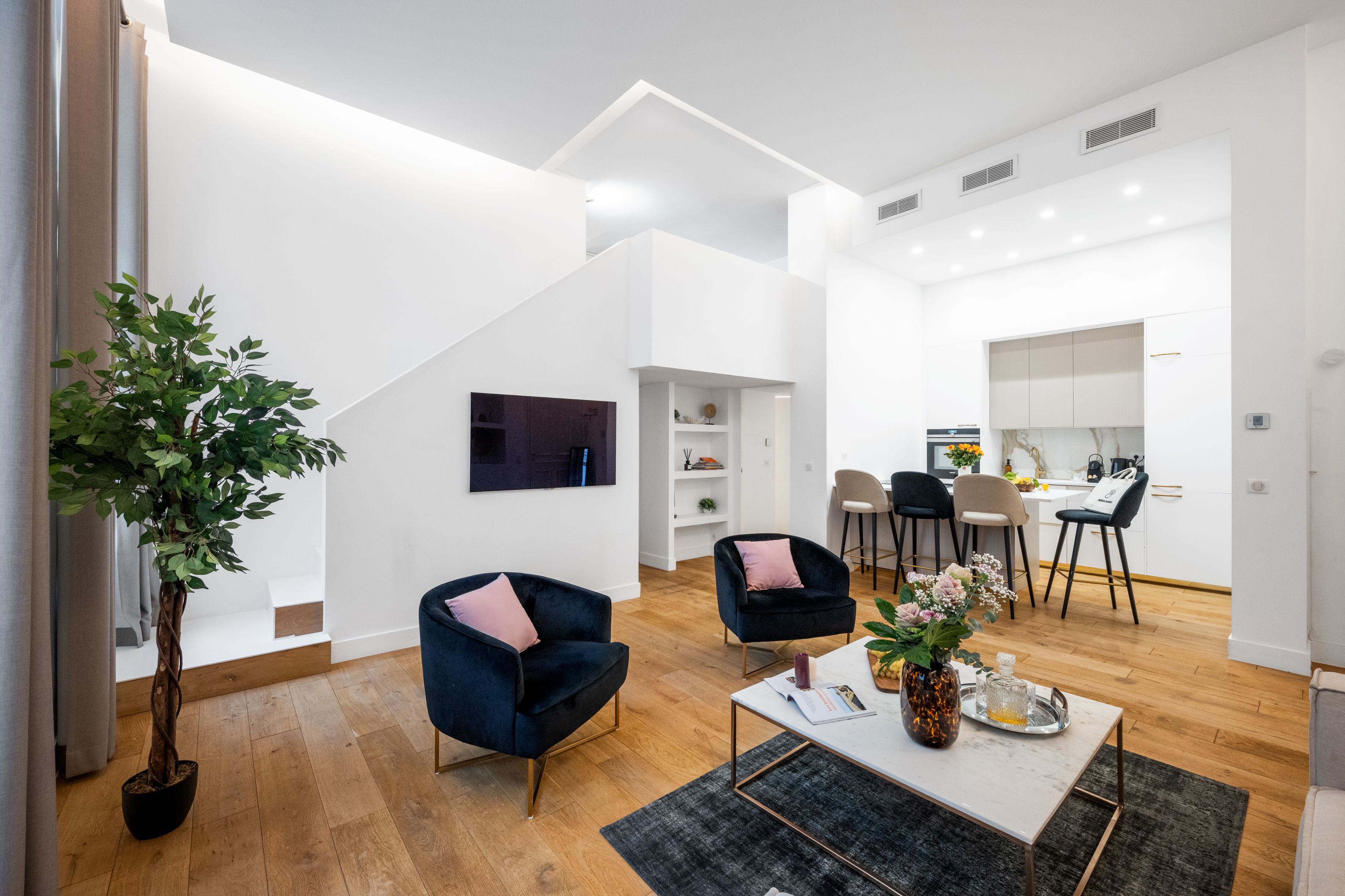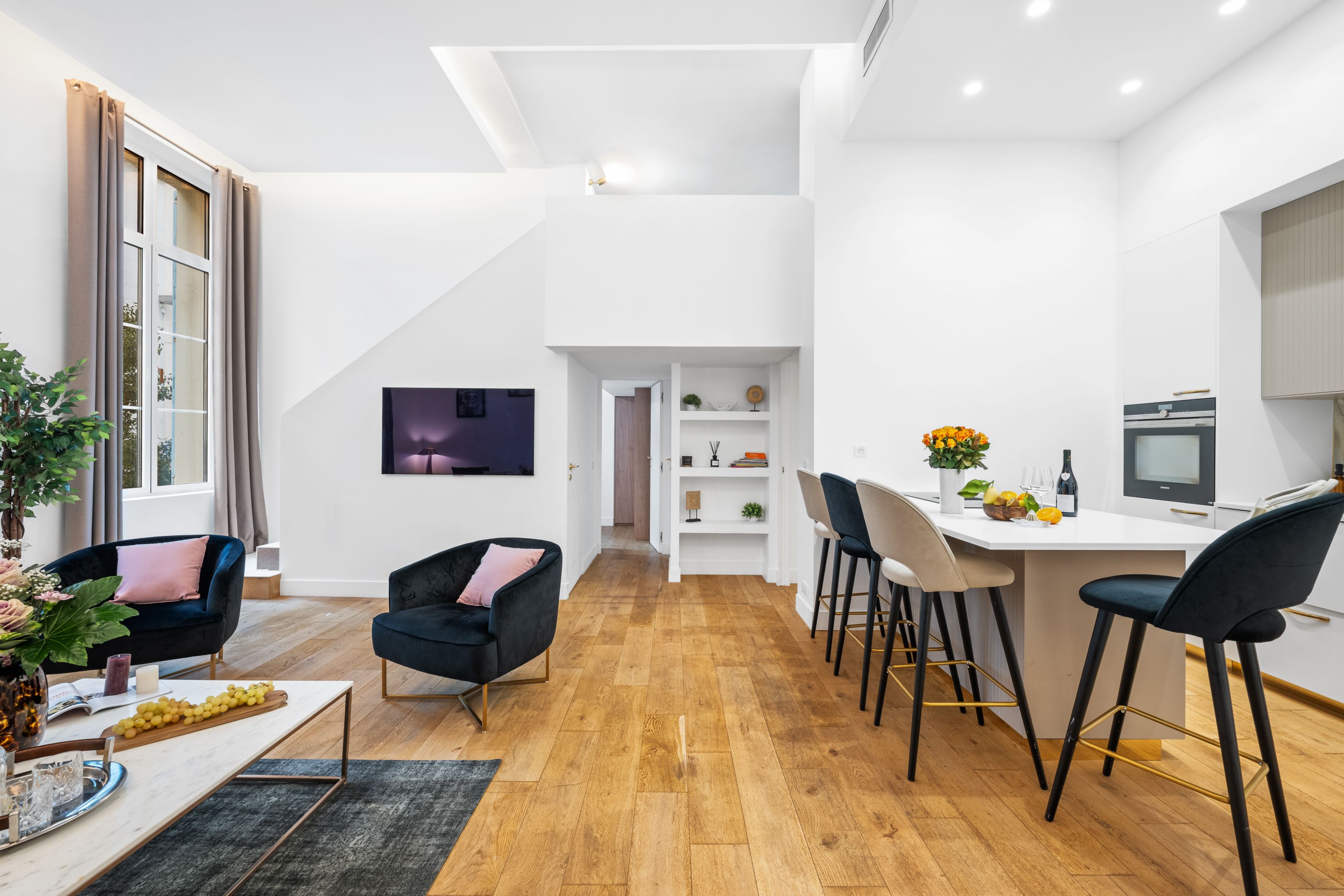 If location is your top priority, look no further than this apartment set in the heart of Cannes, just a ten-minute walk from Croisette Beach, and footsteps from bars, restaurants and cafes. Whether you’re staying as a family or a group of friends, you have everything you need to settle in, from a fully equipped kitchen to ample storage space. It’s worth noting that at full capacity, two guests will be on a sofa bed in the mezzanine-level bedroom, located above the living area – we think it’s best suited for teenagers or those who don’t mind a slightly less private sleeping arrangement.