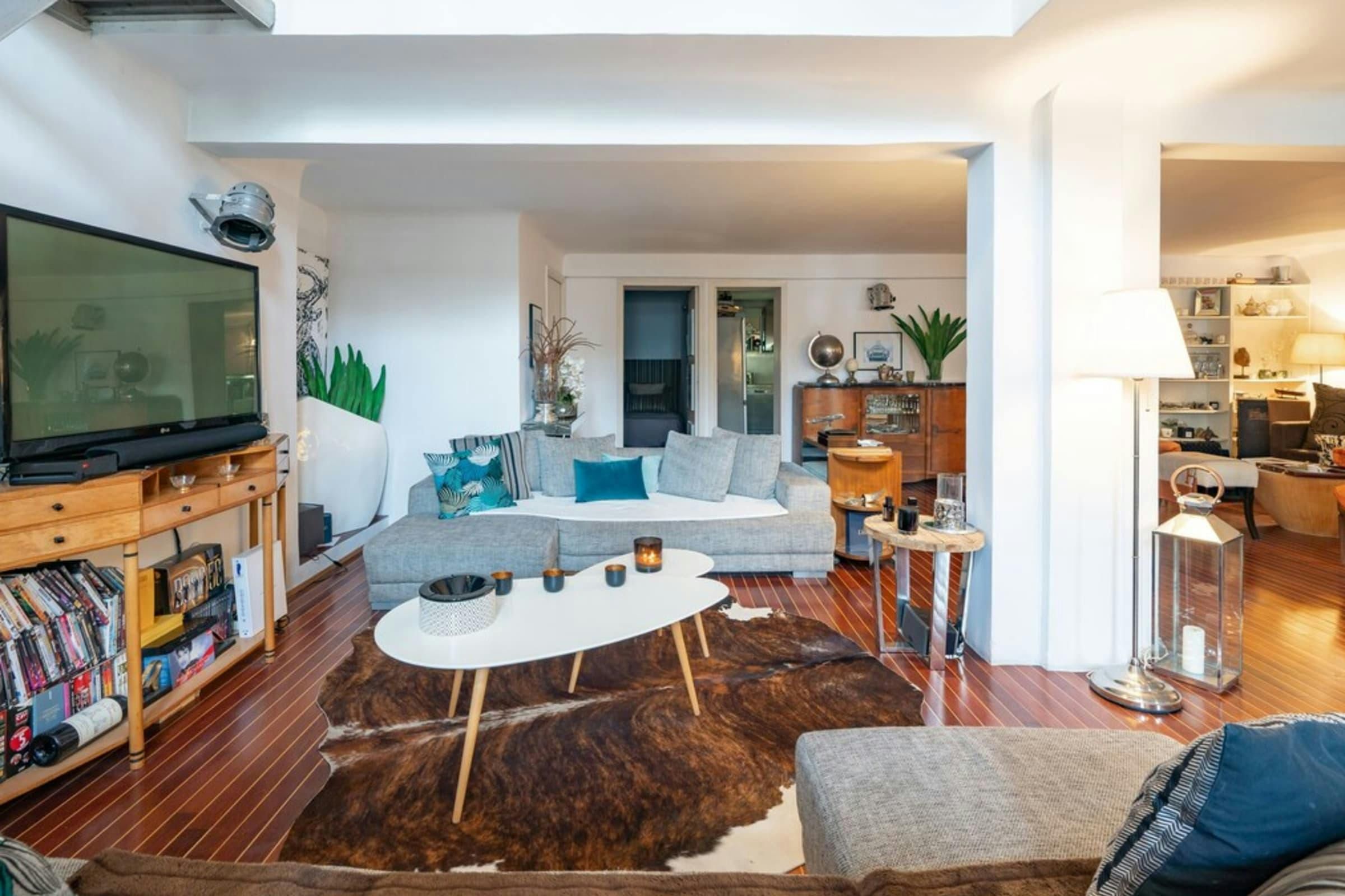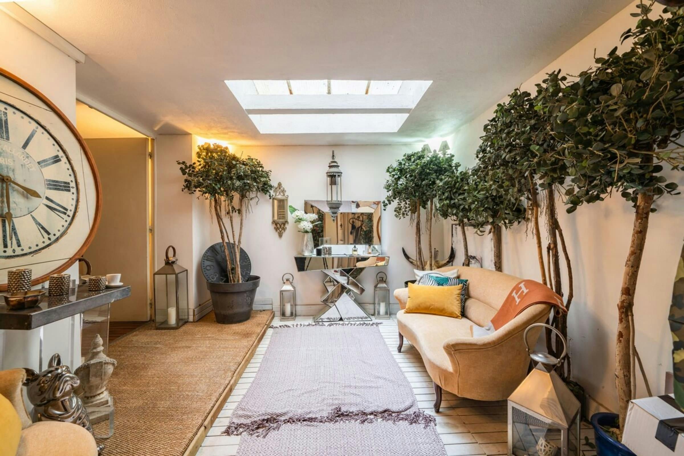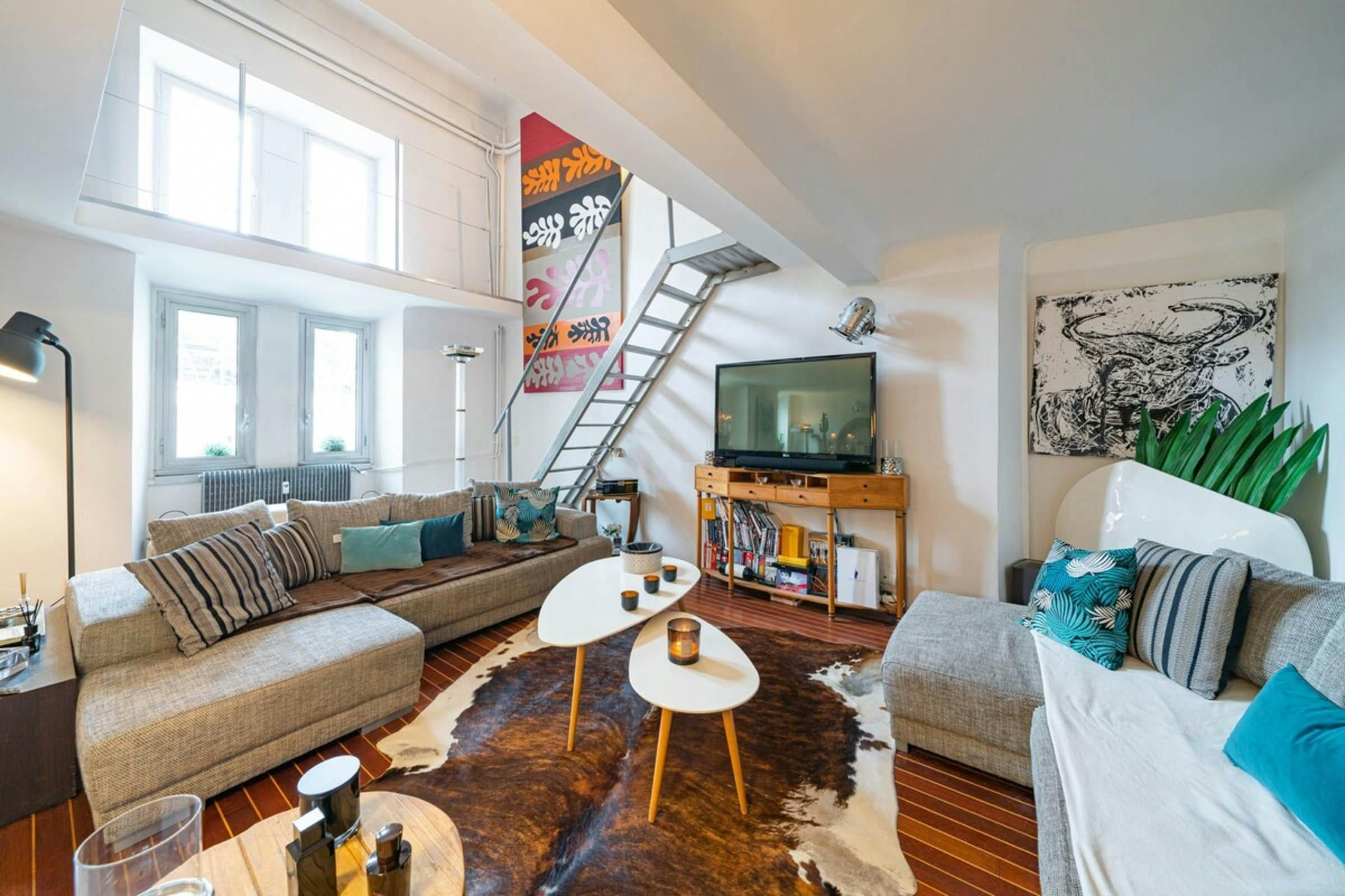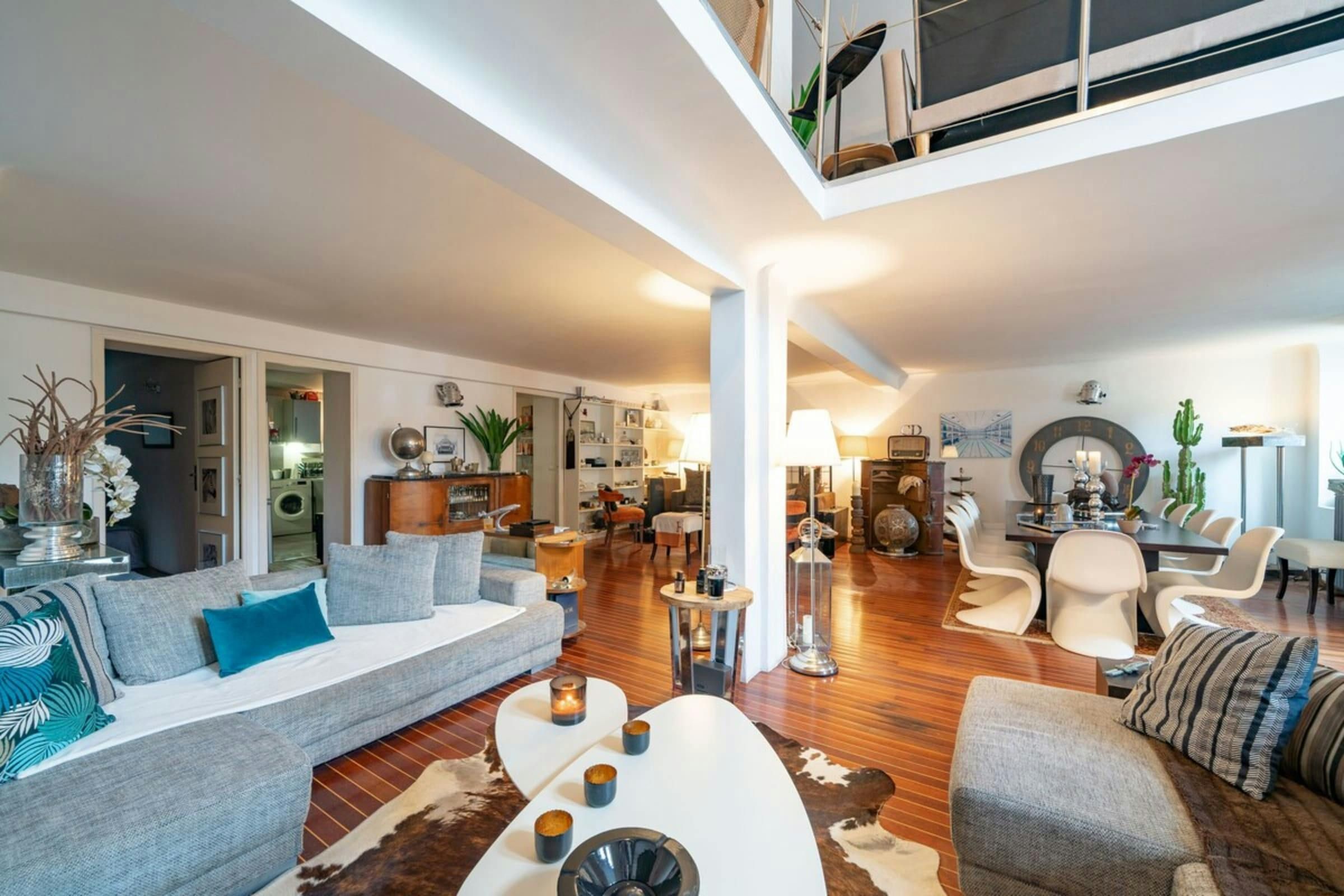 This is a unique home with lots of character. It’s spread over two floors, with one bedroom on a huge mezzanine level with a sitting room – this set-up isn’t entirely private as it’s partially open to the ground floor. There’s plenty of room for you to enjoy your own space, though, with several comfy seating areas and a long dining table perfect for entertaining. You’ll be just a twelve-minute walk from the Croisette and the beaches, and Palais des Festivals is only fifteen minutes away.