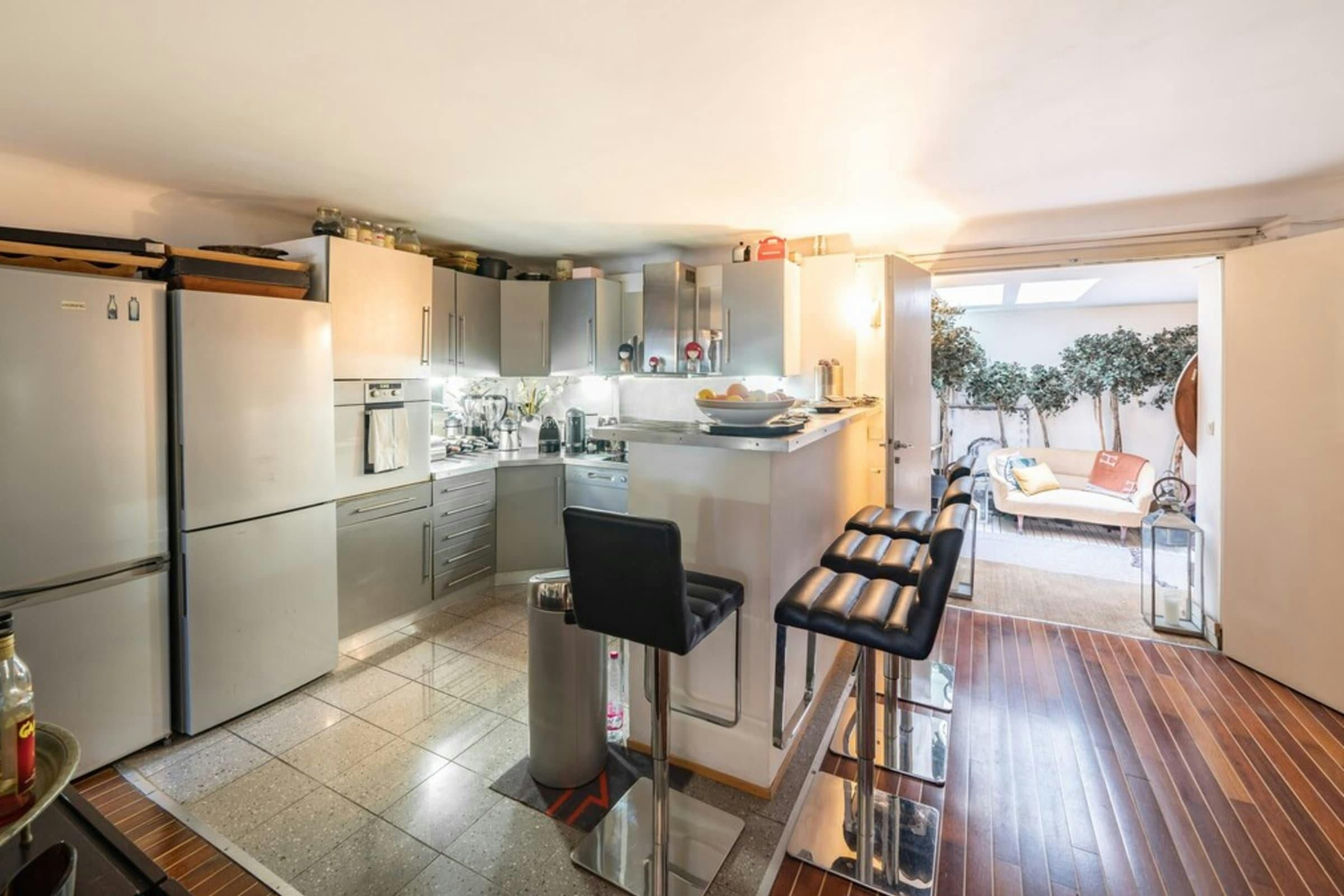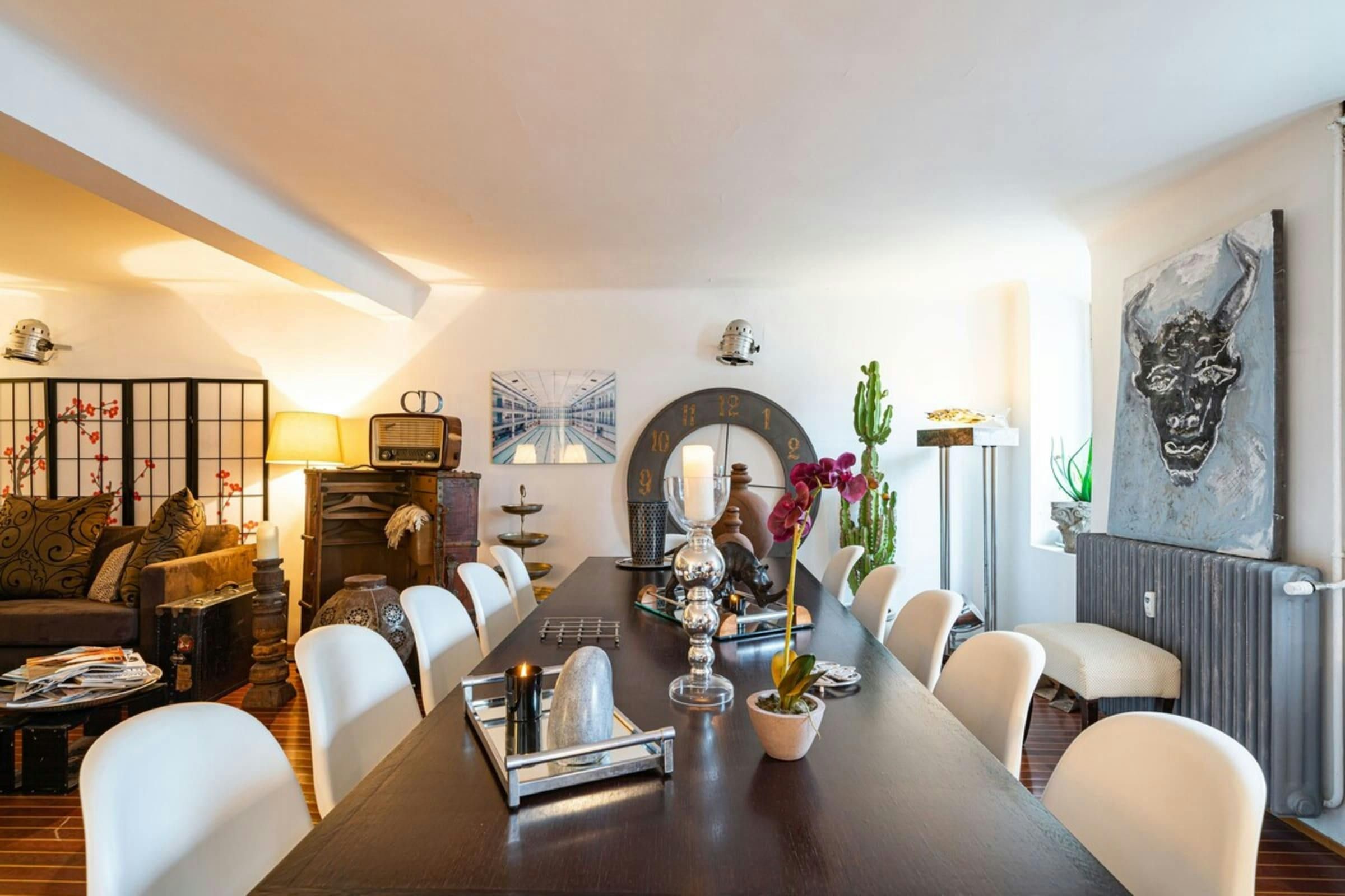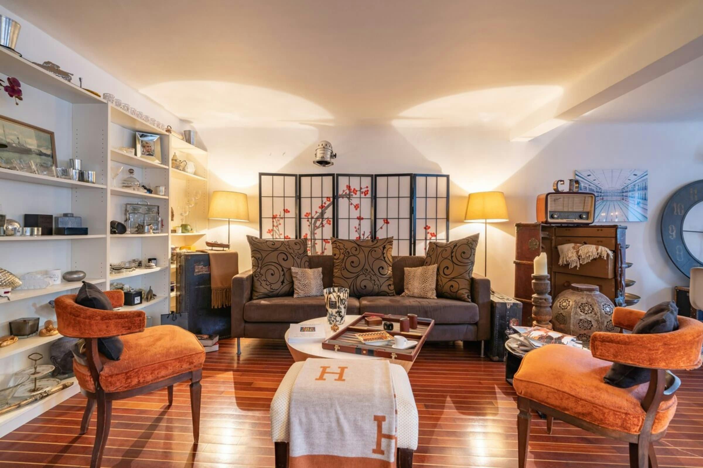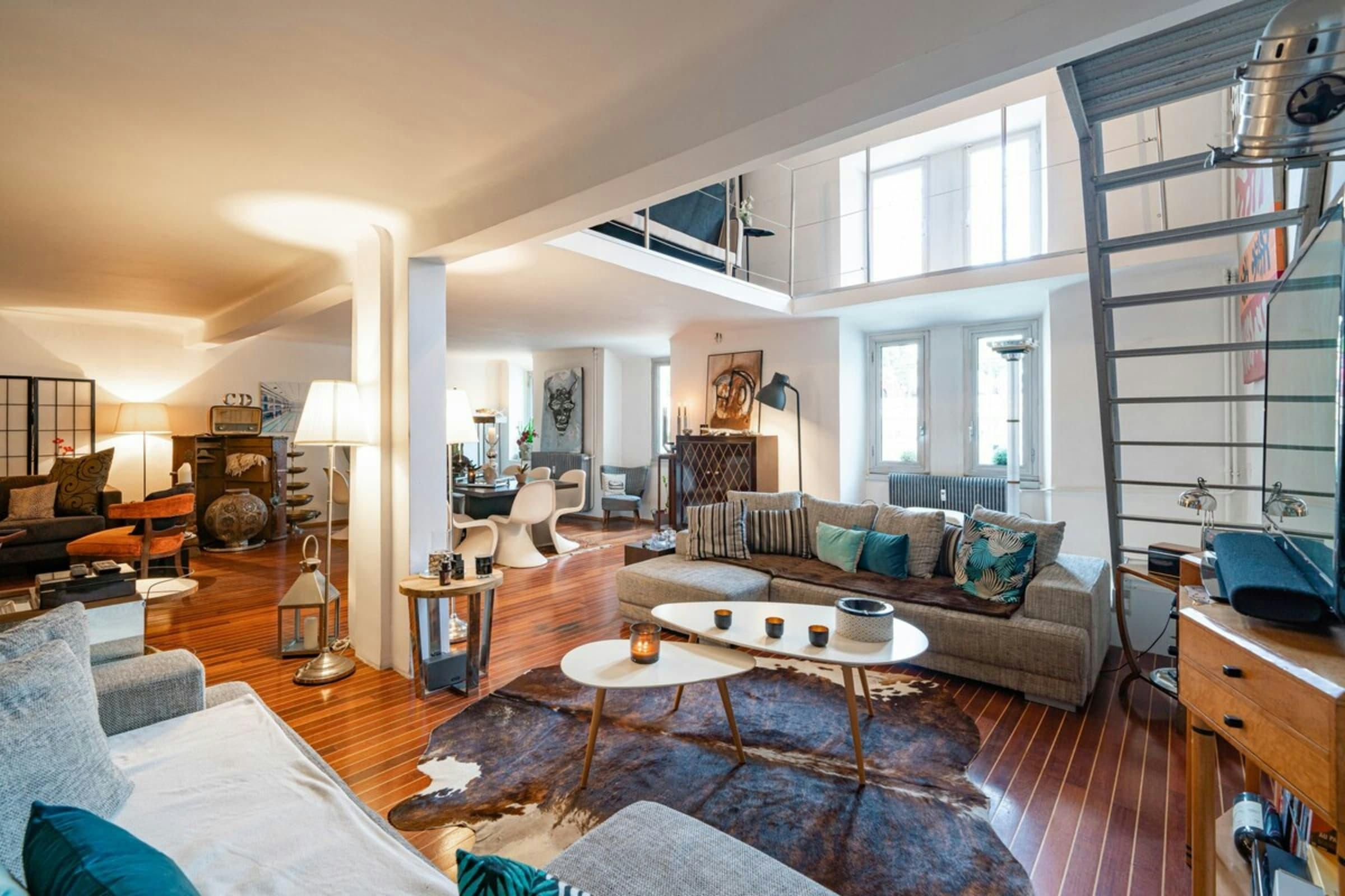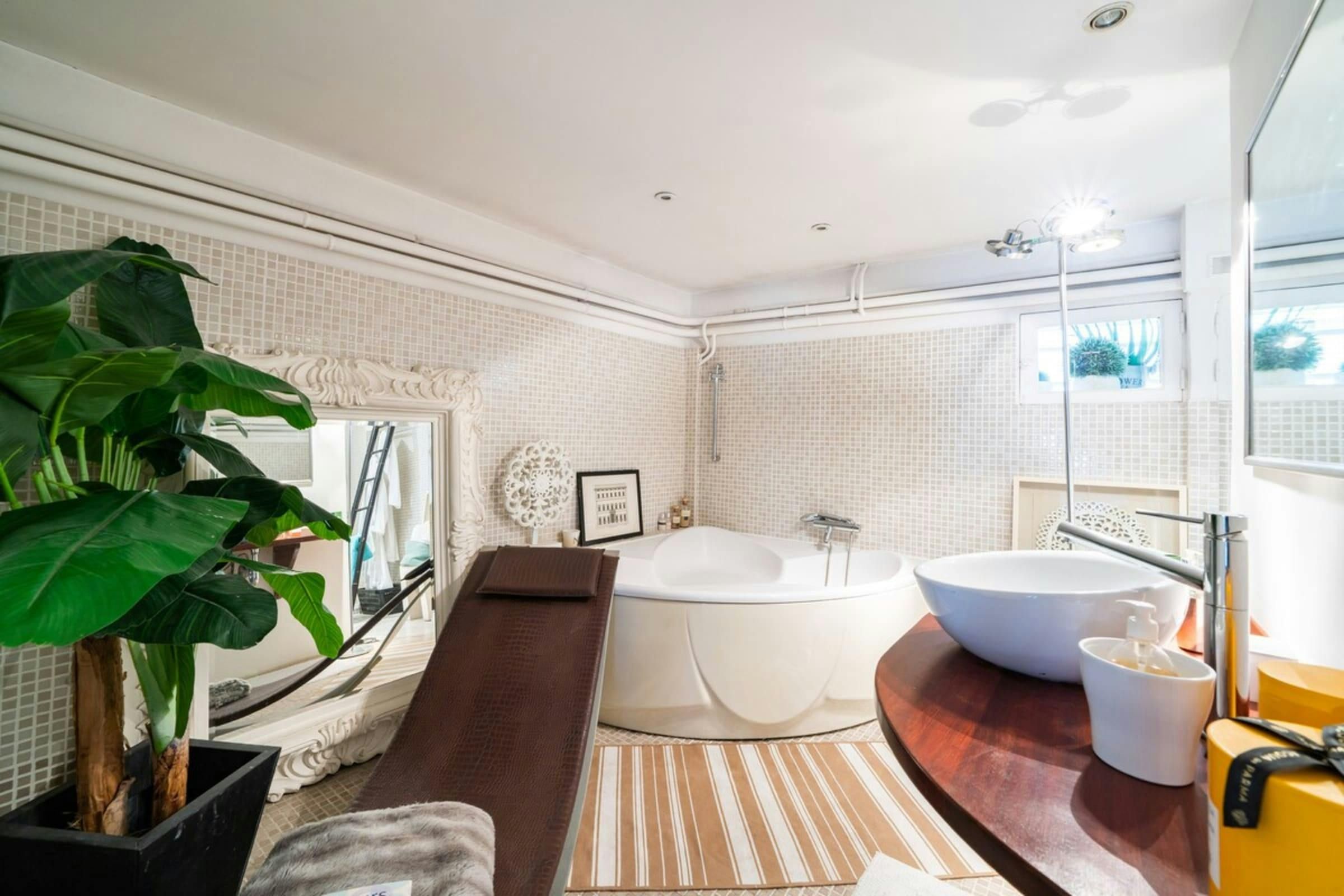 This is a unique home with lots of character. It’s spread over two floors, with one bedroom on a huge mezzanine level with a sitting room – this set-up isn’t entirely private as it’s partially open to the ground floor. There’s plenty of room for you to enjoy your own space, though, with several comfy seating areas and a long dining table perfect for entertaining. You’ll be just a twelve-minute walk from the Croisette and the beaches, and Palais des Festivals is only fifteen minutes away.
