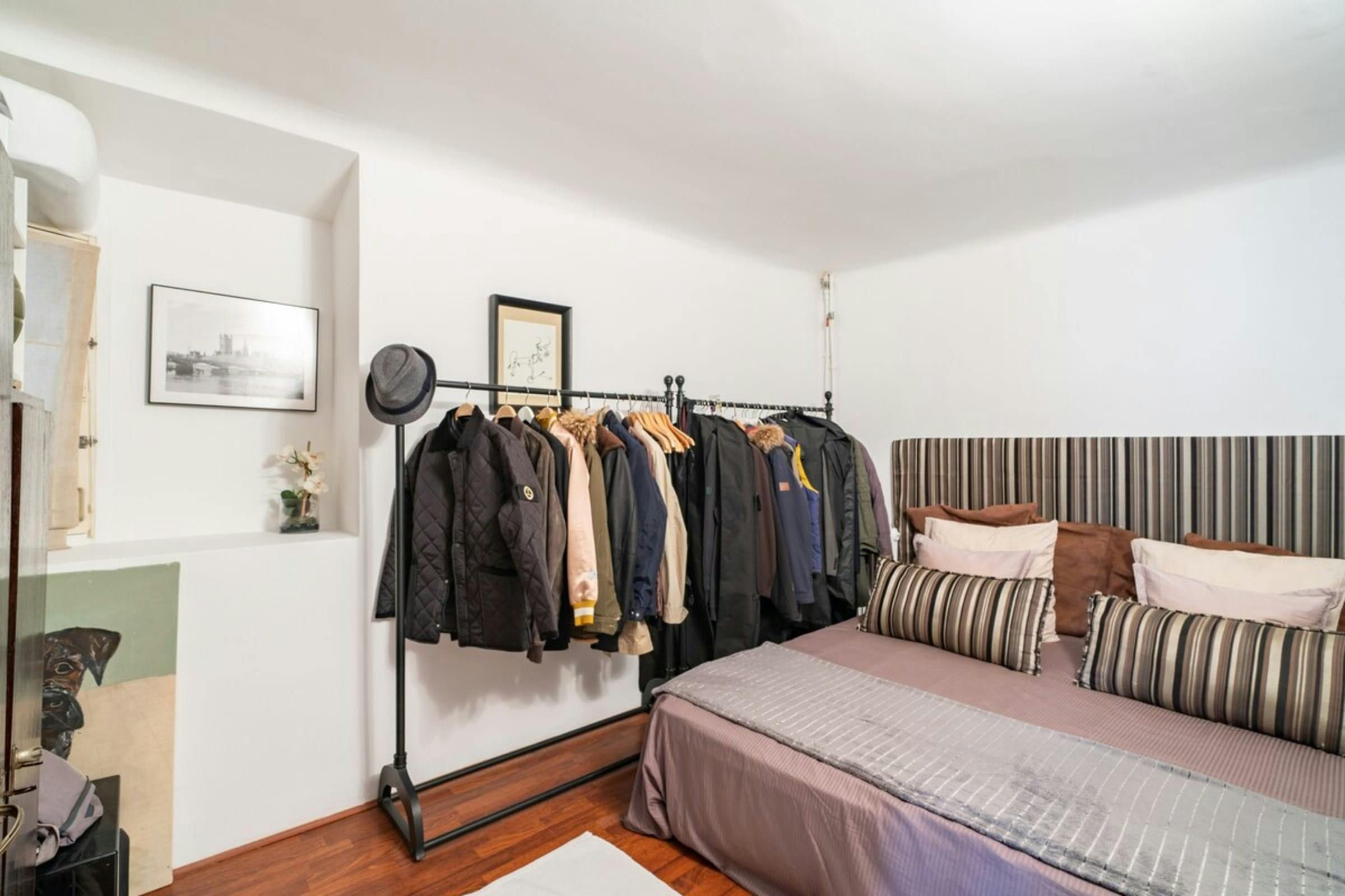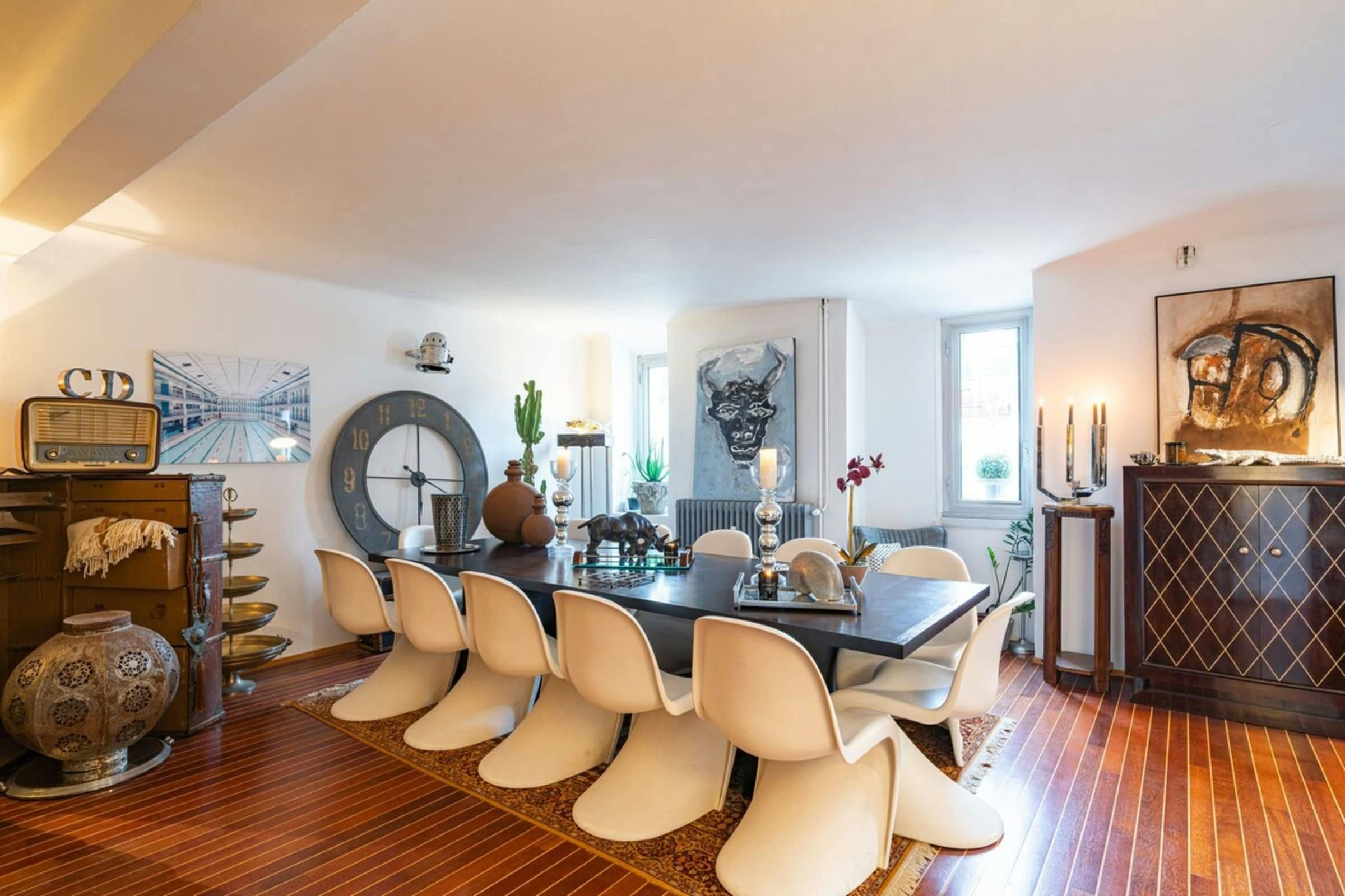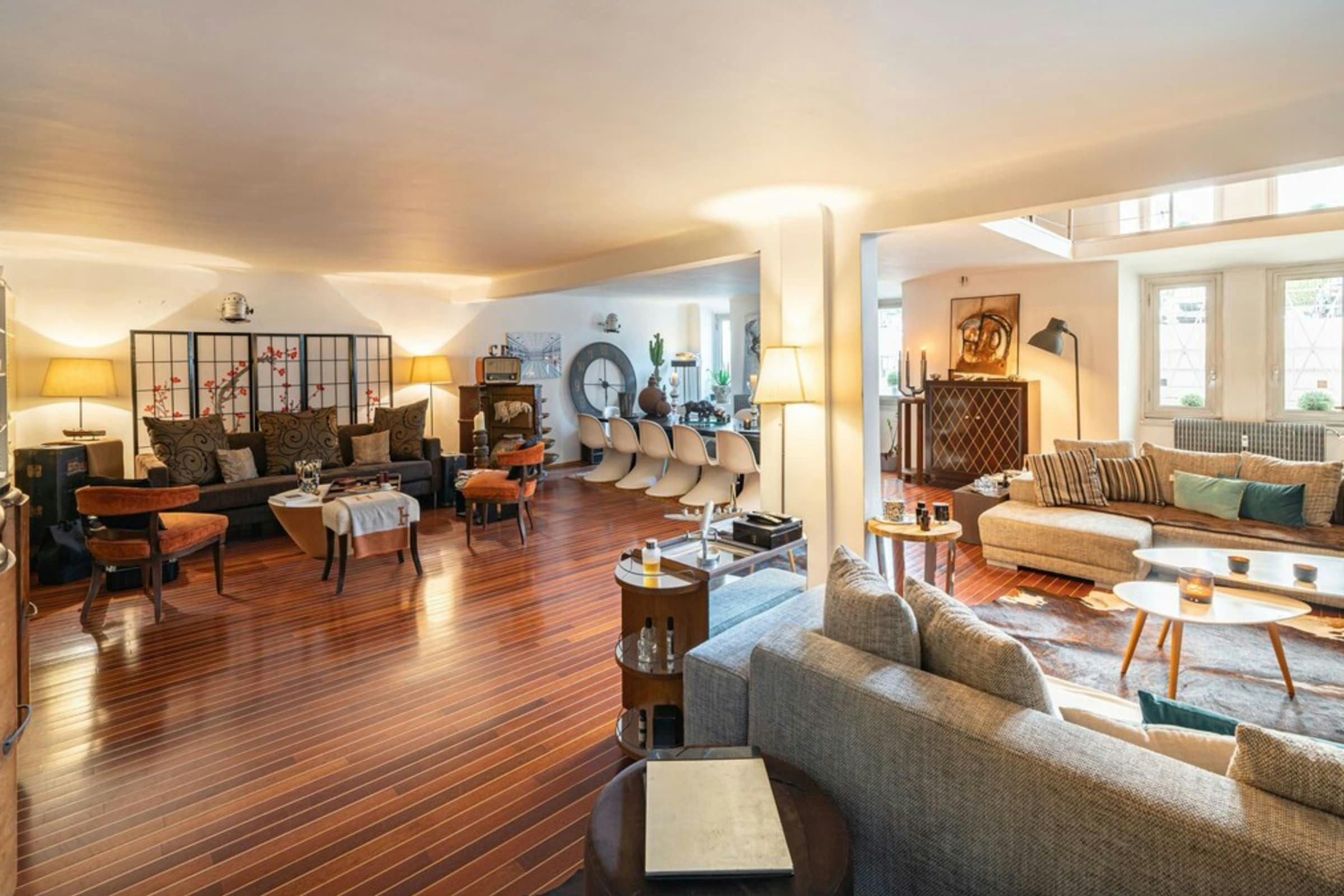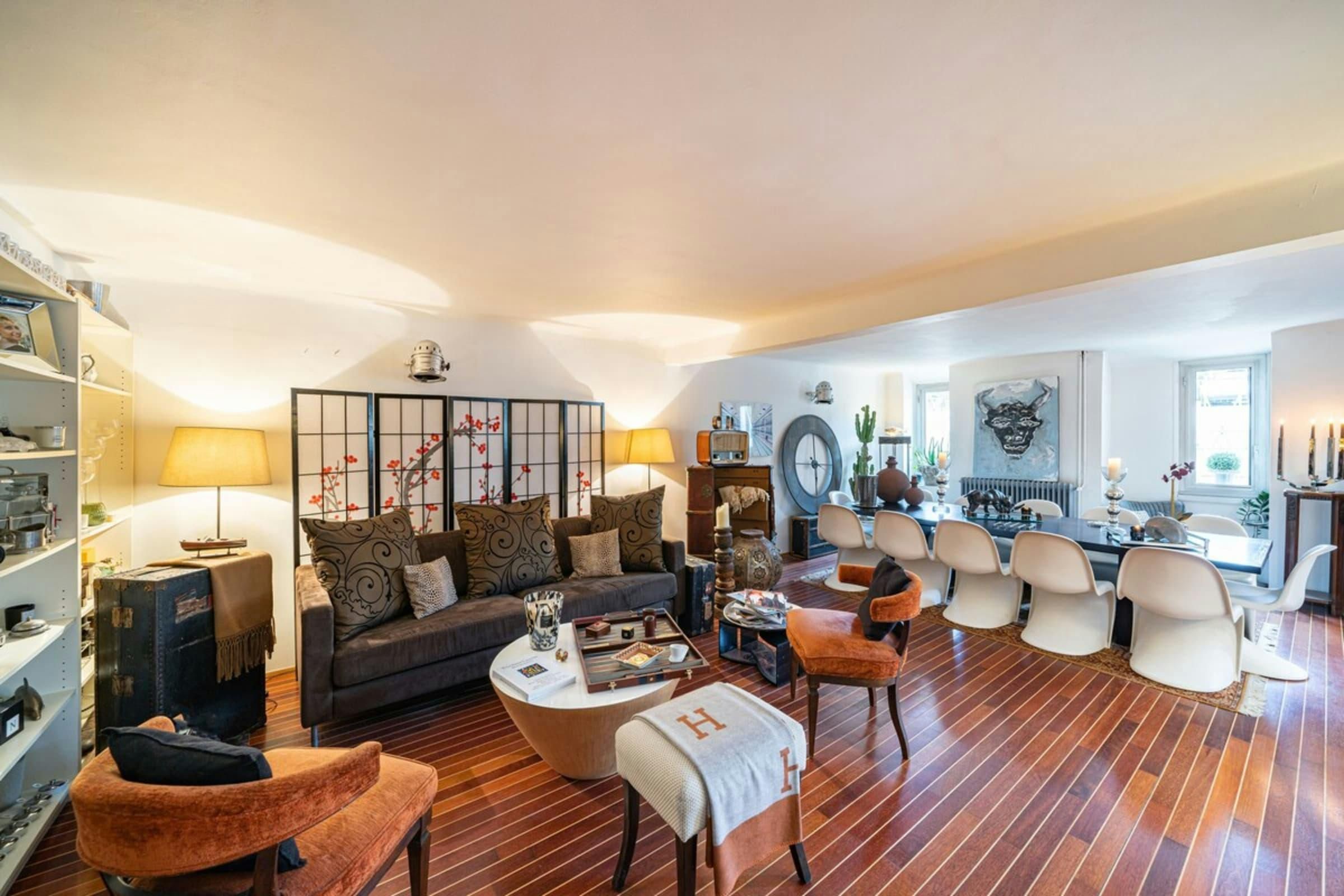 This is a unique home with lots of character. It’s spread over two floors, with one bedroom on a huge mezzanine level with a sitting room – this set-up isn’t entirely private as it’s partially open to the ground floor. There’s plenty of room for you to enjoy your own space, though, with several comfy seating areas and a long dining table perfect for entertaining. You’ll be just a twelve-minute walk from the Croisette and the beaches, and Palais des Festivals is only fifteen minutes away.