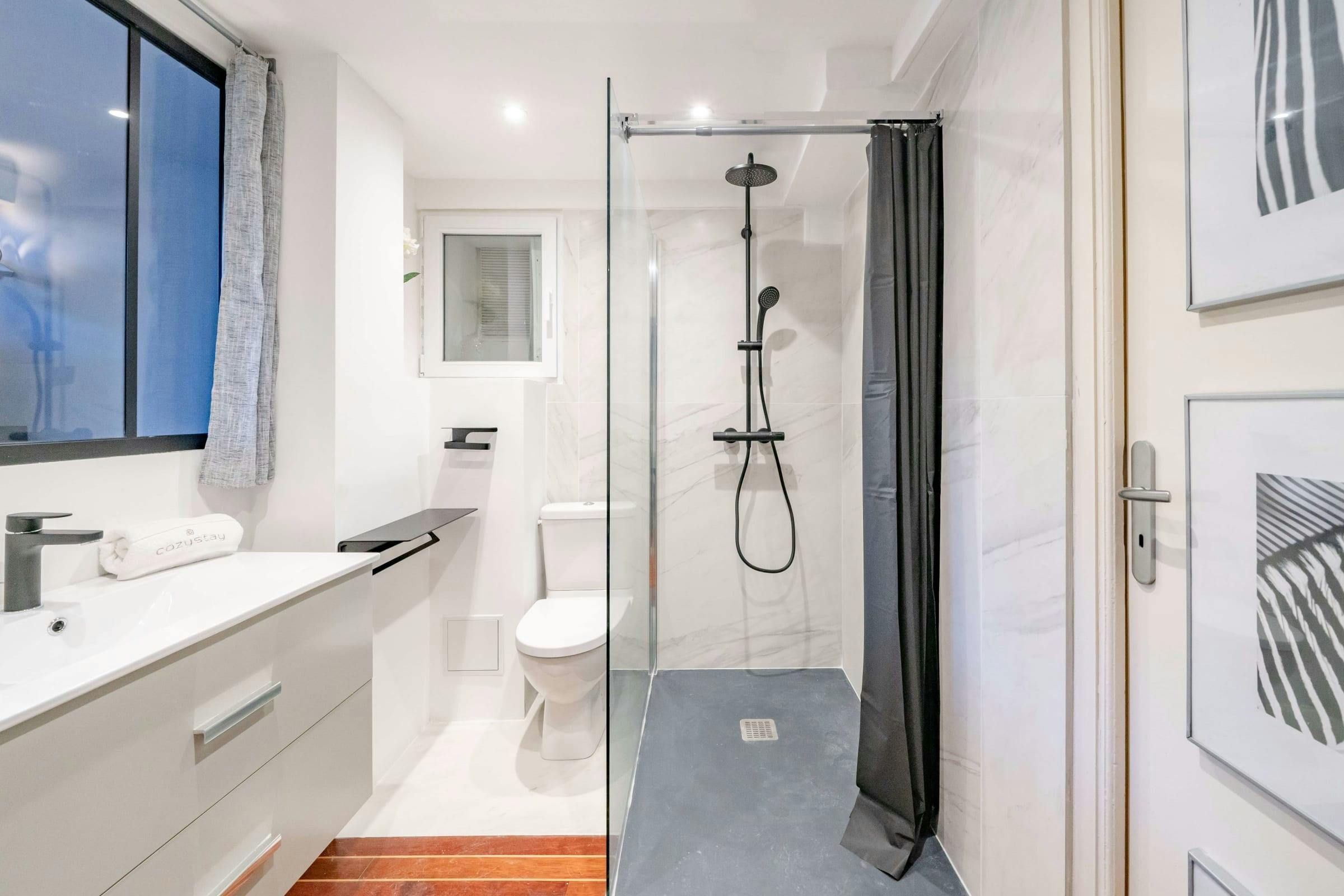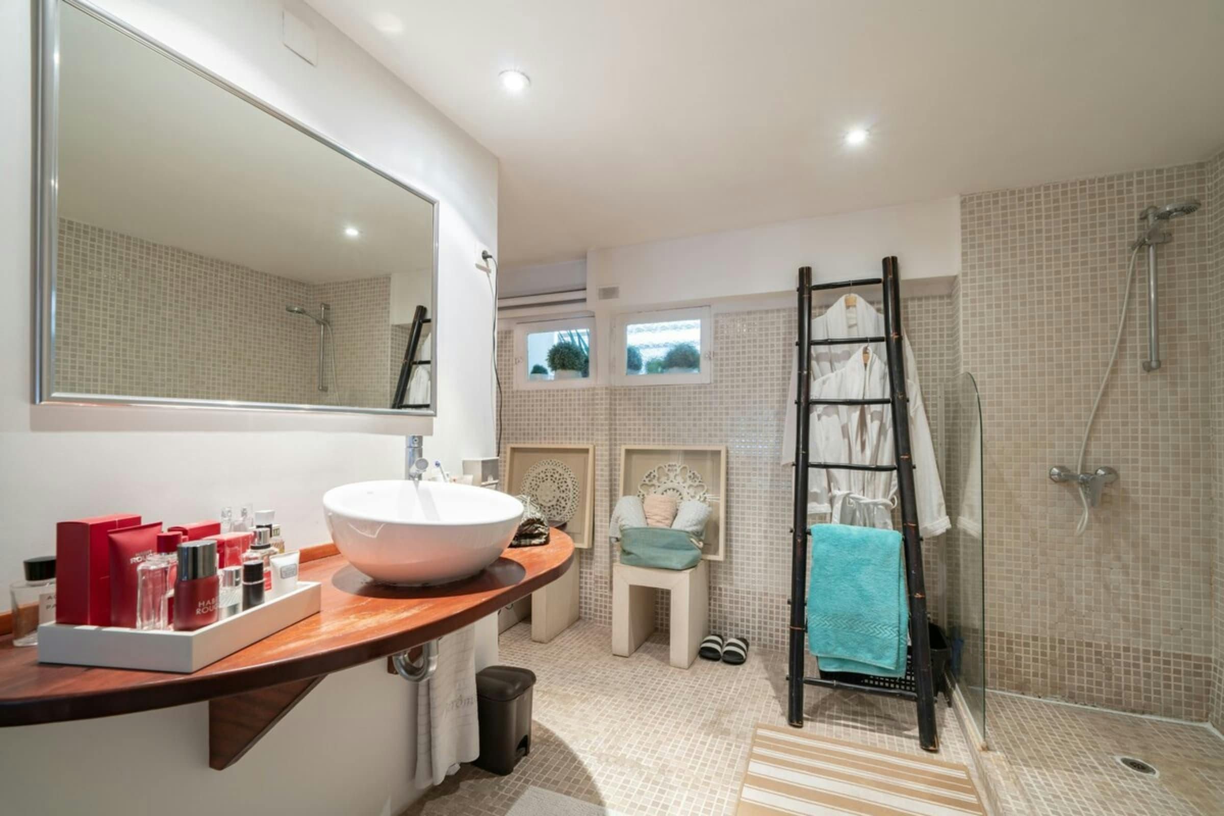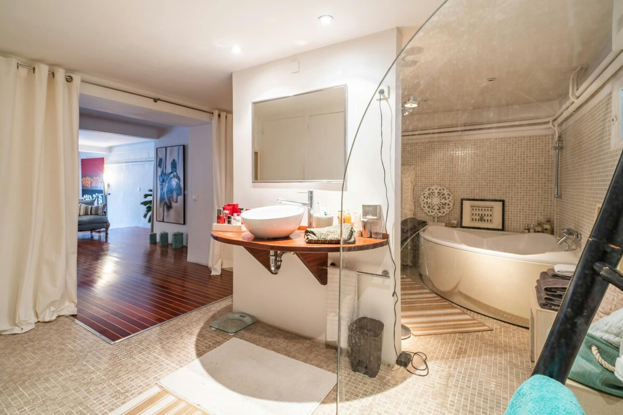 *The bathroom on the mezzanine level is only closed off with a curtain, rather than a door.