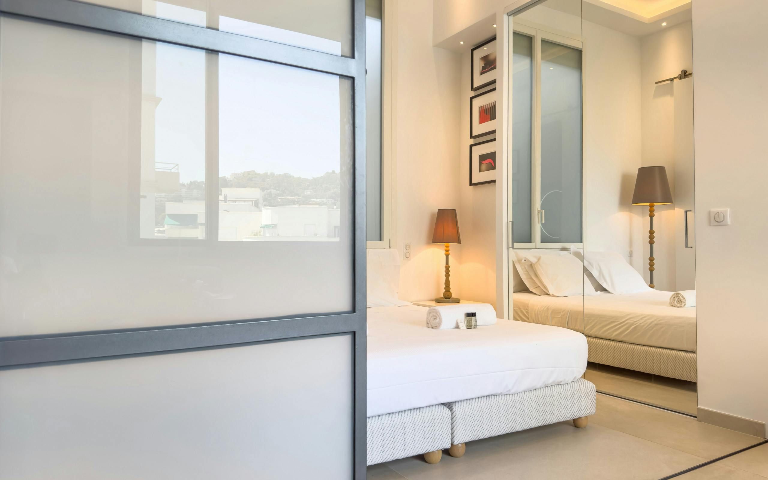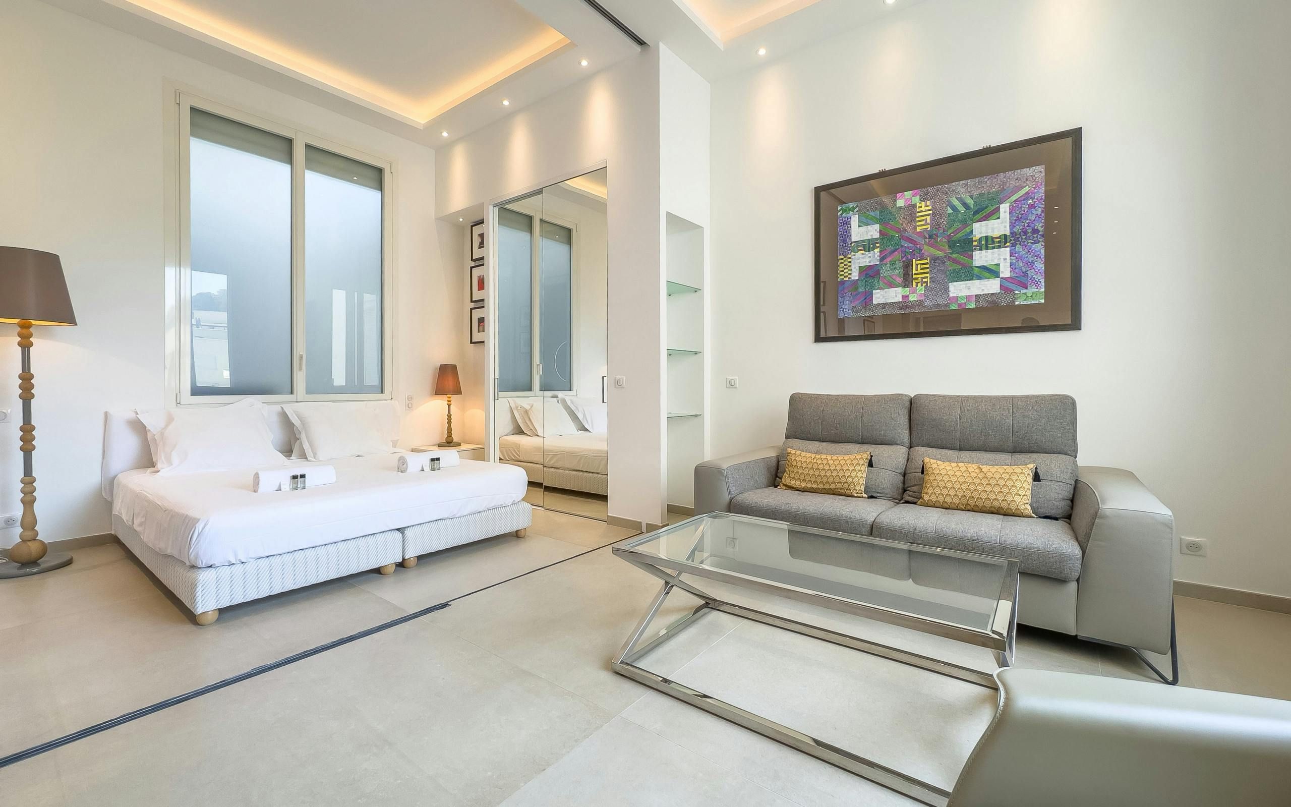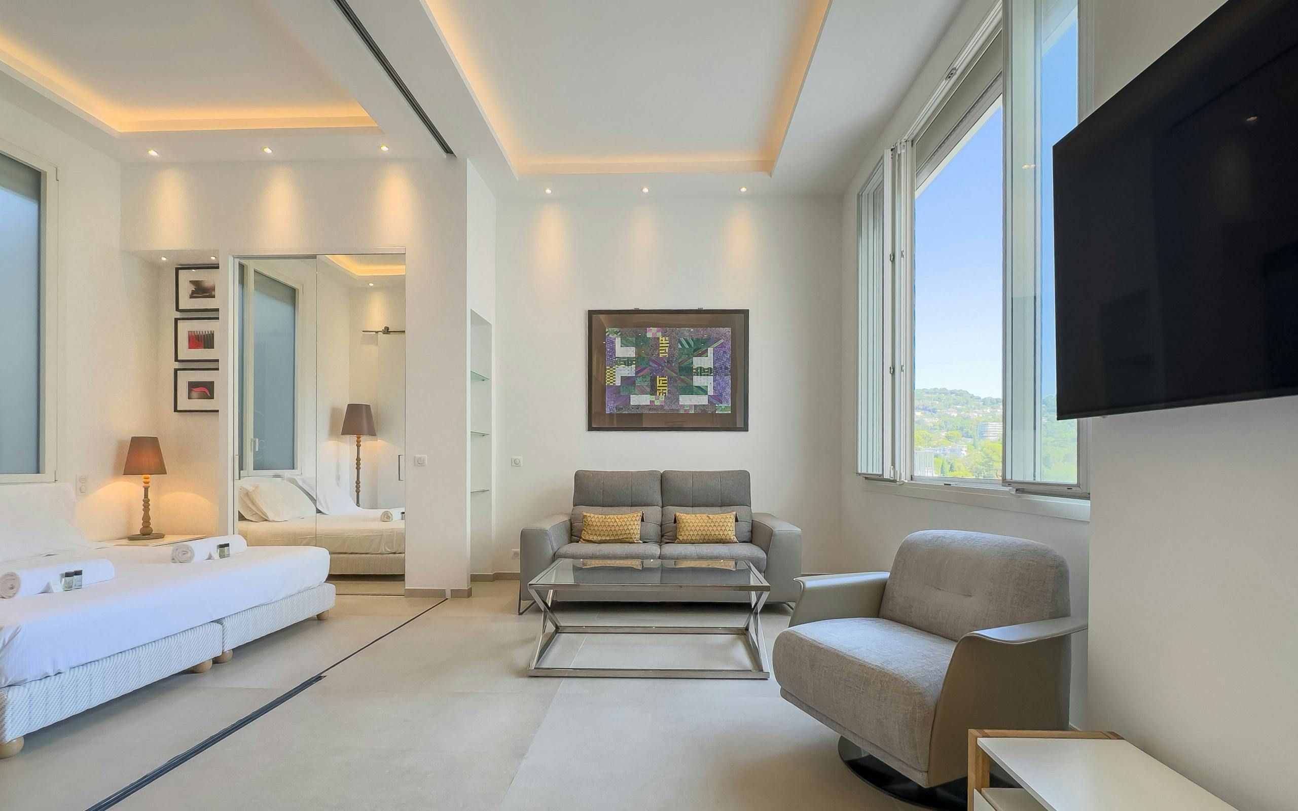 Staying here, you’ll be just a five-minute walk from La Croisette, the Palais des Festivals, and the beaches of Cannes. The shops of Rue d’Antibes are a short walk away, and you’ll have a wealth of restaurants nearby. The apartment is on the fifth floor of the building, offering countryside views that add to the calm vibe. It’s a studio apartment so privacy is limited, but you’ll have everything you need close to hand, including a contemporary kitchen and a living space where you can relax.