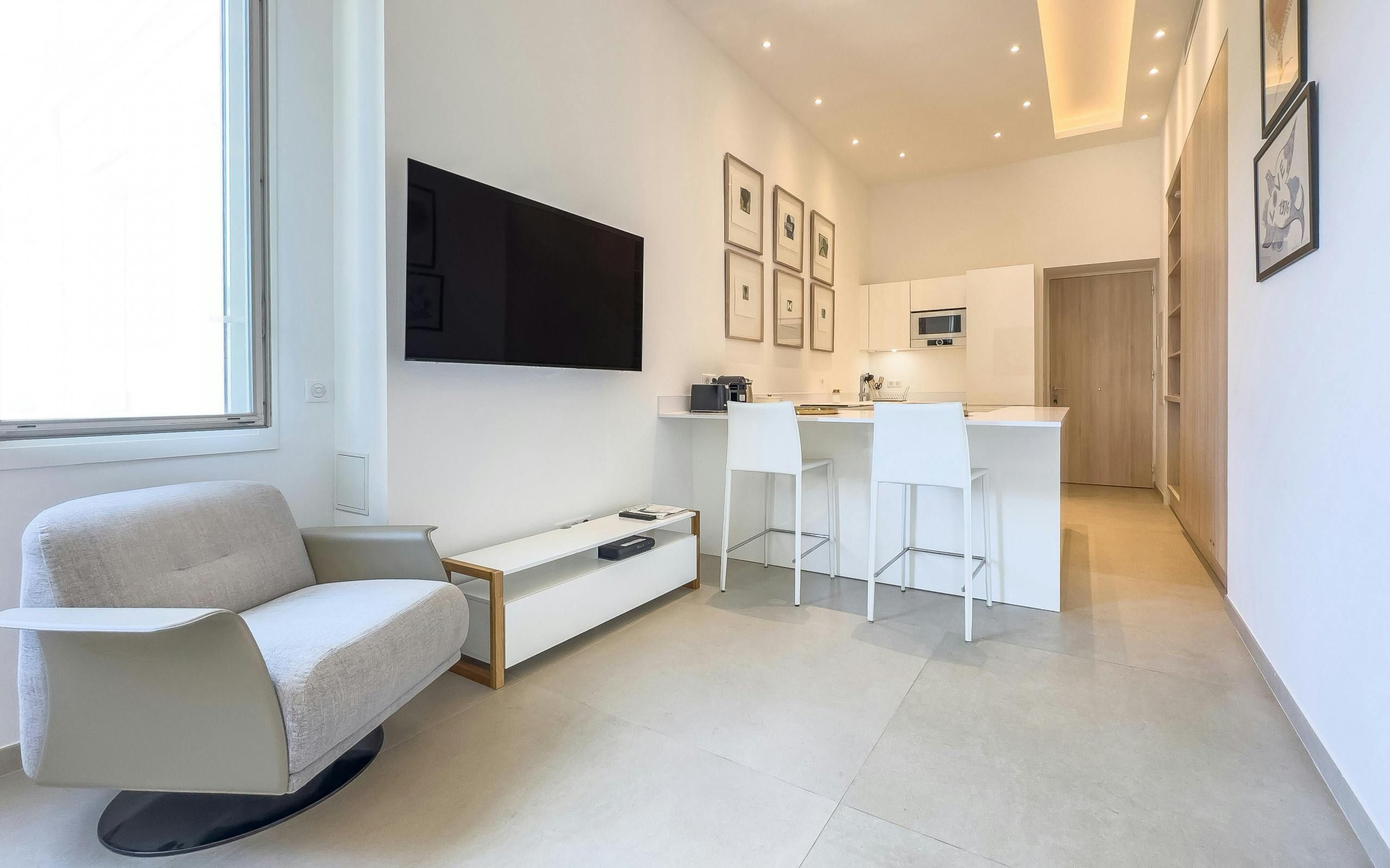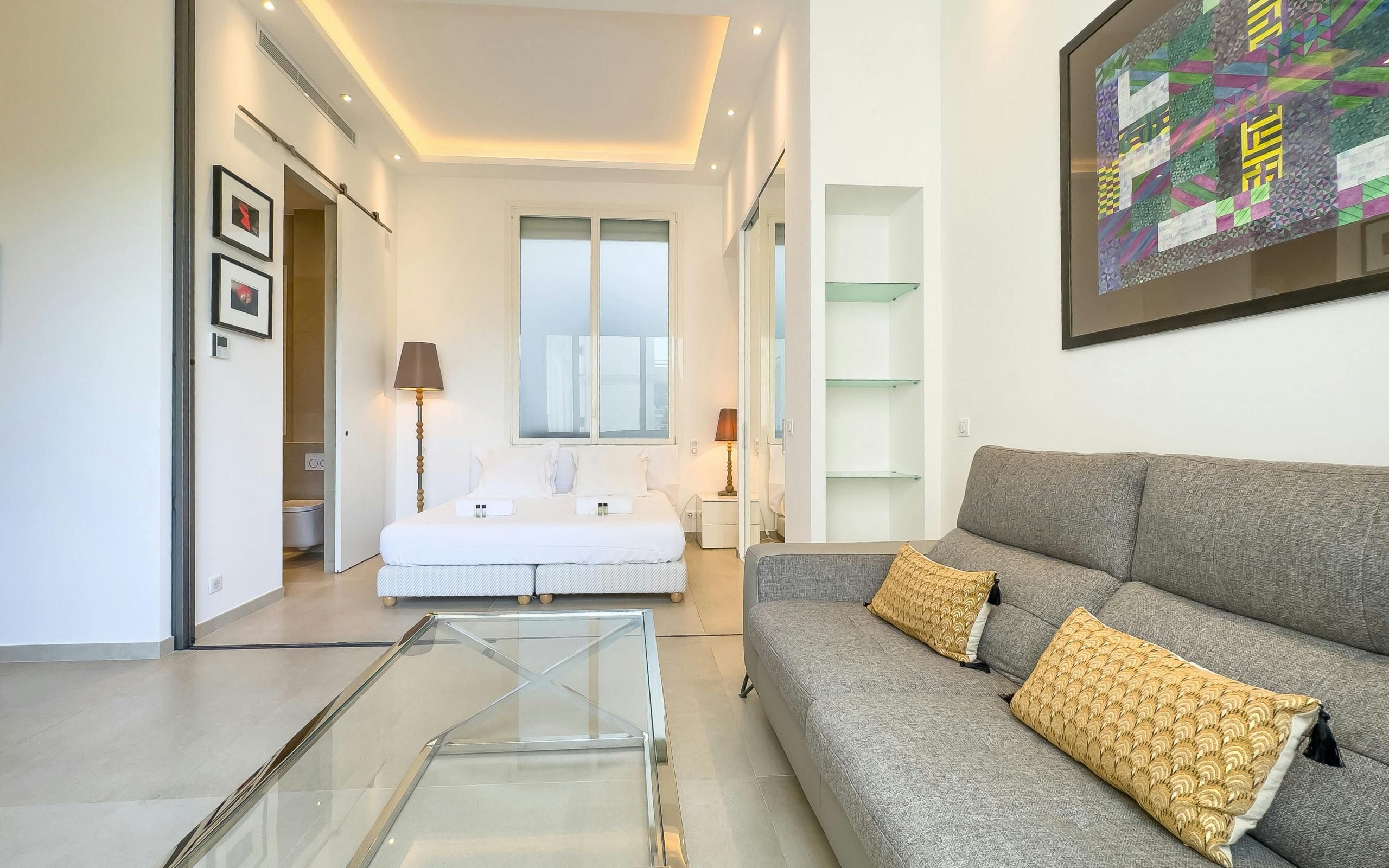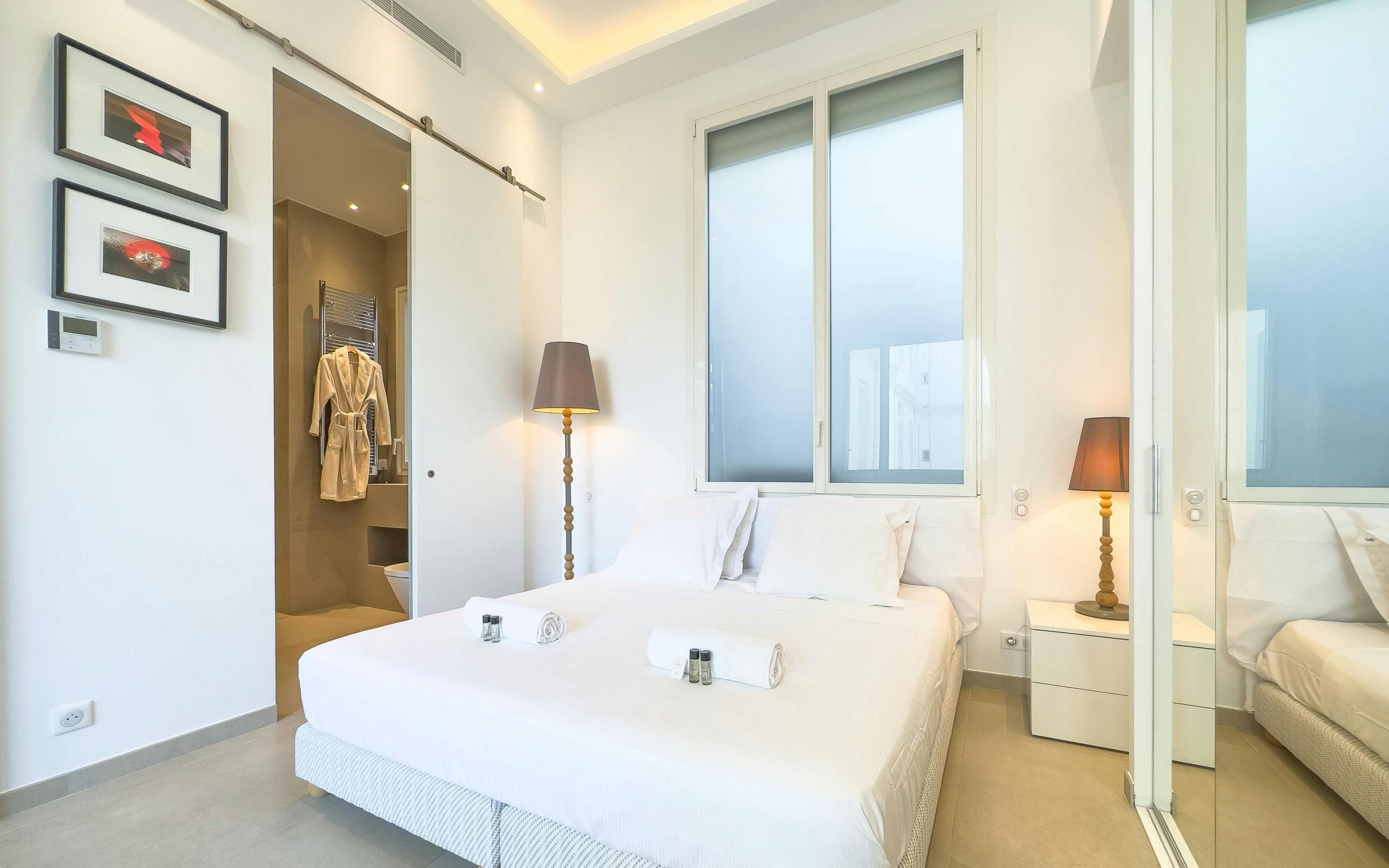 Staying here, you’ll be just a five-minute walk from La Croisette, the Palais des Festivals, and the beaches of Cannes. The shops of Rue d’Antibes are a short walk away, and you’ll have a wealth of restaurants nearby. The apartment is on the fifth floor of the building, offering countryside views that add to the calm vibe. It’s a studio apartment so privacy is limited, but you’ll have everything you need close to hand, including a contemporary kitchen and a living space where you can relax.