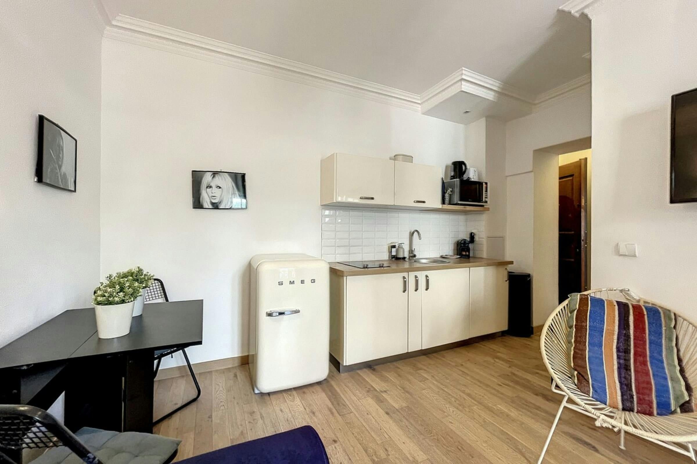 This apartment boasts a wonderful location in central Cannes. Palais des Festivals and the beaches are only a three-minute walk away, with a wealth of restaurants and shops nearby. Gambetta Market is next door, an excellent spot for buying the freshest fruit, vegetables, and regional specialities. The apartment is simple and fuss-free, with a kitchen to cook in if you fancy it. At full occupancy, two guests will sleep on a sofa bed in the living space.