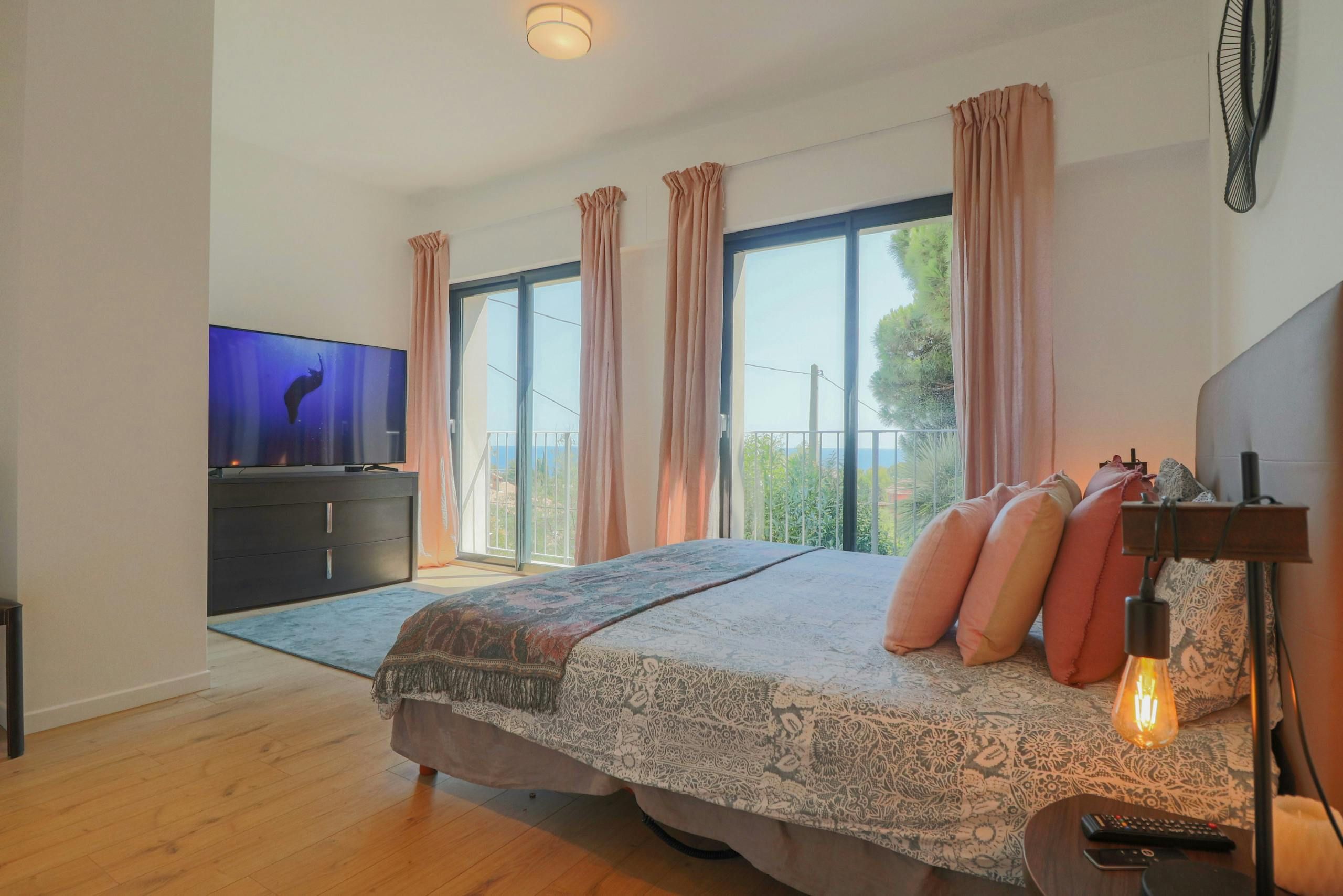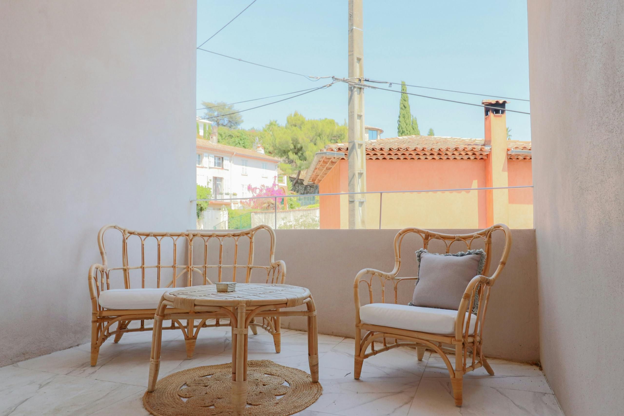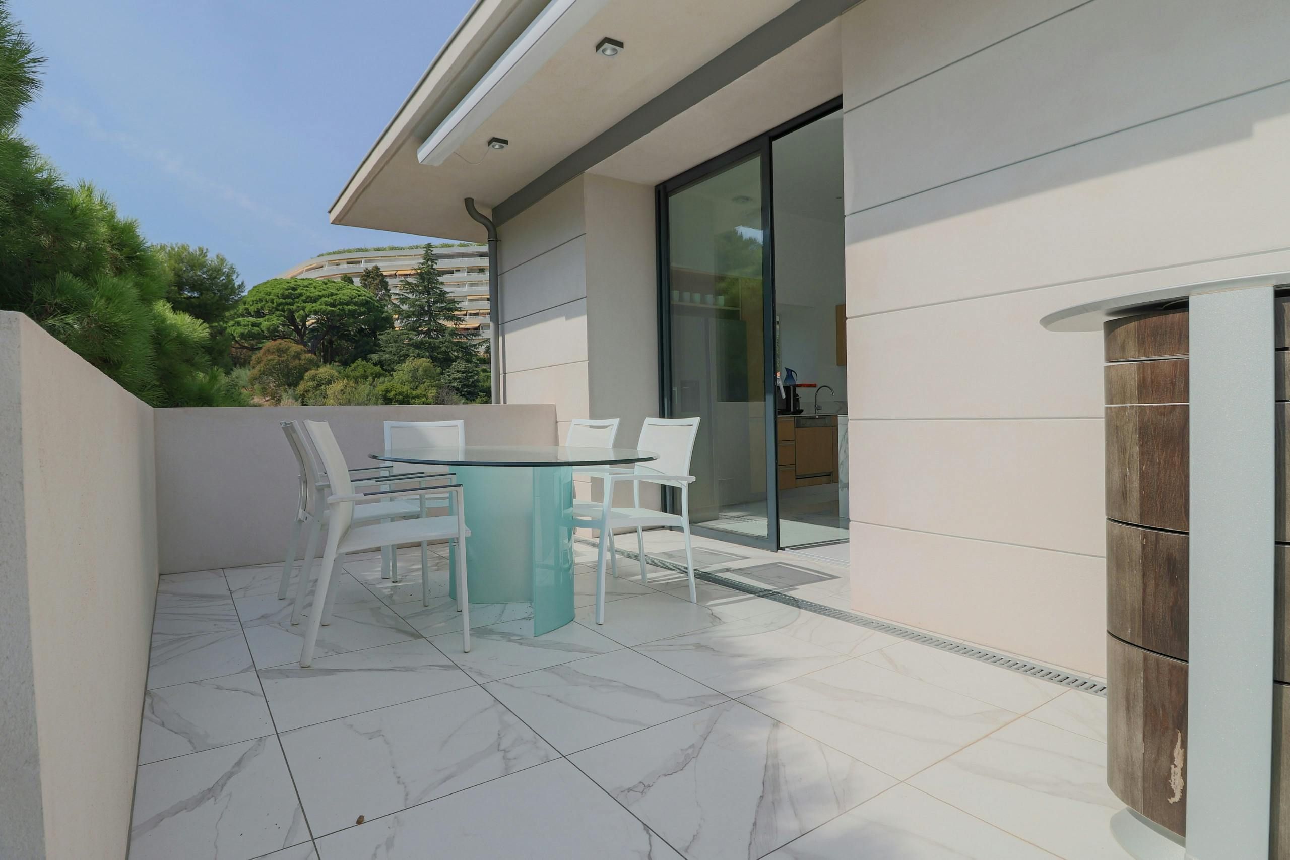 Set in a quiet yet accessible part of Cannes, this apartment is just five minutes from the beach and ten minutes from the city centre. You’ve got your own sunny terrace with sea views, and there’s a shared pool with plenty of loungers if you want a lazy afternoon. The interiors are understated but practical, with plenty of space to spread out in the open-plan living, kitchen and dining area. It's all about the location, though. The Croisette, restaurants, and the Palais des Festivals are all close enough to walk, plus if you want a bit of peace and greenery, Croix des Gardes park is just around the corner.