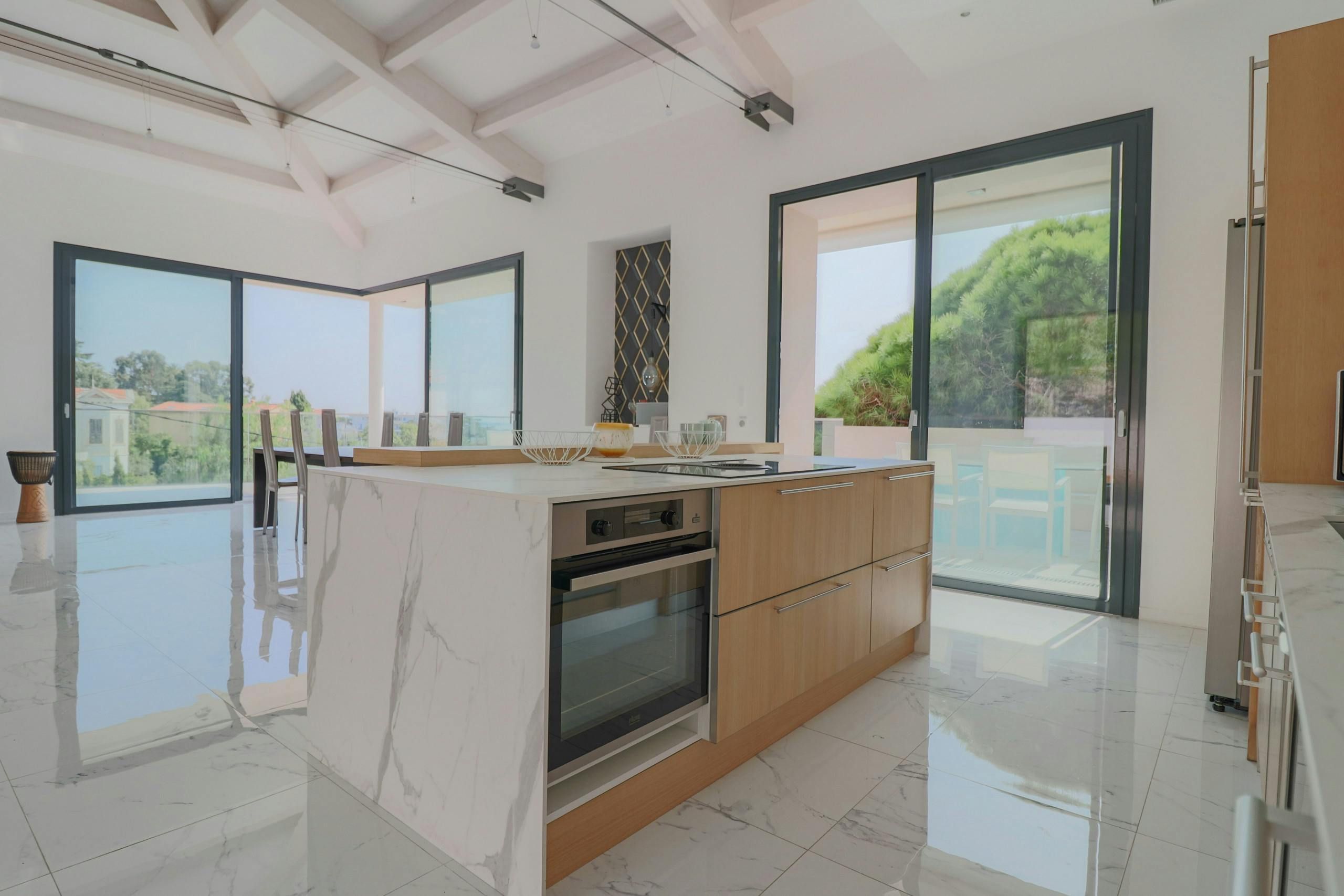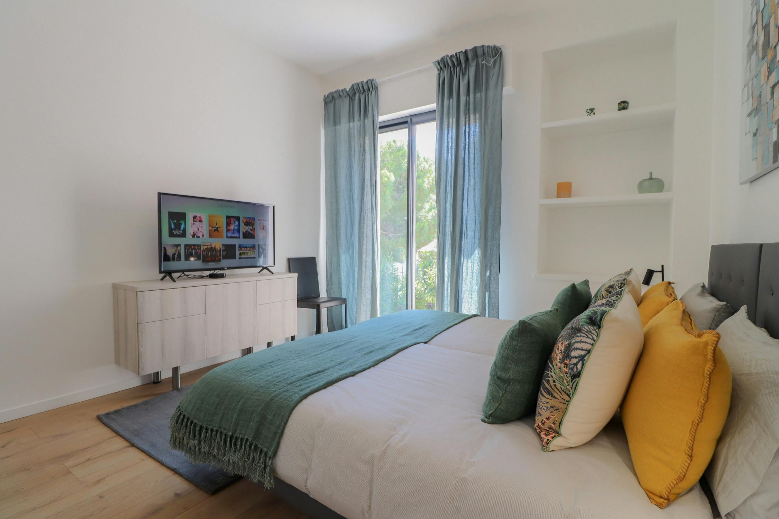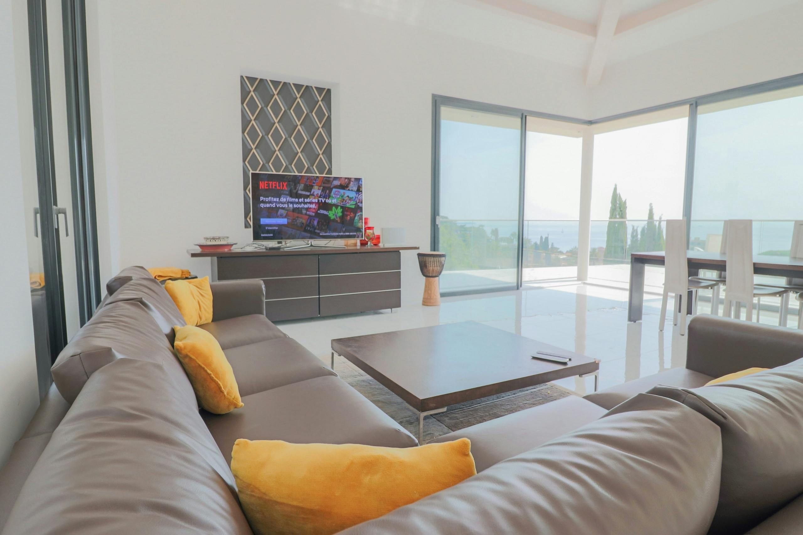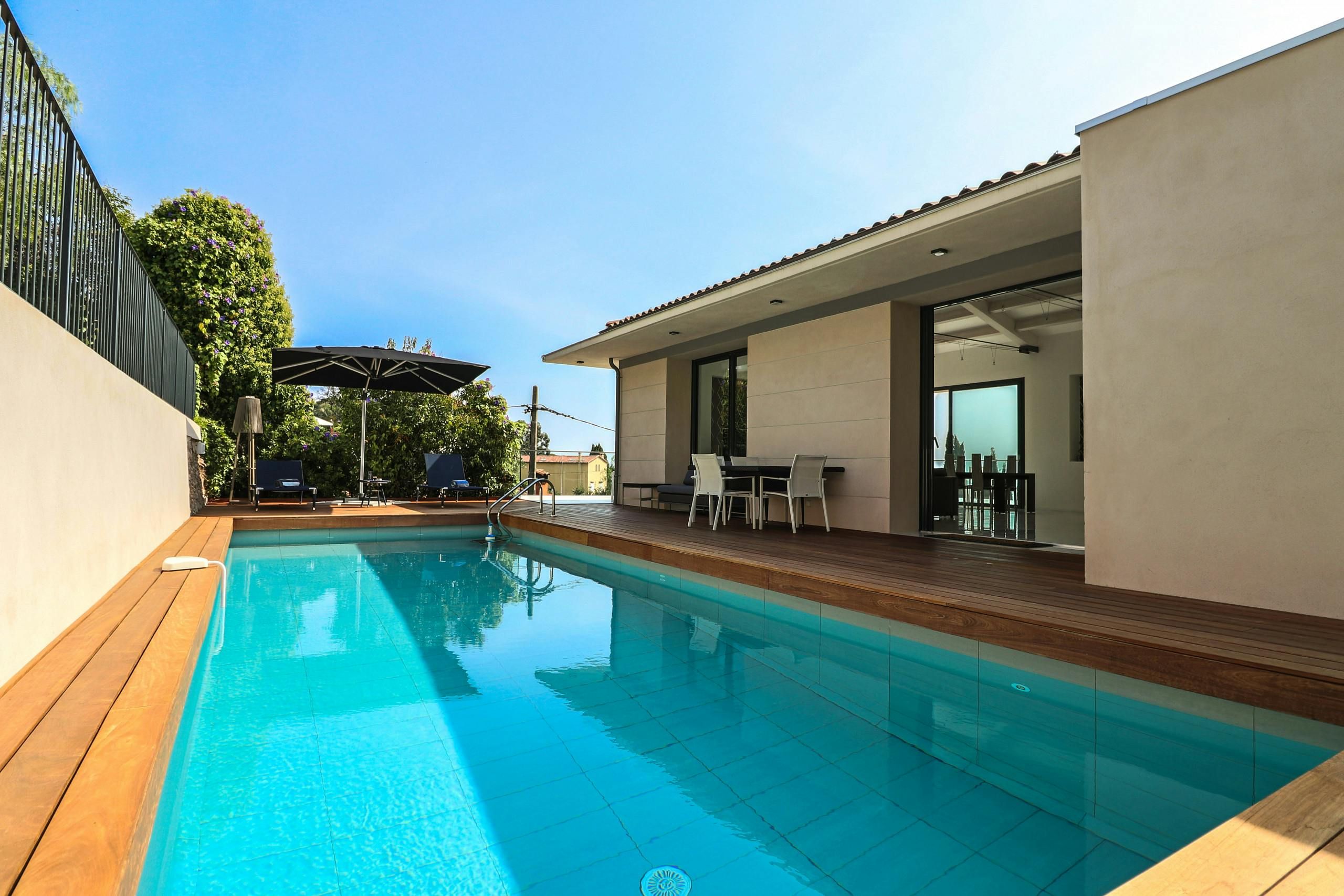 Set in a quiet yet accessible part of Cannes, this apartment is just five minutes from the beach and ten minutes from the city centre. You’ve got your own sunny terrace with sea views, and there’s a shared pool with plenty of loungers if you want a lazy afternoon. The interiors are understated but practical, with plenty of space to spread out in the open-plan living, kitchen and dining area. It's all about the location, though. The Croisette, restaurants, and the Palais des Festivals are all close enough to walk, plus if you want a bit of peace and greenery, Croix des Gardes park is just around the corner.