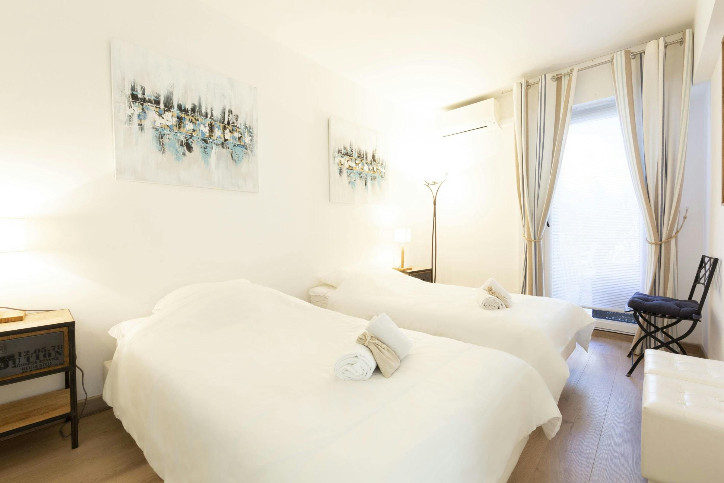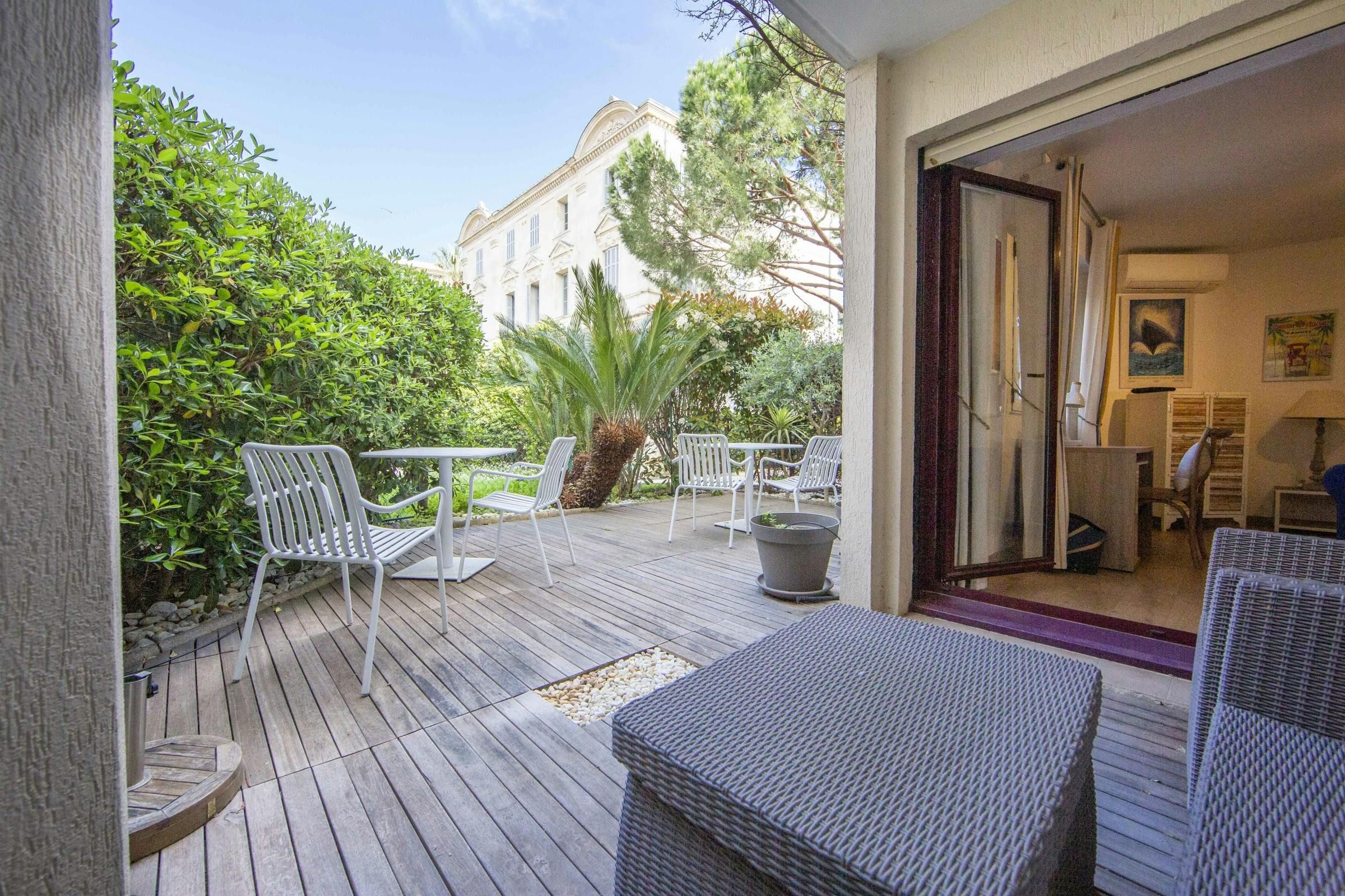 This charming Cannes apartment places you right in the centre of it all. You'll have the cobbled streets of the old town filled with buzzing bars and bistros a short walk away, and the beach just beyond that. Don't fancy the walk? Don't worry, there's a free shuttle to whisk you to the centre. If you prefer an evening in, you can prepare a home-cooked meal to enjoy on the terrace seating, or a glass of local wine as you admire the little private garden – after an afternoon spent splashing around in the large shared swimming pool, of course.