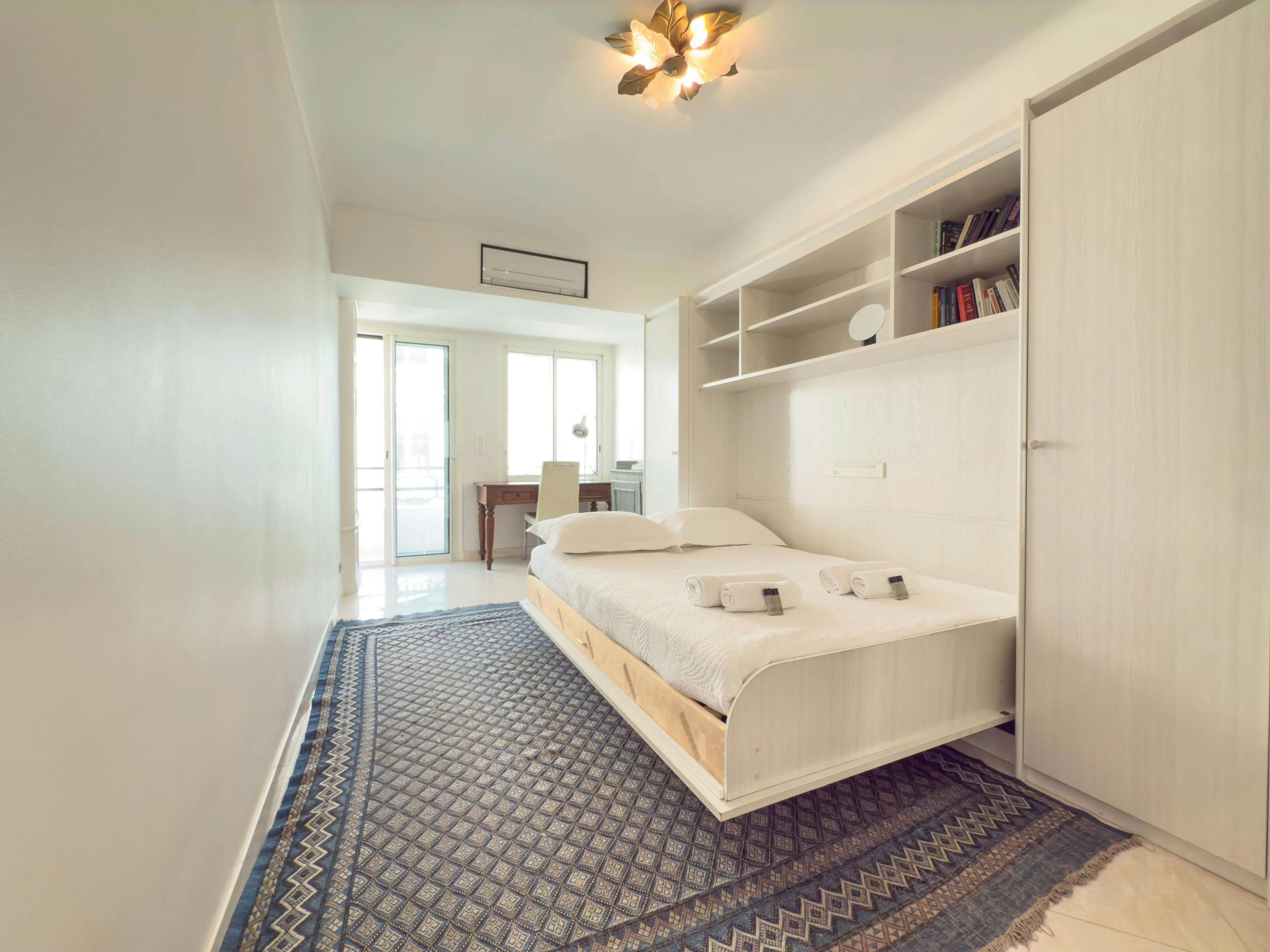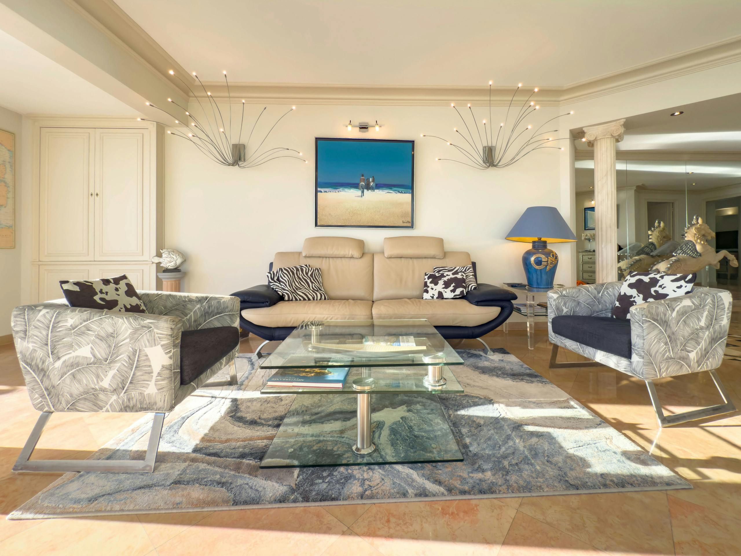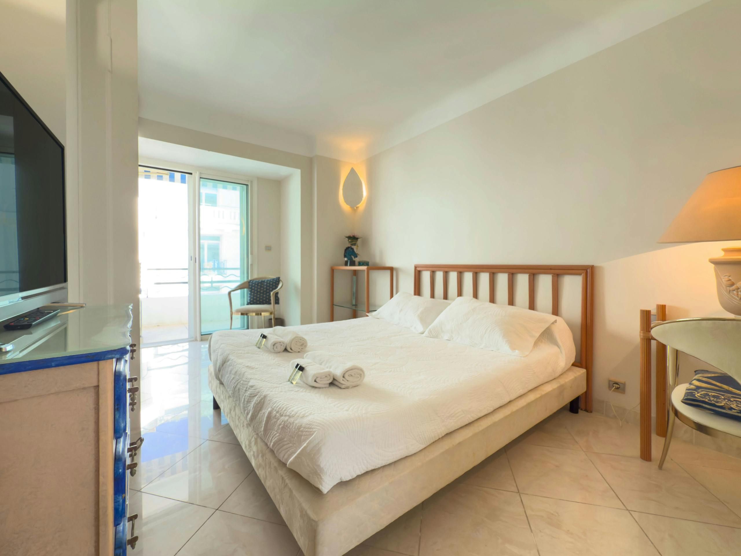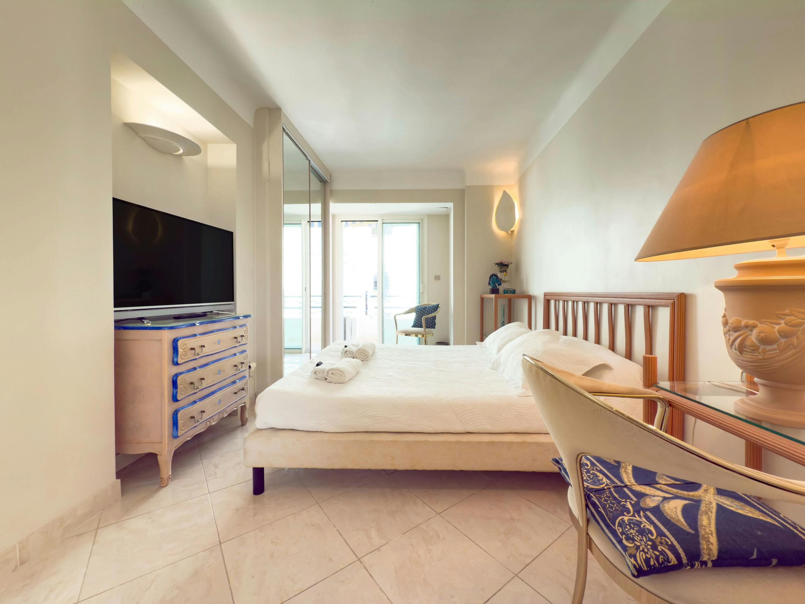 The search for an elegant beach-facing apartment in Cannes stops here. Its sixth-floor setting means you can admire stunning views of the sea and the Croisette, whether you’re sipping Champagne on the balcony or lounging in the open living room and dining area. There’s a separate kitchen for keen home cooks, but there’s also a wealth of restaurants nearby. You’ll be just a ten-minute walk from the iconic Palais des Festivals, and can skip across the road to the beach in no time. You’ll have everything you might need for a comfortable stay here.