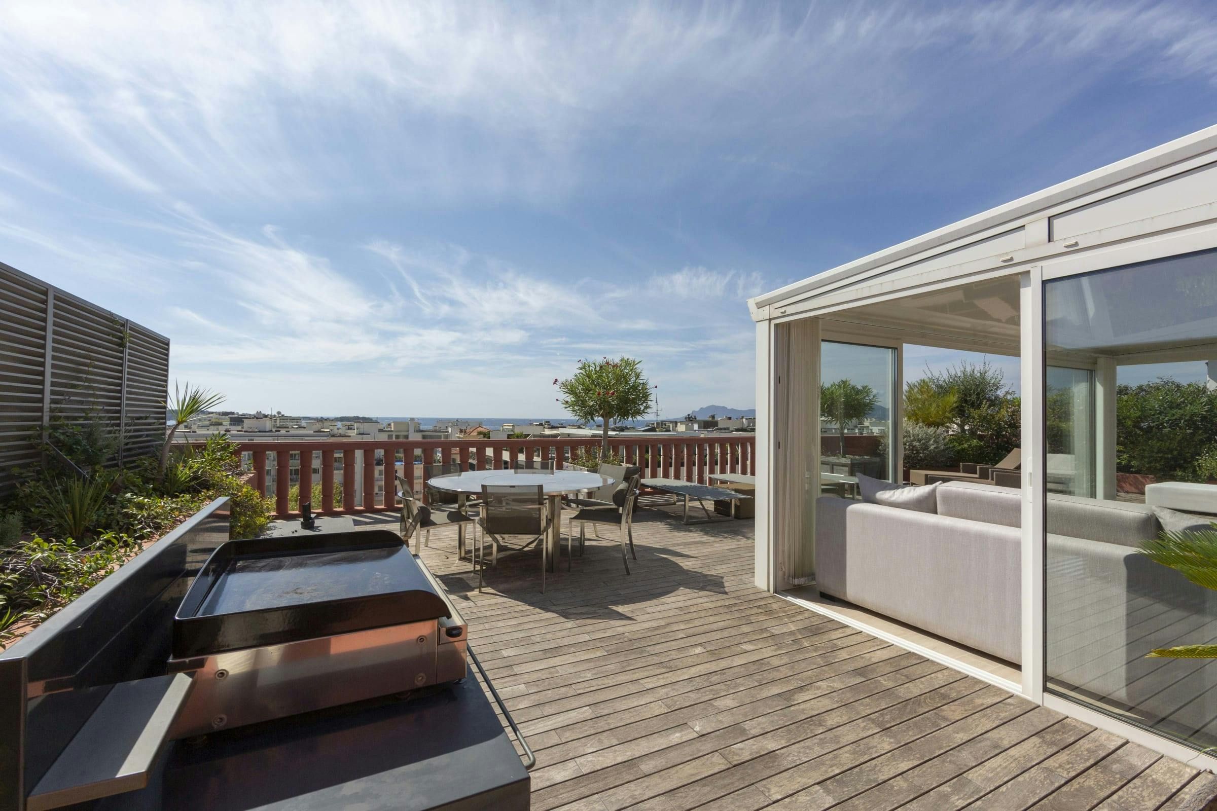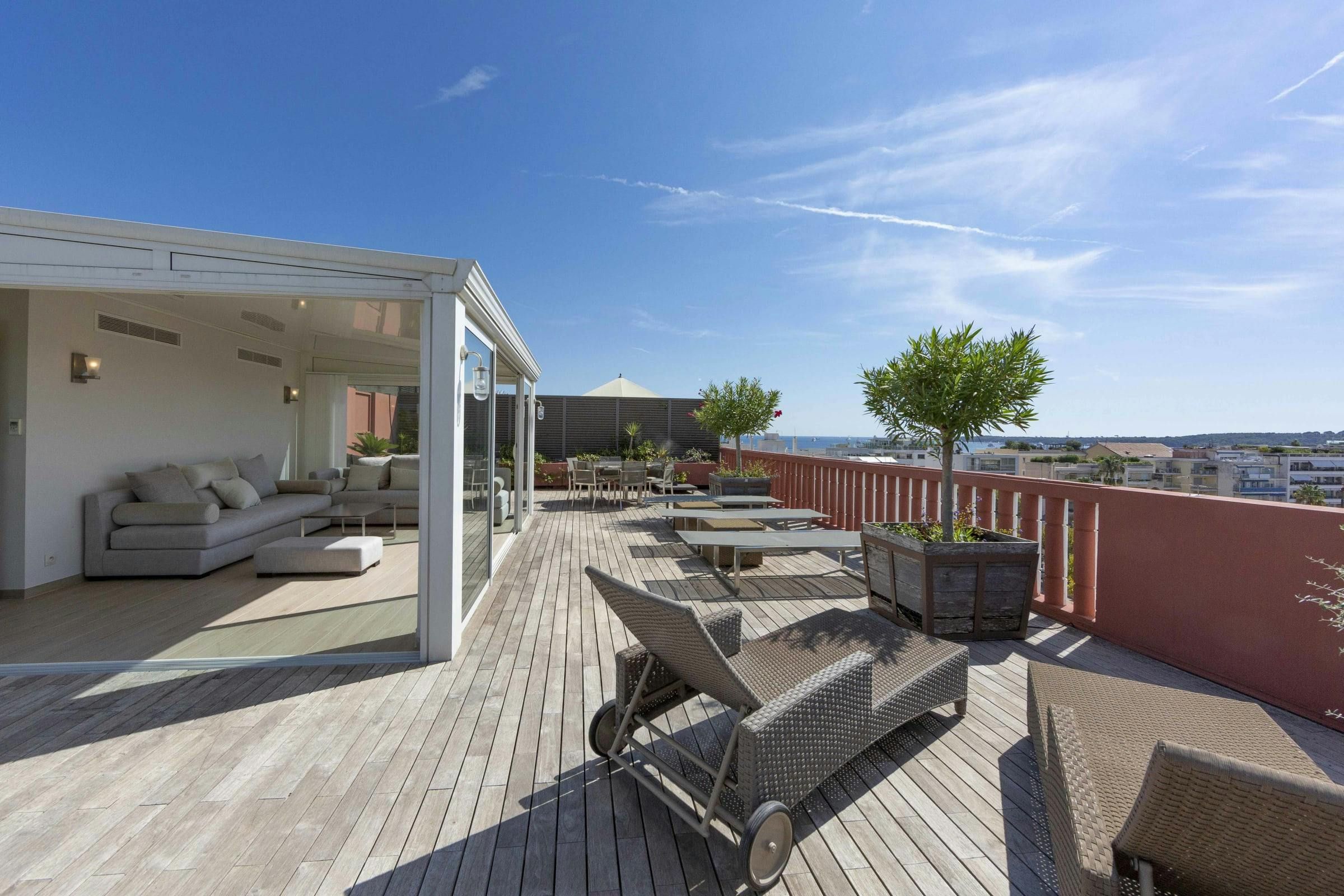 From the moment you set foot on this home’s sunny south-facing rooftop terrace, you'll be captivated by the stunning city and sea views. There’s also a balcony with room for alfresco dining. If it all gets a bit too hot, head to the air-conditioned sunroom or relax in the elegant living area. All this space isn’t at the expense of location, though. Boulevard de la Croisette is under 100 metres away. Plus, you’ll have the choice of two beaches just a short stroll away – Plage Gazagnaire and Bijou Plage.