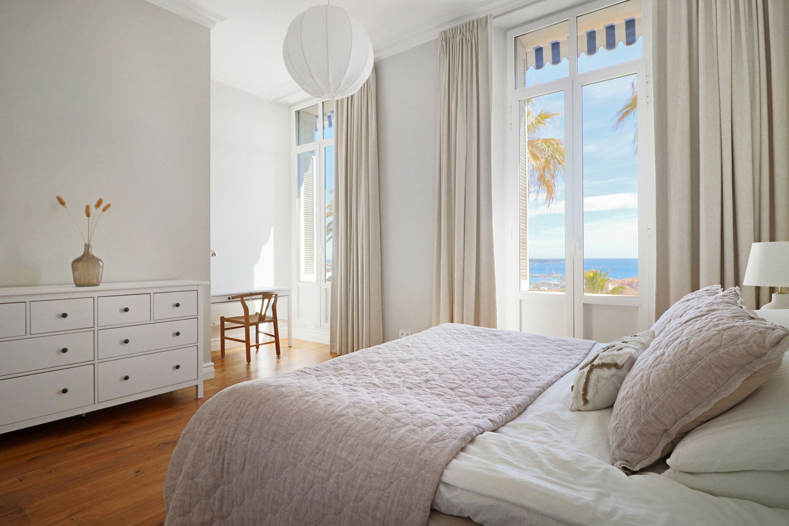 This apartment is in a great spot for discovering the historic heart of Cannes. It's right opposite Le Suquet, with a balcony that looks straight out at the sea. Inside, the high ceilings add to the spacious feel, and the open-plan kitchen, dining, and living area is great for hanging out. Best of all, all three bedrooms have a view, so no one misses out. You can walk to the Palais des Festivals in about ten minutes, and the Croisette and beaches are just as close. Shops, bakeries, and restaurants are practically on your doorstep, too, making this retreat as convenient as it is scenic.