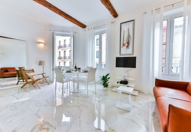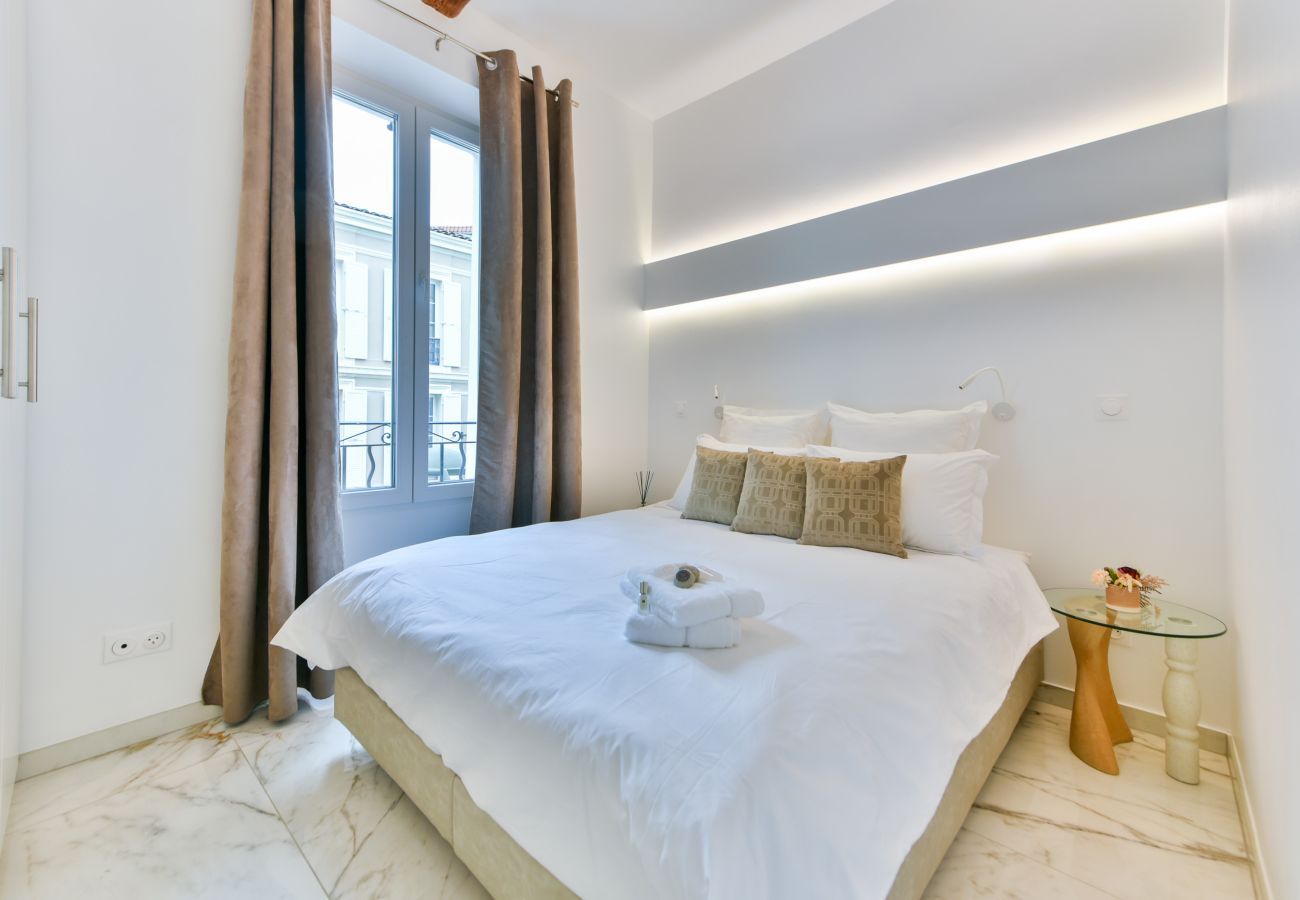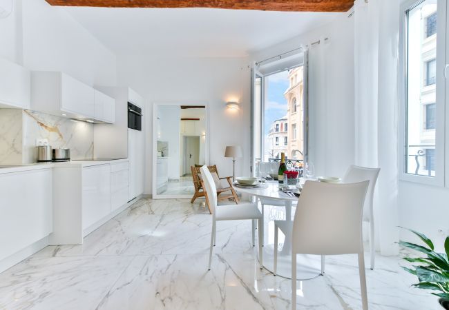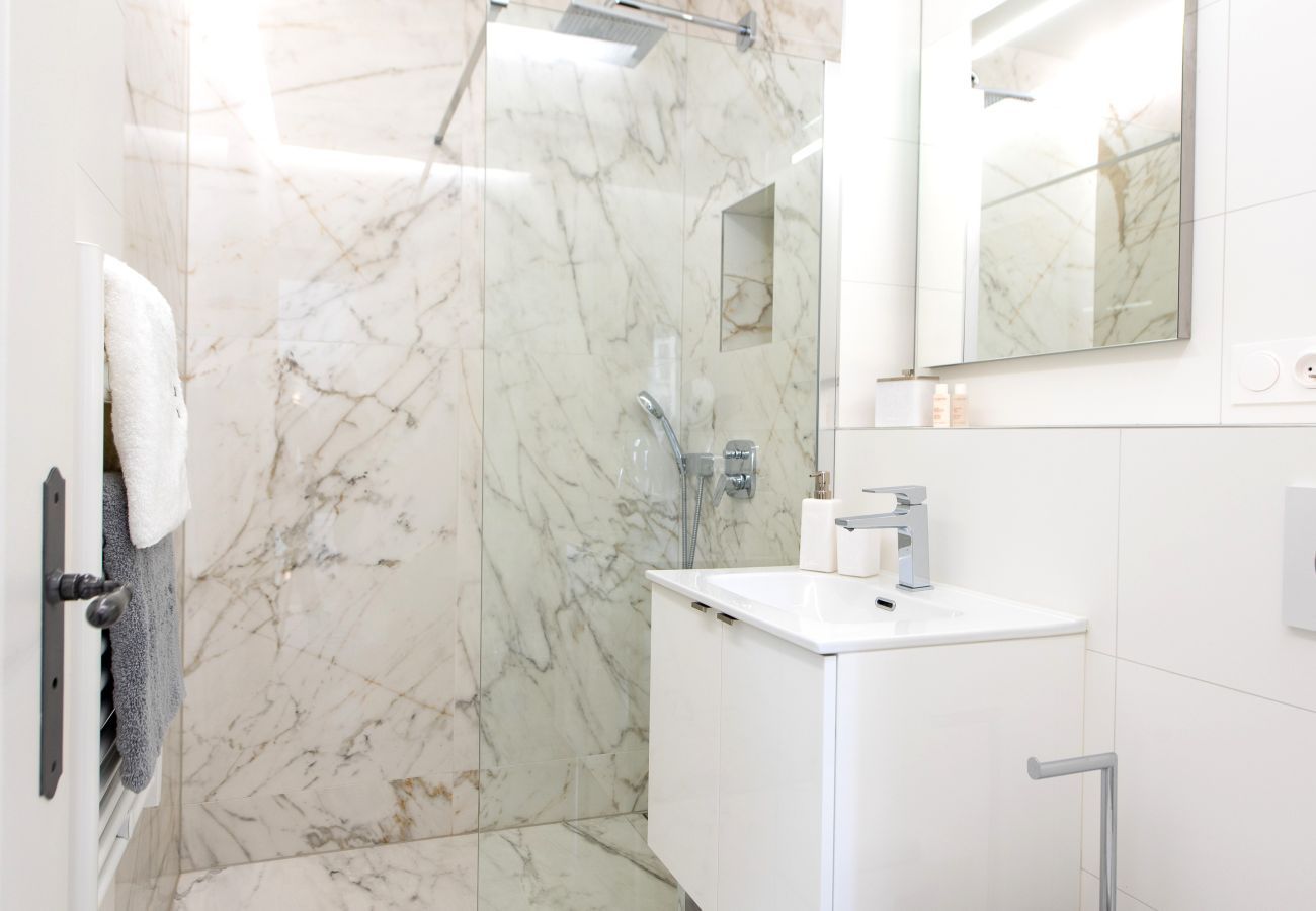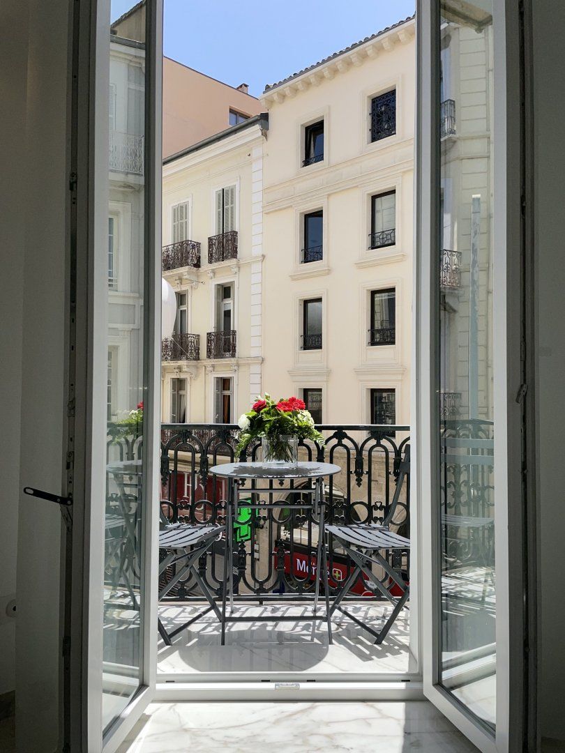 Inside, minimalism is the name of the game with glossy white marble floors, sleek white cabinetry and pared-back decor. We love how much natural light pours in through the French doors – open these up to reveal a small private balcony equipped with a table and chairs. This is the ideal spot to begin mornings over fresh coffee and croissants while people-watching from your privileged position or to enjoy a celebratory sundowner when you’re not out sampling the many trendy bars within easy reach. With a comfy bedroom and a relaxing rainfall shower to wake up to each morning, you’ve got everything you need for a carefree Cannes getaway.