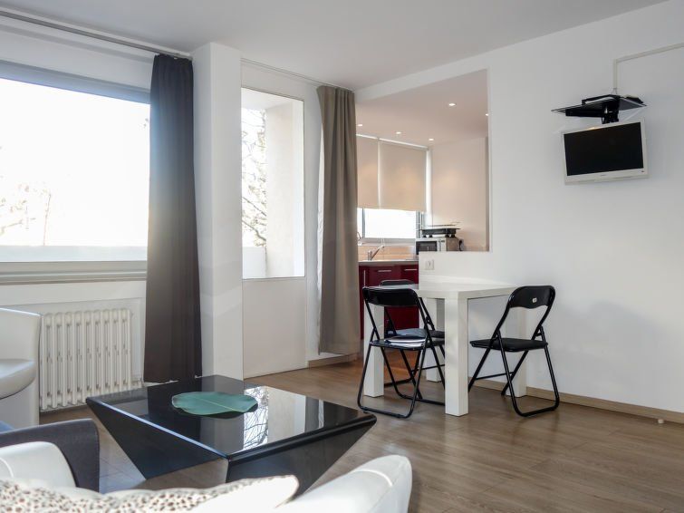 1-room apartment 35 m2 on 1st floor. Partly renovated in 2015, practical and comfortable furnishings: living/dining room with 1 double sofabed (140 cm, length 190 cm), TV and flat screen. Exit to the balcony. Kitchen (oven, dishwasher, 4 ceramic glass hob hotplates, microwave, electric coffee machine).