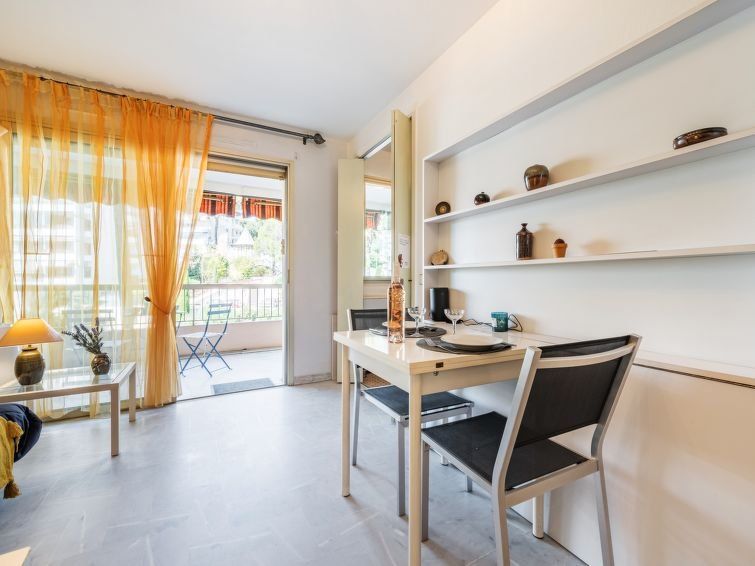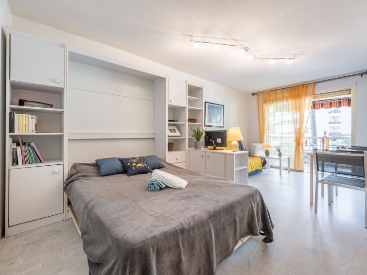 1-room studio 27 m2 on 1st floor. Comfortable furnishings: living/dining room with 1 french bed (140 cm, length 190 cm), TV and flat screen. Exit to the terrace. Kitchenette (oven, dishwasher, 4 ceramic glass hob hotplates, kettle, microwave, electric coffee machine). Hip bath/WC.