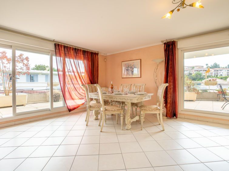 4-room apartment 122 m2 on 3rd floor. Comfortable furnishings: living/dining room 47 m2 with TV (flat screen), air conditioning. Exit to the terrace. 1 room with 1 french bed (140 cm, length 190 cm), air conditioning. Exit to the terrace. 1 room with 1 french bed (160 cm, length 200 cm), shower/WC and air conditioning.