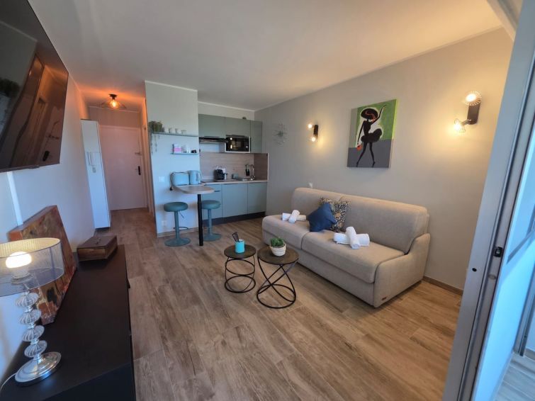 "Joyce", 1-room apartment 20 m2 on 5th floor, east facing position. Comfortable and beautiful furnishings: living/dining room with 1 double sofabed (160 cm, length 200 cm), TV (flat screen). Exit to the veranda. Open kitchen (2 ceramic glass hob hotplates, microwave, electric coffee machine).