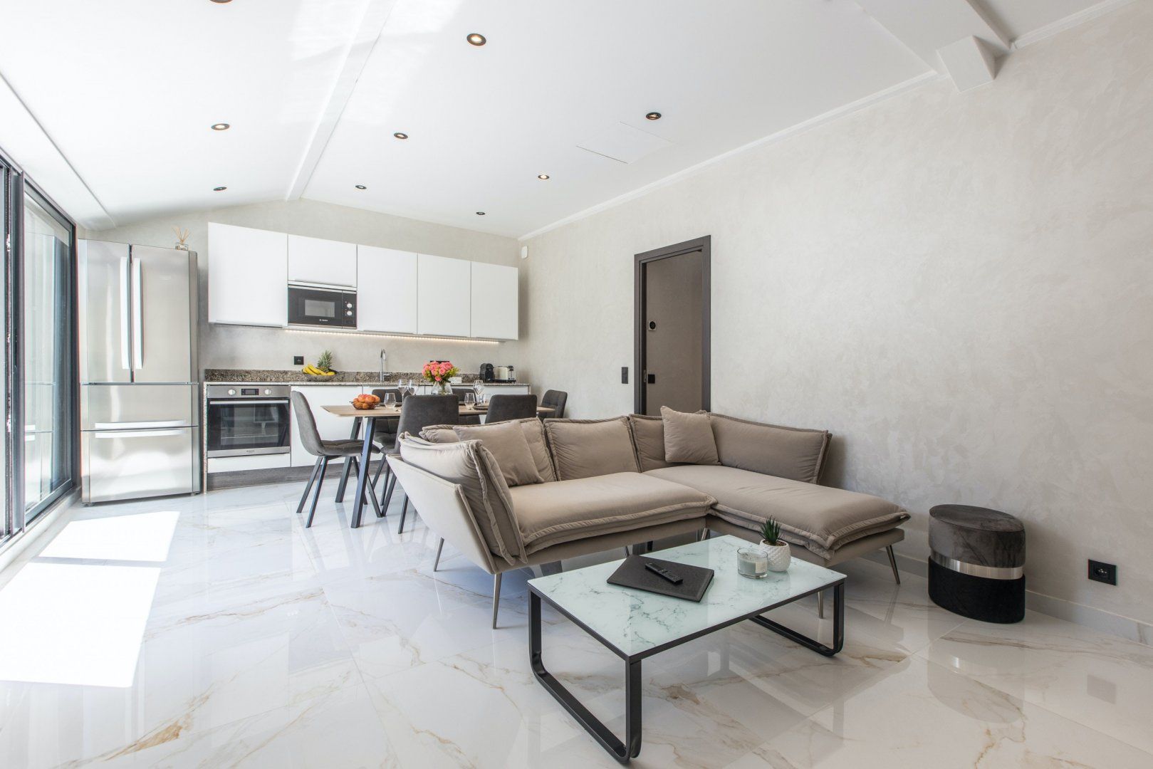 Stepping inside, you’re met with gleaming surfaces, marble floors, and sleek finishes – embodying the elegance of Cannes. Not only is it aesthetically beautiful, but there’s everything you could want and more for a comfortable stay. Your kitchen is well equipped with culinary gear to whip up something at home. Or you can spare the thought of food and completely unwind, letting your host take care of the details for you. A private chef, breakfast deliveries, grocery deliveries – you name it.
