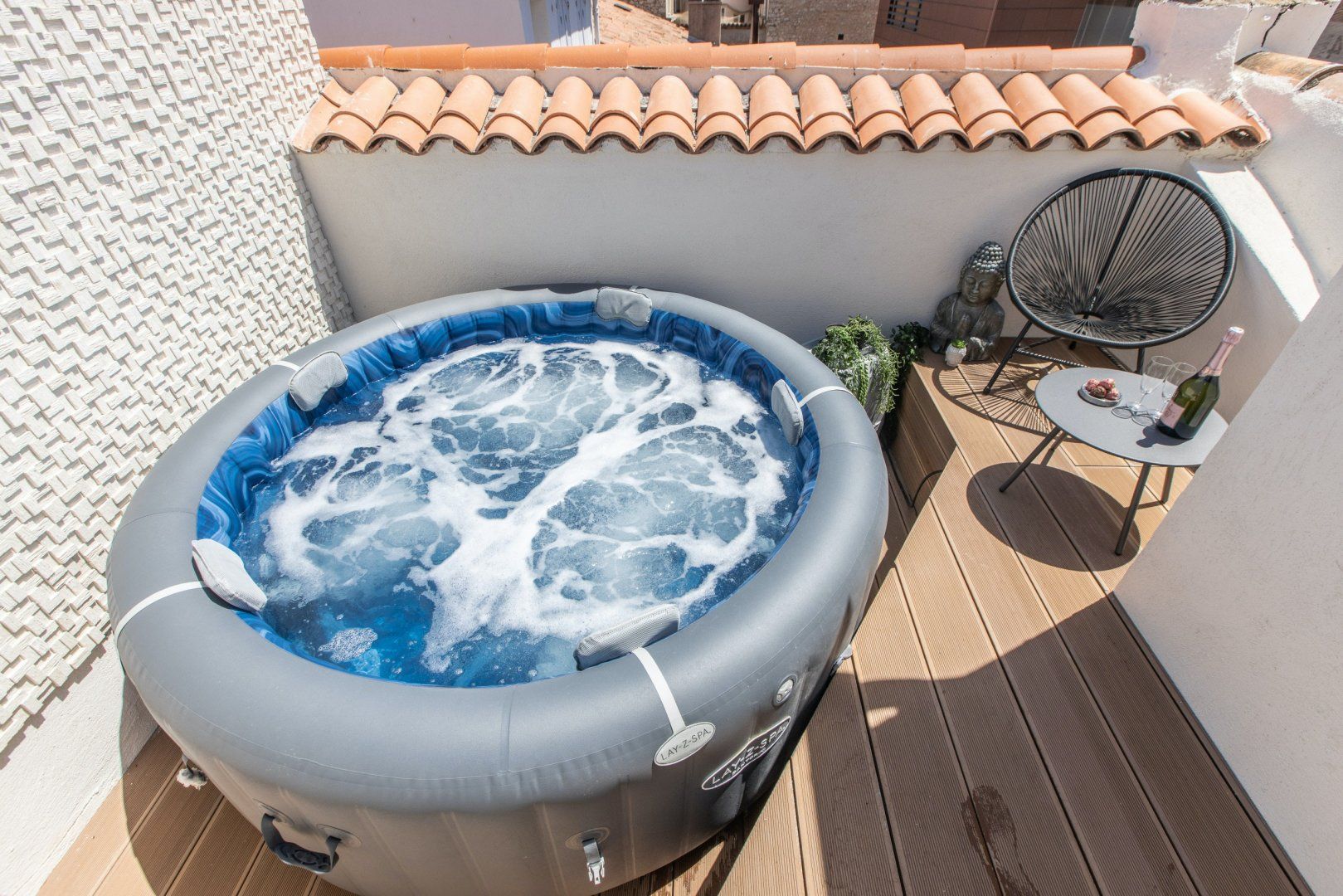 *There's a steep step leading down to the hot tub on the balcony