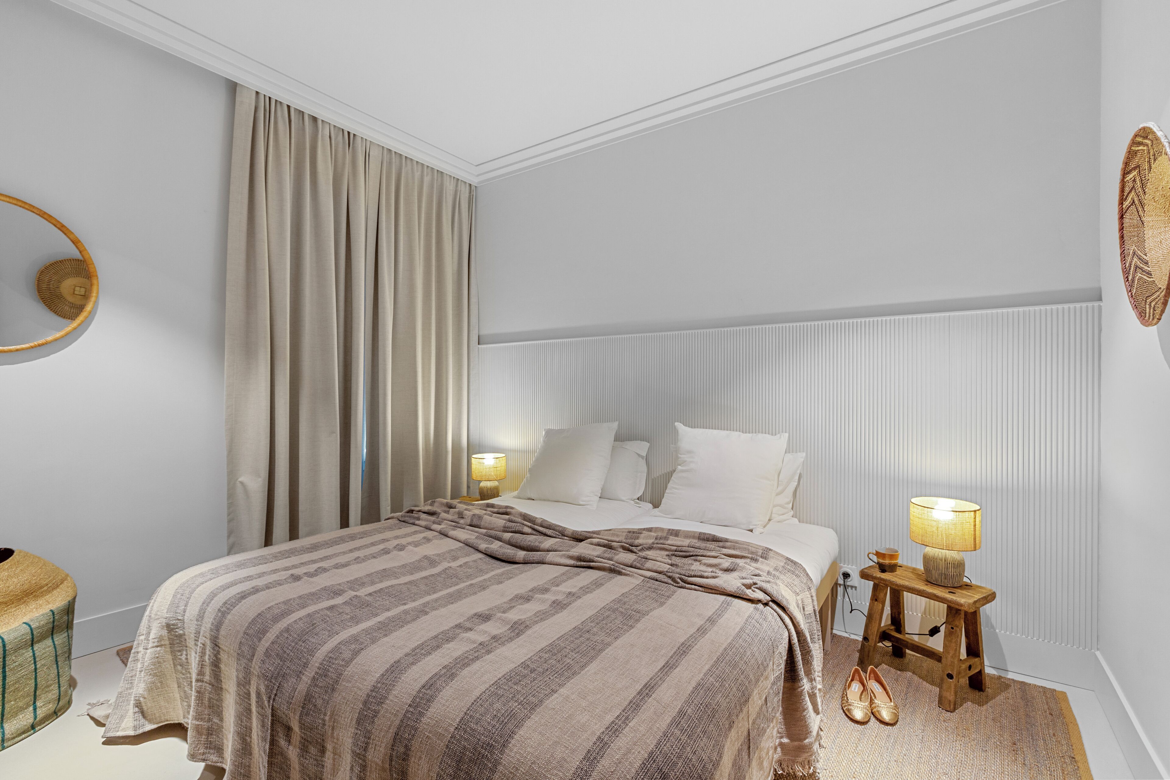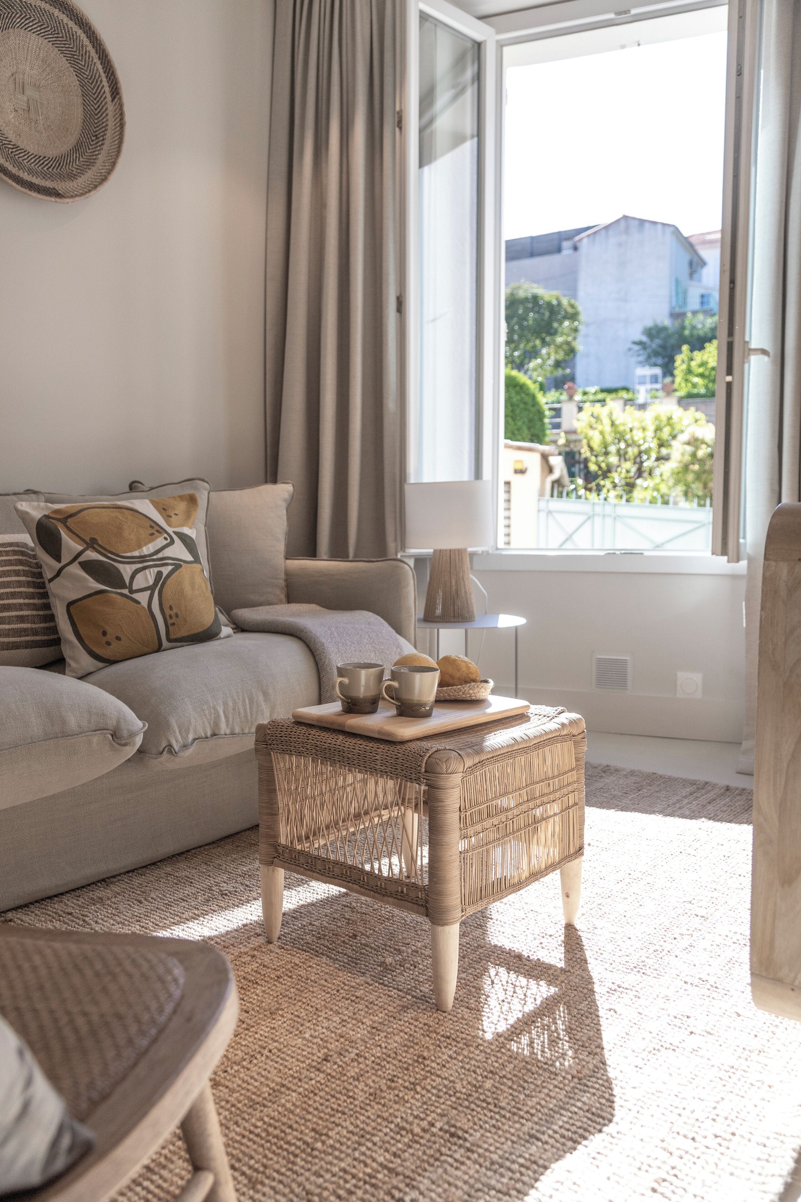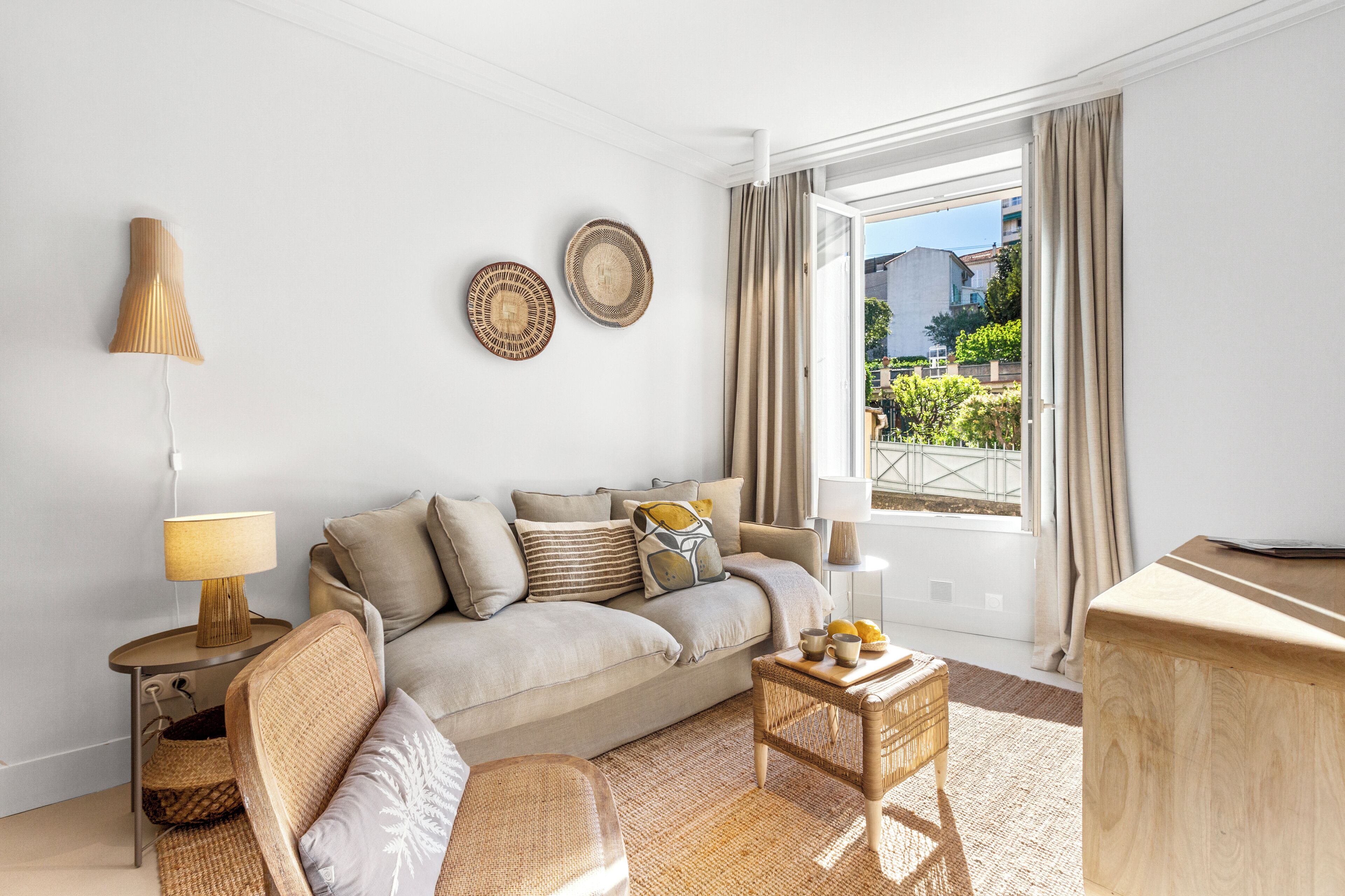On a narrow, hilly street just a short stroll away from the azure waters of the Cannes waterfront, this home awaits its next lucky guests. With its brightly lit rooms and warm wood-and-wicker style furnishings, this home exudes charm and comfort as soon as you walk in. The kitchen is fully-equipped with plenty of room to manoeuvre, the bedrooms are cosy, and the location is superb – step outside and take an easy walk to the Cannes Marina, or follow the coast to reach the iconic La Croisette beach.
