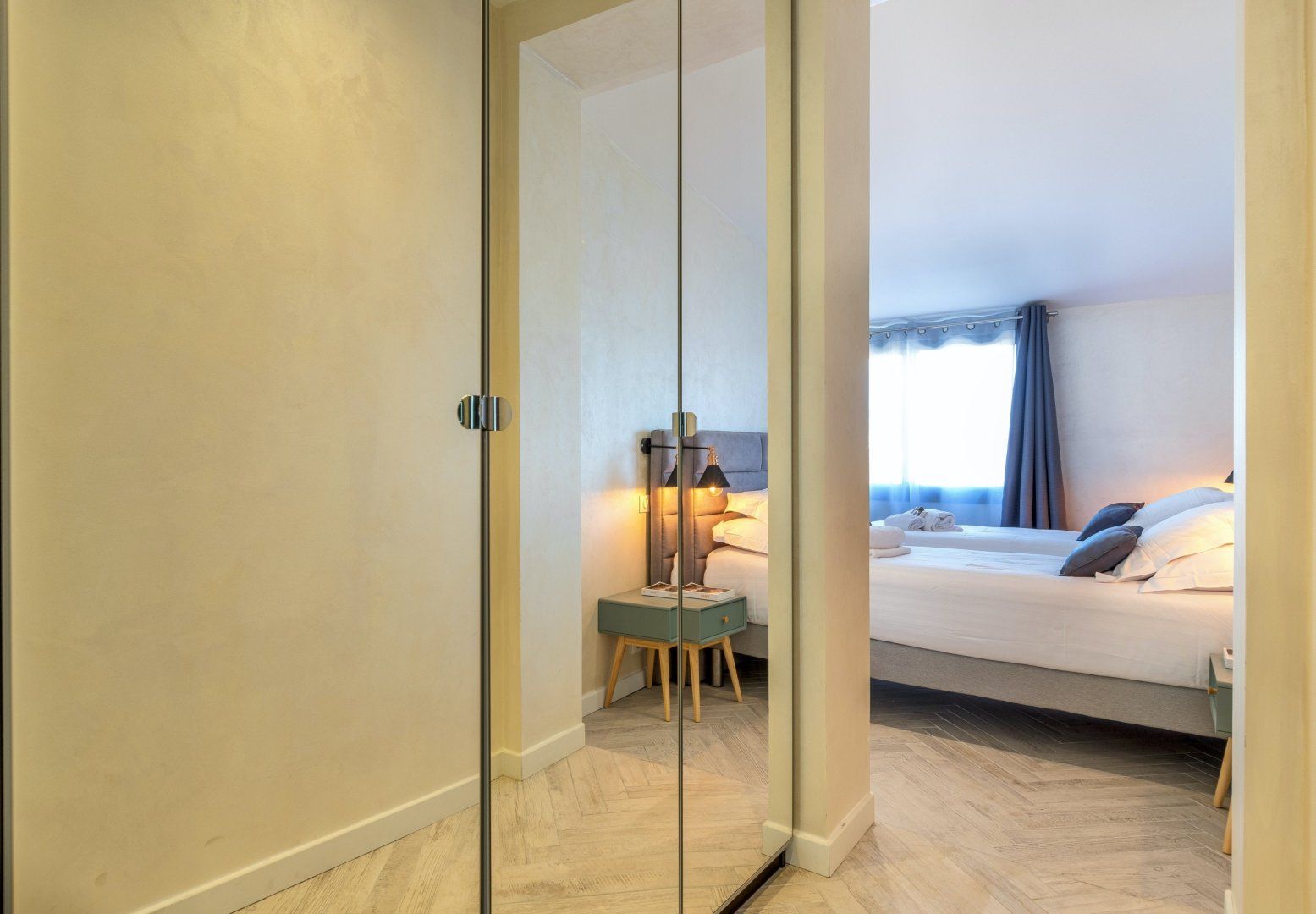 Up high on the top floor, this magical apartment features a gigantic roof window that transforms the inside main living area into a fabulous indoor-outdoor terrace – and boasts sweeping views over Cannes' sparkling seascape and rooftops. Exceptionally unique, the space not only becomes roofless, but its flawless design invites guests to experience a one-of-a-kind stay that extends far beyond your average city break.