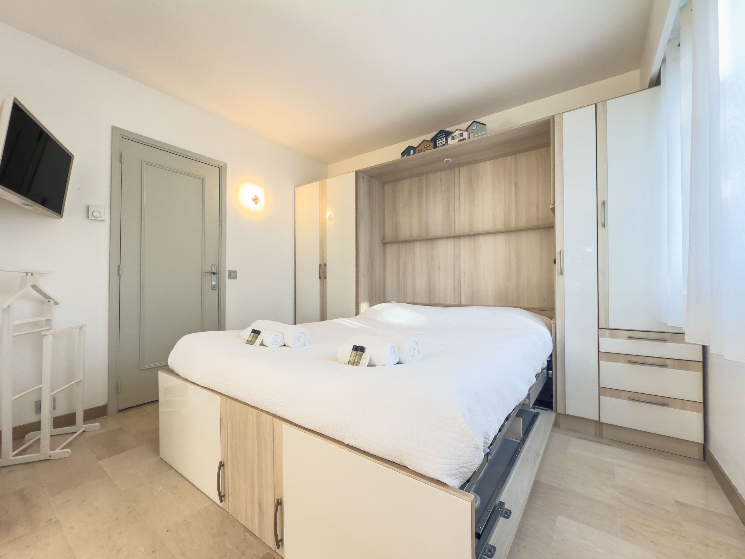 This apartment is situated right where you want to be when you’re visiting Cannes. It’s just a fifteen-minute walk from La Croisette, that famous palm-lined promenade where the beach meets designer boutiques and high-end restaurants. When you’re not out and about sampling the seaside sparkle, this home has everything you need to recharge your batteries, including a well-appointed kitchen and spacious terrace (with a barbecue for al fresco feasting). You’ll also have access to the communal pool when you stay here, perfect for a fresh morning dip or a few leisurely laps before you head back out to the glitz and glamour.