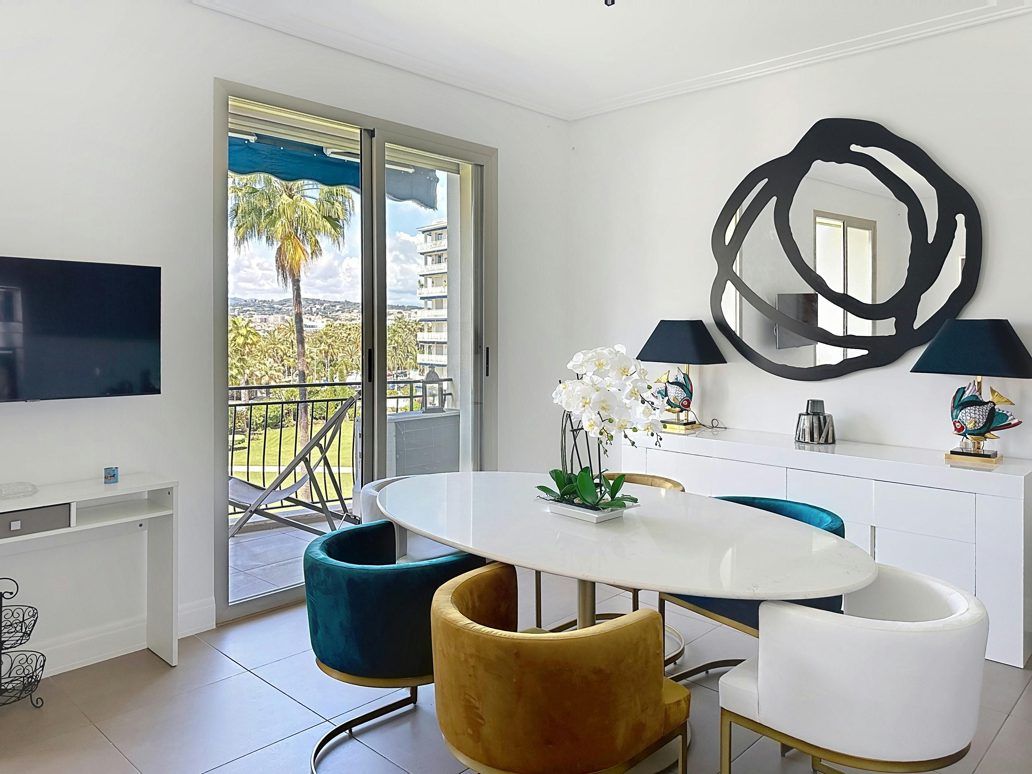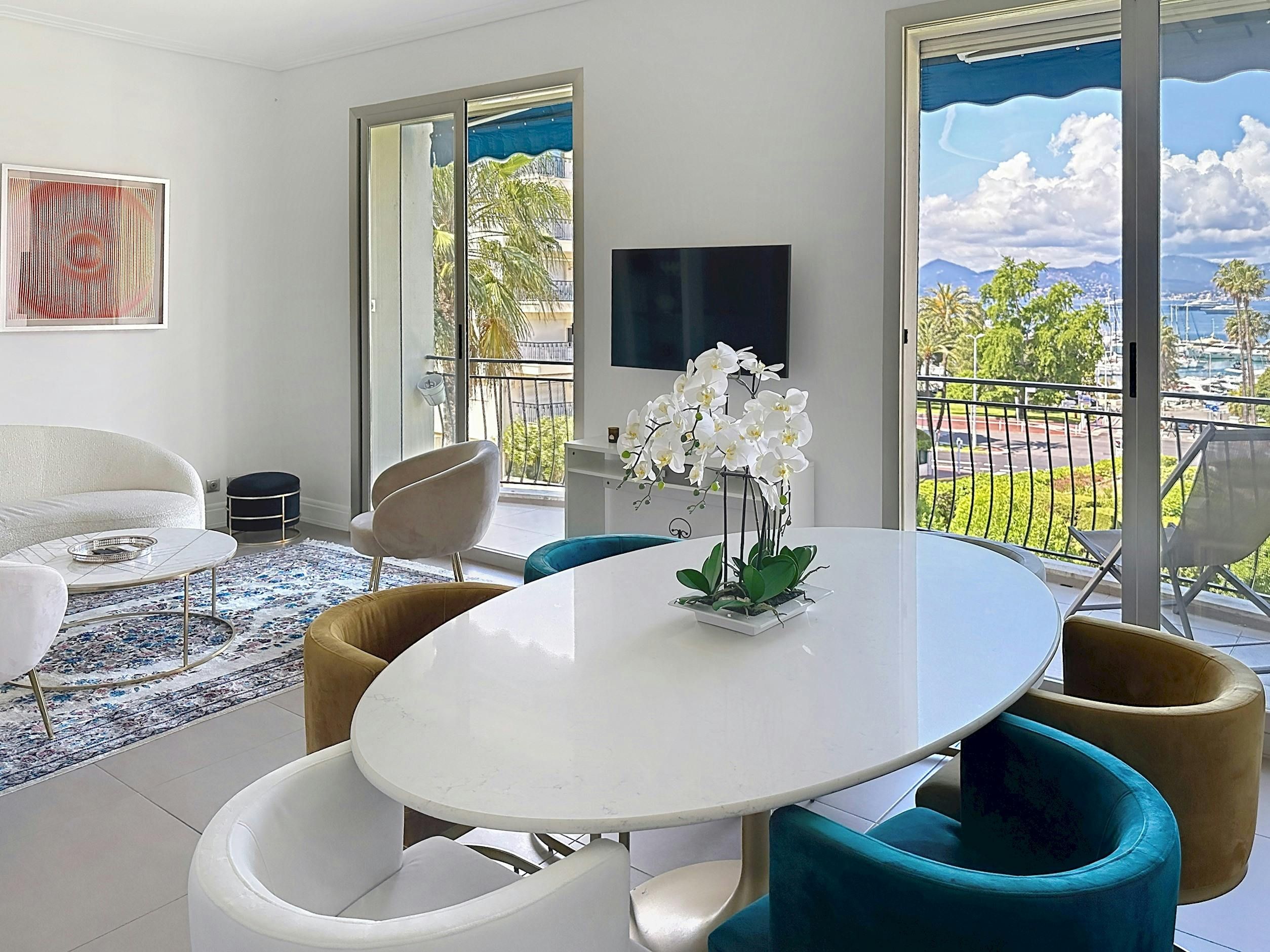 This central Cannes apartment with sea and harbour views from a private balcony is all about location. Step outside and you’re just moments from the marina’s gleaming super-yachts and a short stroll from the iconic palm-lined La Croisette. Inside, the decor may feel a little disjointed in places, but everything is beautifully cared for. With two bright and roomy bedrooms and two bathrooms, it’s a smart choice for two couples – no queues for the shower, or compromises on space here.