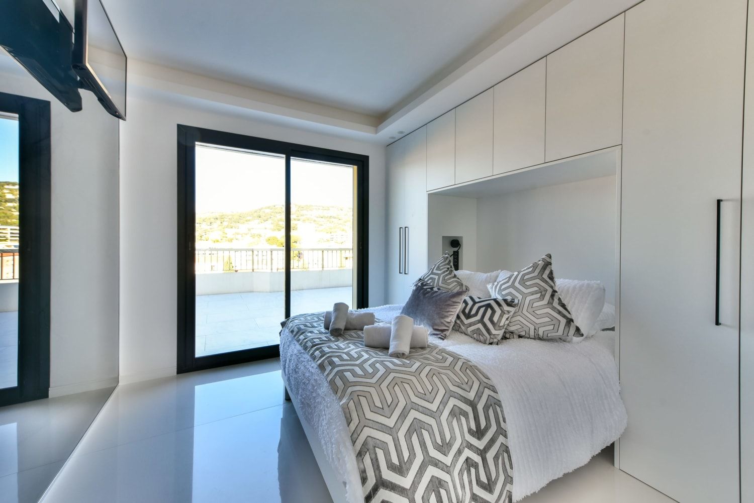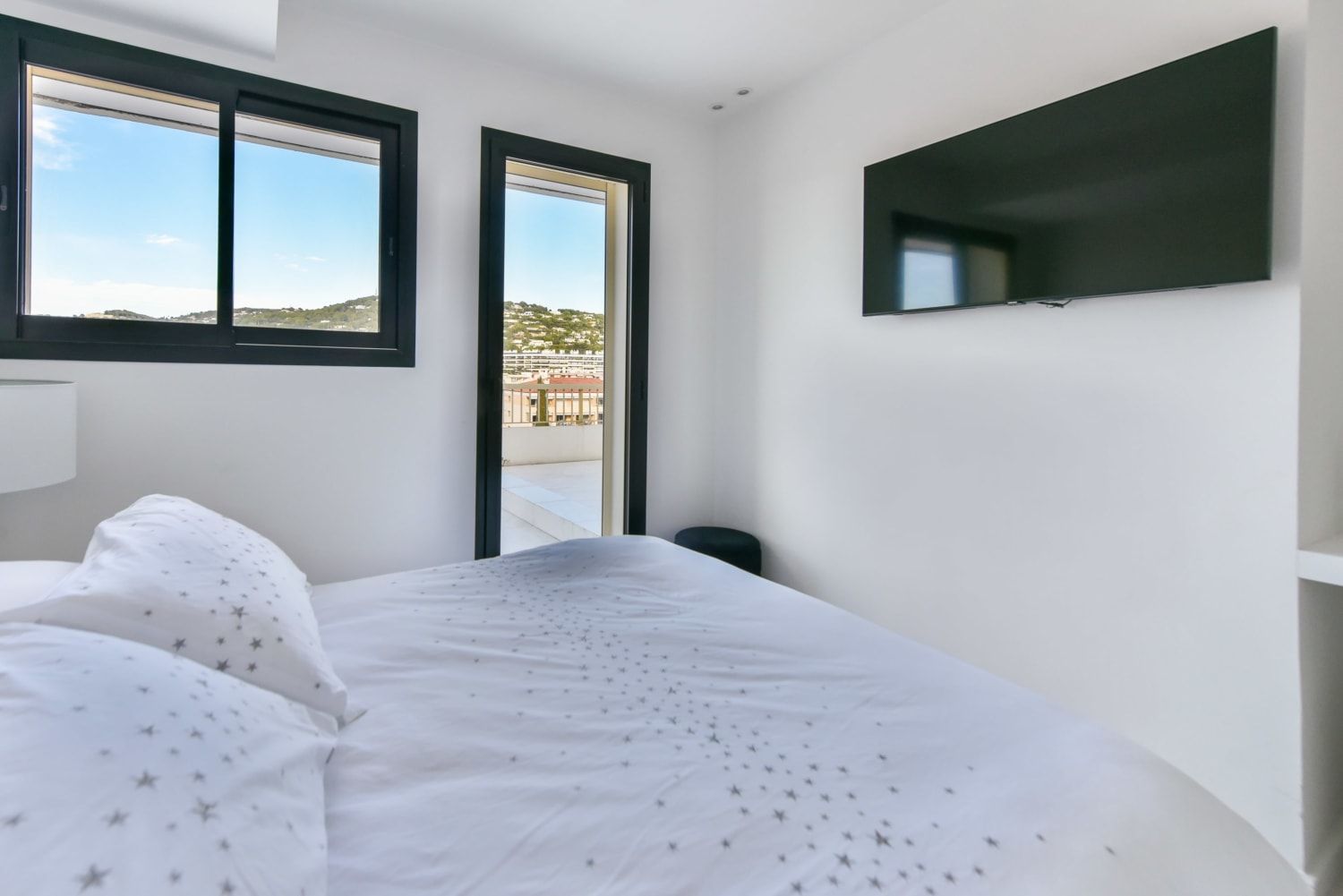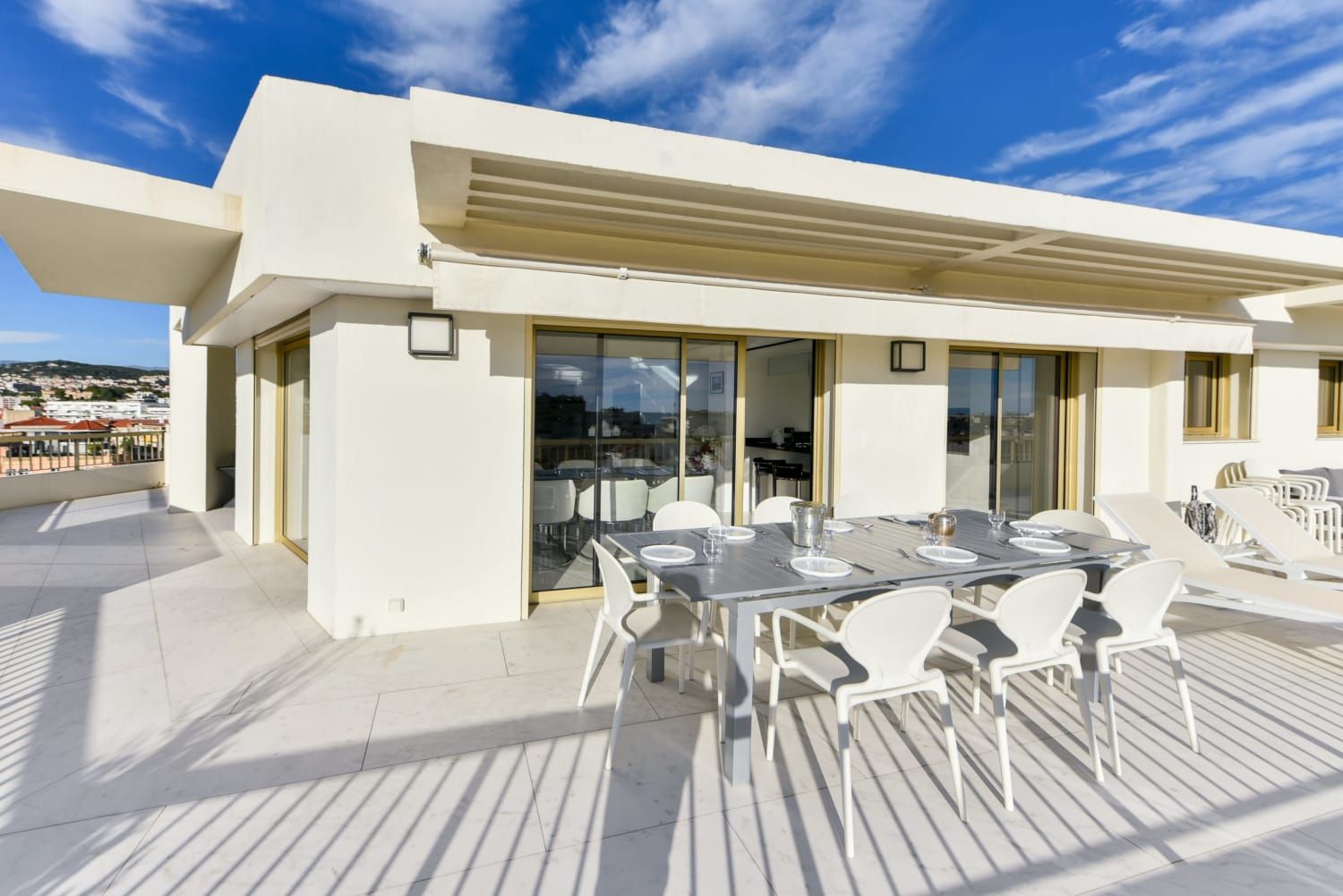 A hundred meters from the Golden Square, where Cannes comes to life at night, and a ten-minute walk from Croisette Beach, this beautiful apartment's location is one of its main attractions. But not the only one. From the sprawling terrace – complete with sun loungers and a dining table – you can appreciate the sea views over this stretch of the French Riviera. As toddlers aren't allowed here, the bright home is best suited for families with teenagers or groups of friends, but a conference room or office can be set up, so it'll even work for a business trip.