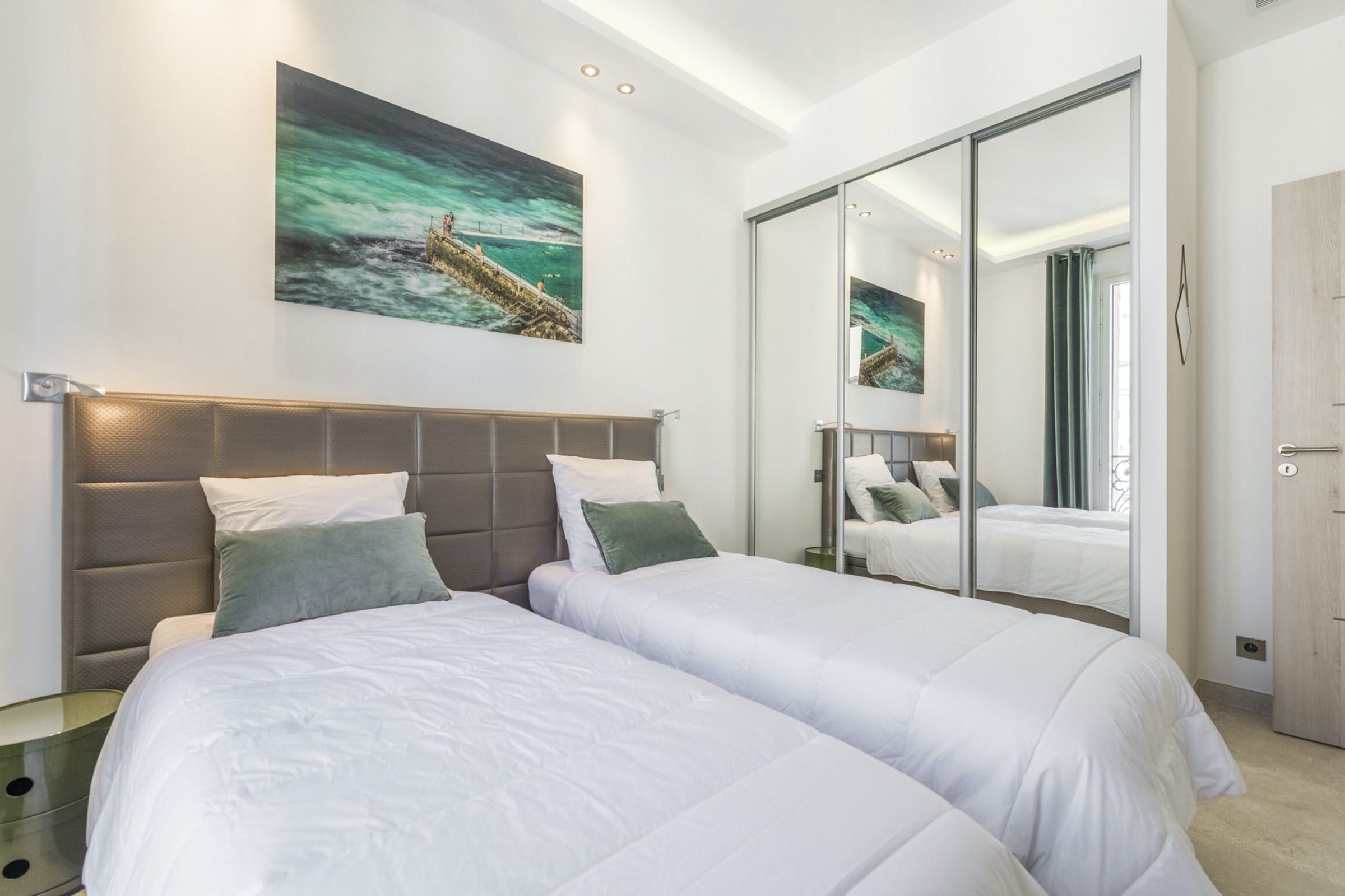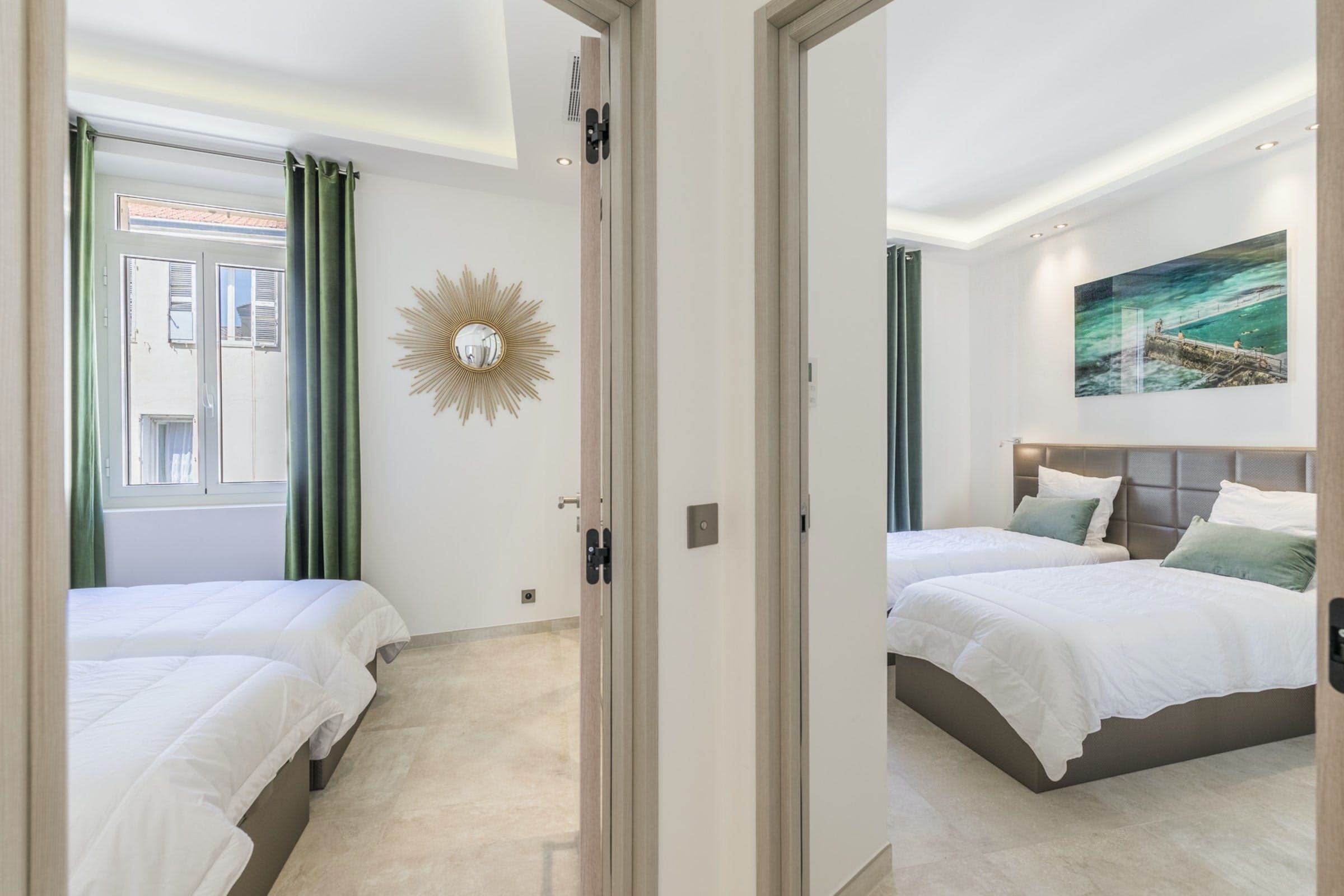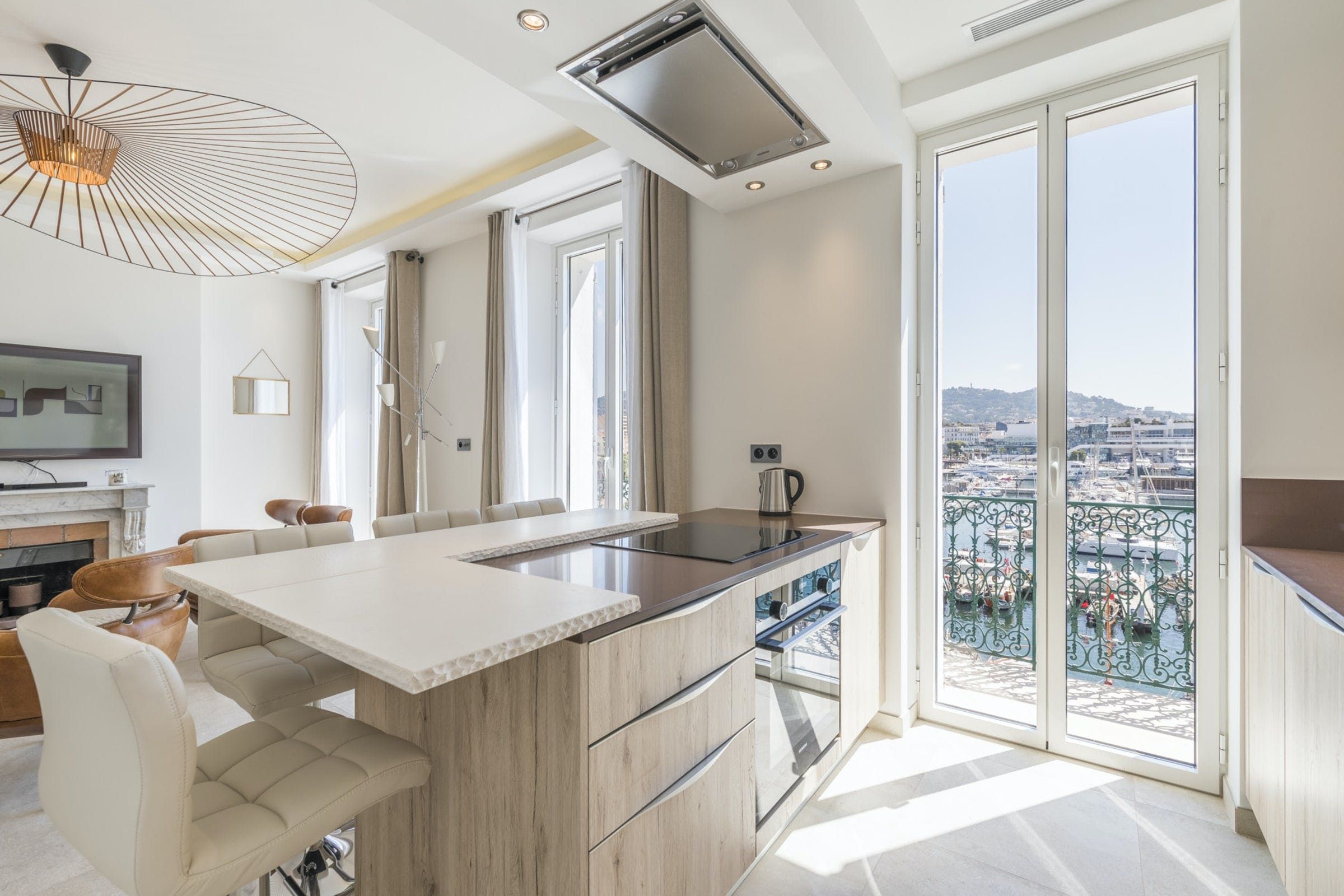 Nestled in the heart of Cannes, this stylish apartment overlooks the harbour and the sea. You'll have space to sit out and enjoy an alfresco apéritif under the sun, before walking down to the sandy coastline for a day out. Both beds can be configured as twin rooms if need be, making this home fantastic for family holidays, a getaway with friends, or even a couples' retreat. The kitchen is equipped for preparing large meals, but you'll have shops and restaurants nearby if you don't feel like cooking.