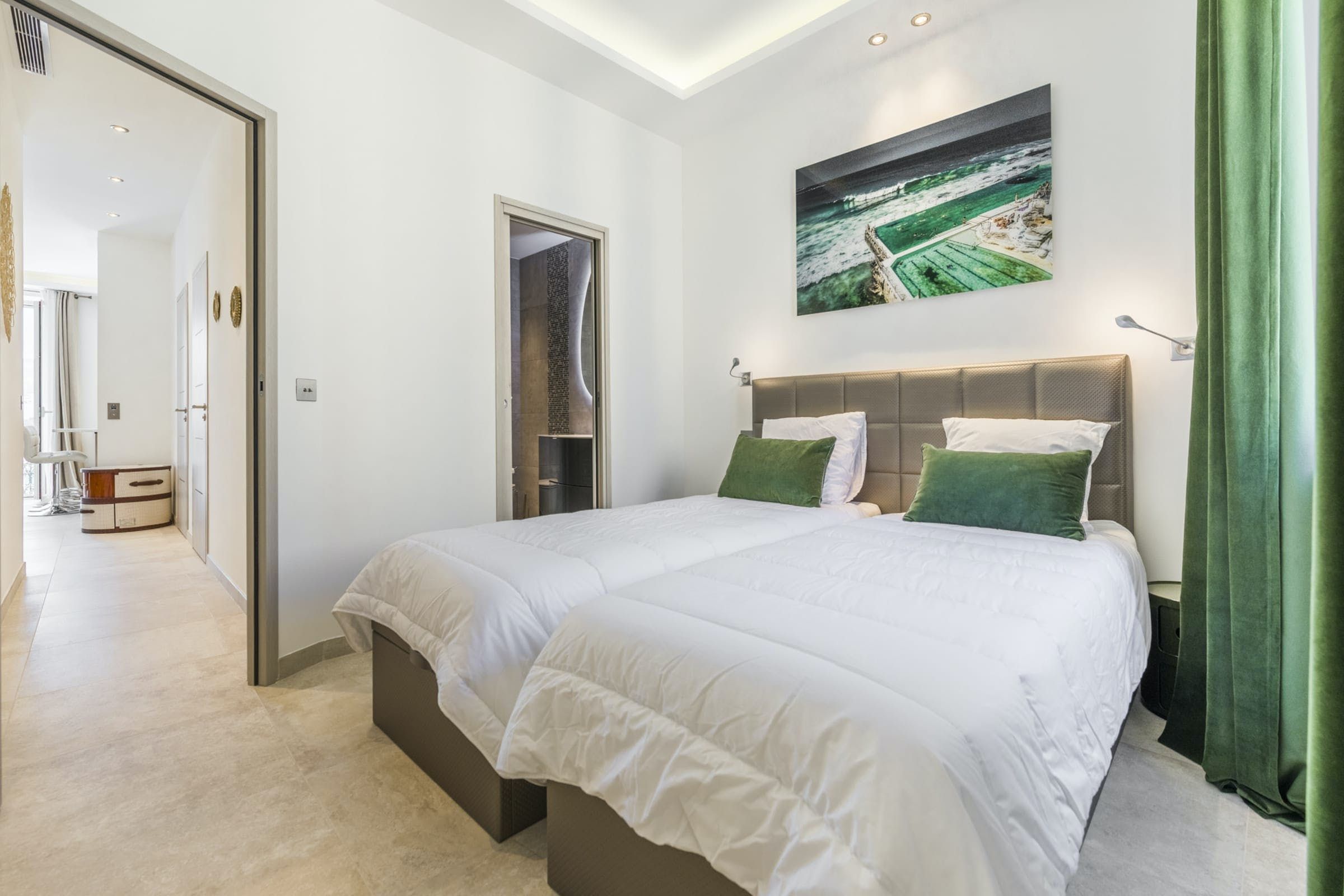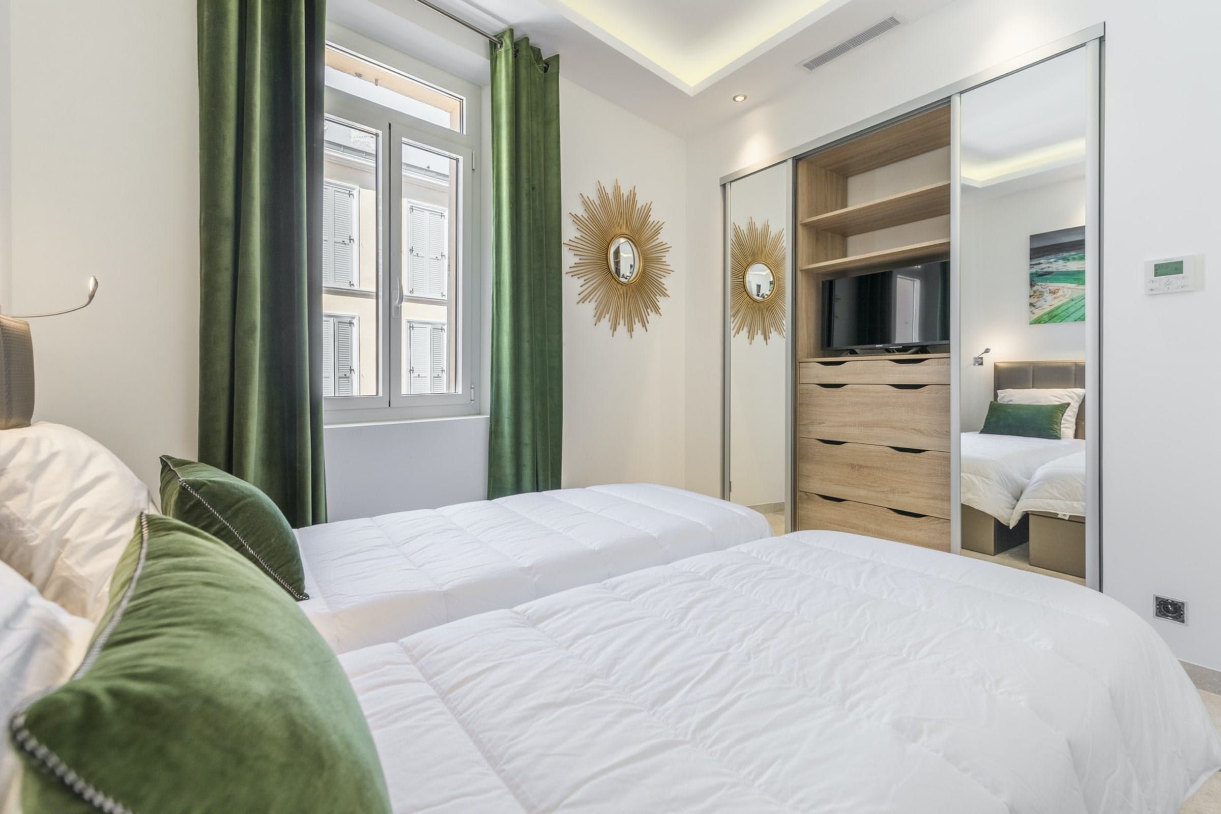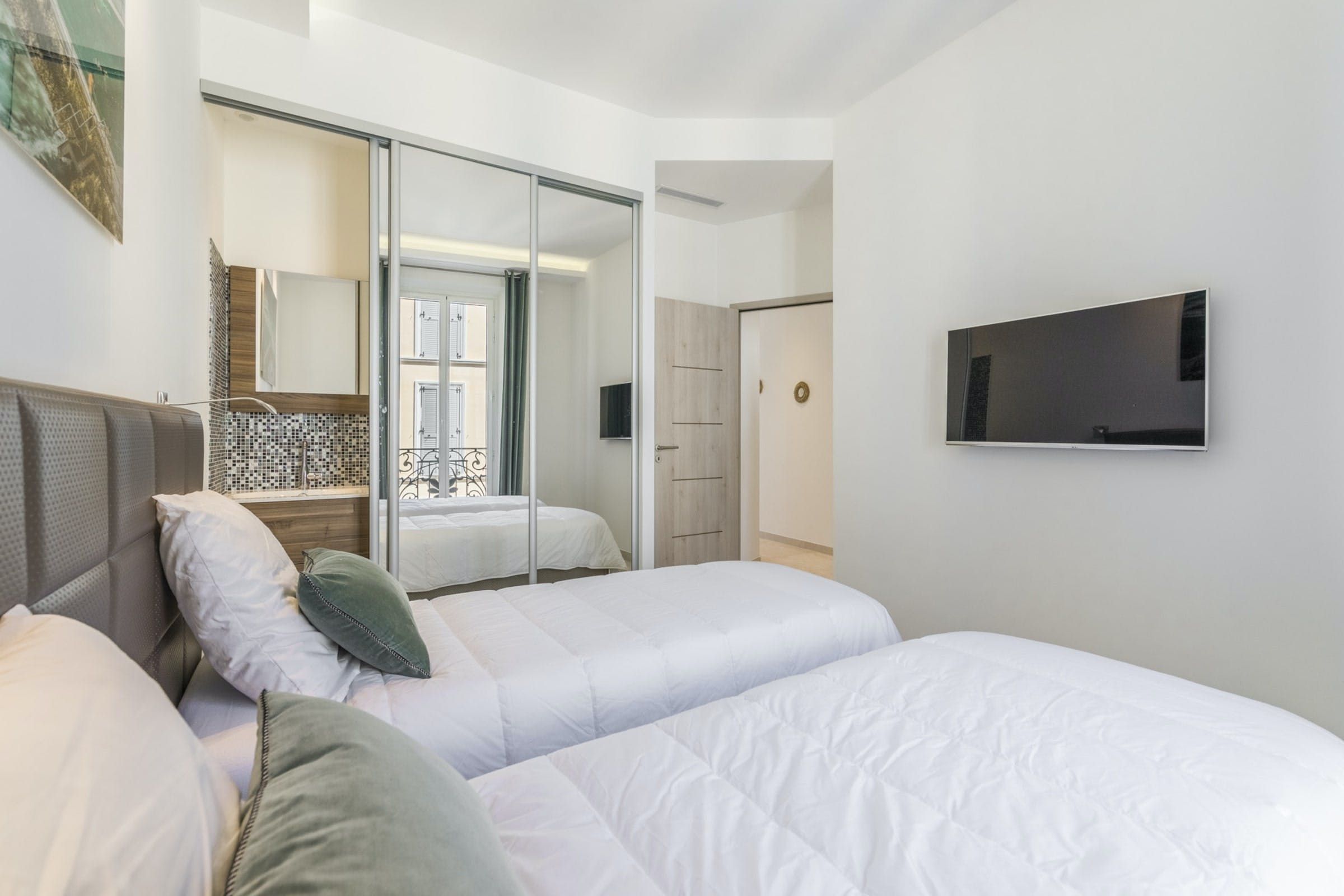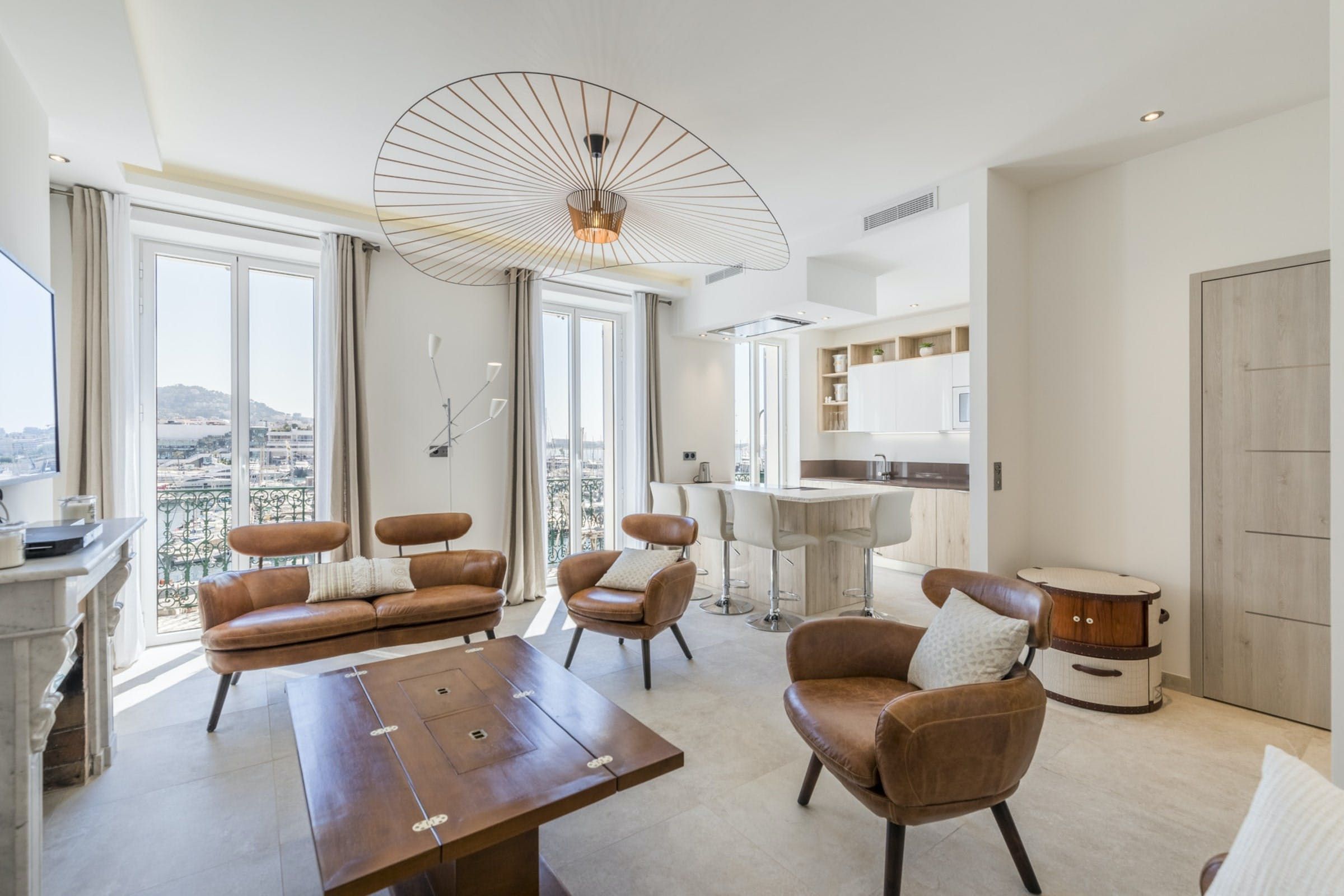 Nestled in the heart of Cannes, this stylish apartment overlooks the harbour and the sea. You'll have space to sit out and enjoy an alfresco apéritif under the sun, before walking down to the sandy coastline for a day out. Both beds can be configured as twin rooms if need be, making this home fantastic for family holidays, a getaway with friends, or even a couples' retreat. The kitchen is equipped for preparing large meals, but you'll have shops and restaurants nearby if you don't feel like cooking.
