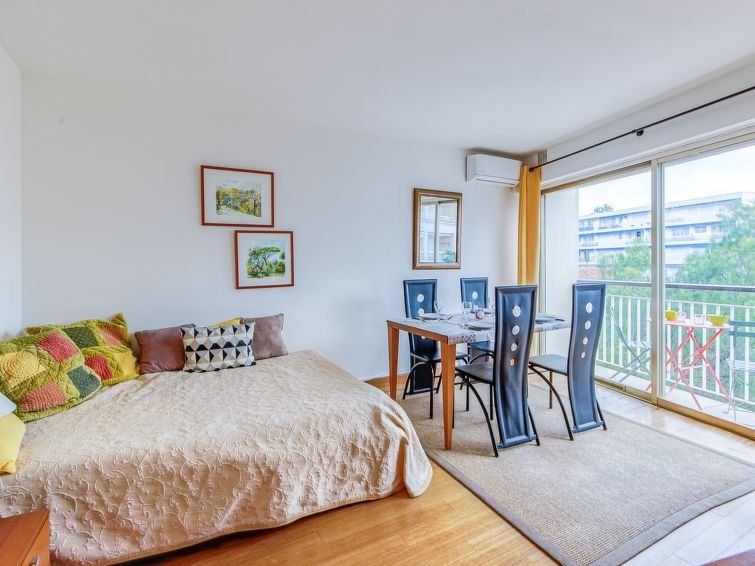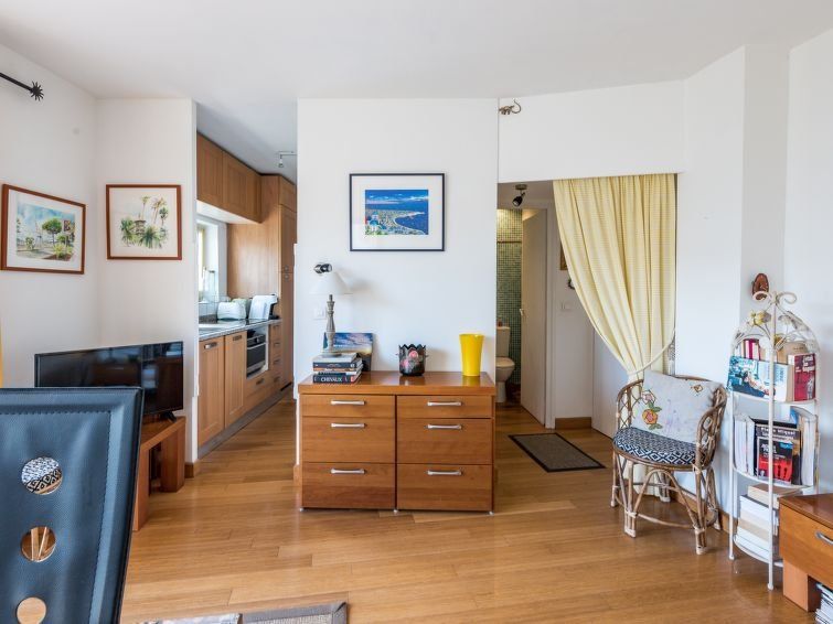 1-room apartment 24 m2 on 3rd floor. Comfortable furnishings: living/sleeping room with 1 double bed (1 x 140 cm, length 190 cm), dining table, TV and air conditioning. Exit to the balcony. Kitchenette (mini-oven, 4 induction hot plates, toaster, kettle, microwave, electric coffee machine).