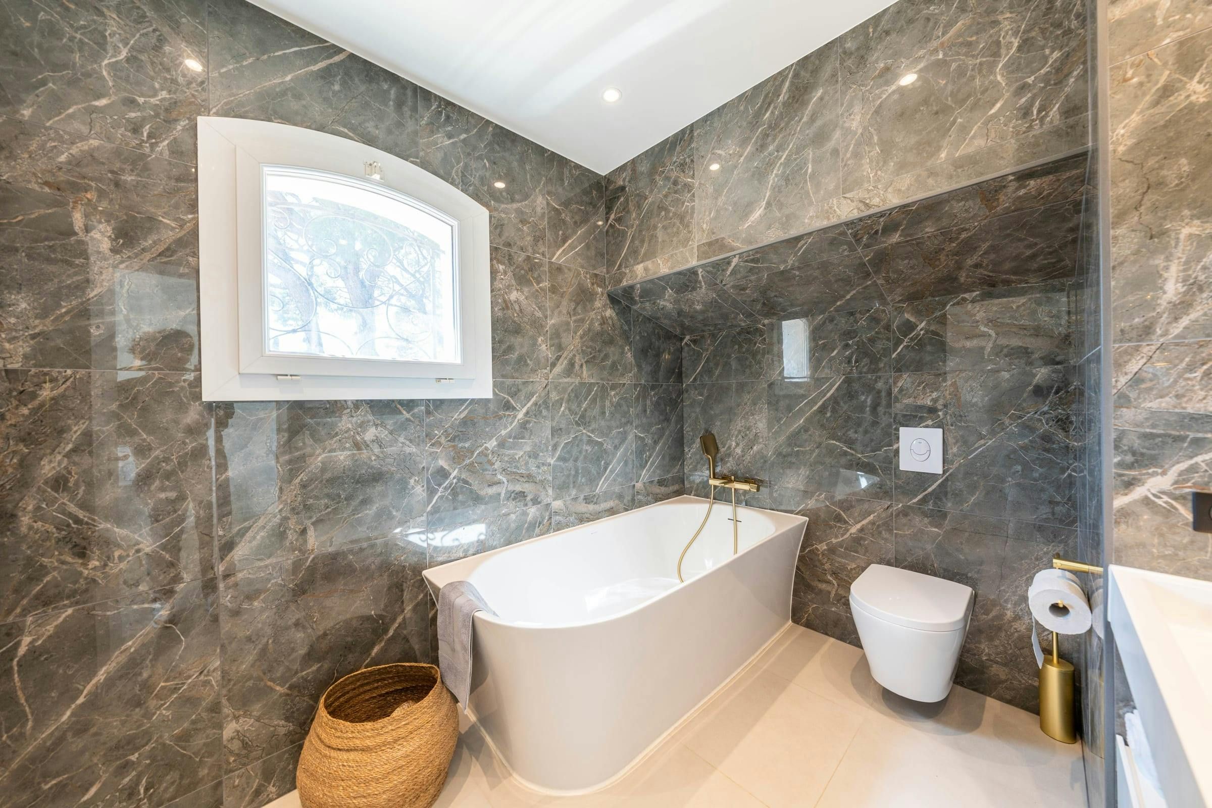 If your ideal French Riviera getaway involves more relaxing than partying, this home has everything you need. In the private spa, you'll find a gym, sauna, hammam, and jacuzzi – more than enough amenities to achieve genuine zen. Outside, the sunny terrace is the perfect place to gather with friends or family – light up the barbecue or whip up some Michelin-worthy meals in the professional kitchen. Meanwhile, a grand piano is a rarity in any home, but it makes sense in this indulgent villa. If you'd rather swim in the sea than your private pool, it's a thirty-minute walk to the seafront in Cannes, or a short drive.