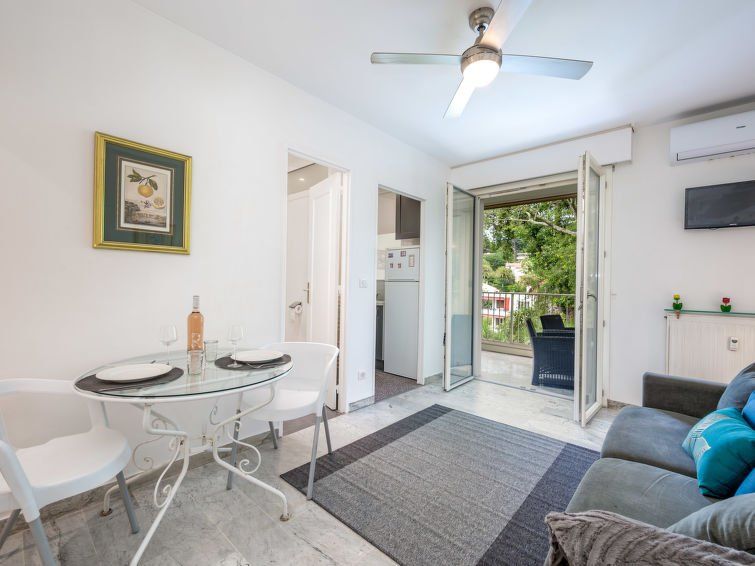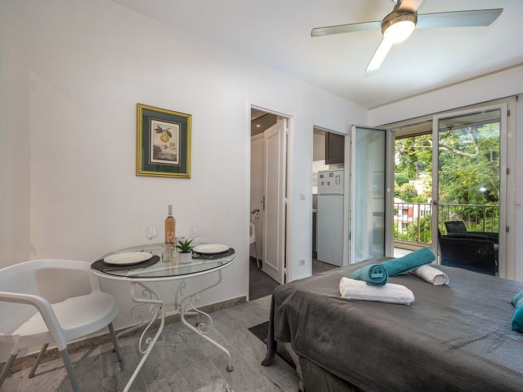 1-room apartment 20 m2 on 3rd floor. Comfortable and beautiful furnishings: living/dining room with 1 double sofabed (140 cm, length 190 cm), TV (flat screen). Exit to the terrace. Kitchen (2 hot plates, oven, toaster, kettle, microwave, freezer, electric coffee machine). Shower/WC.