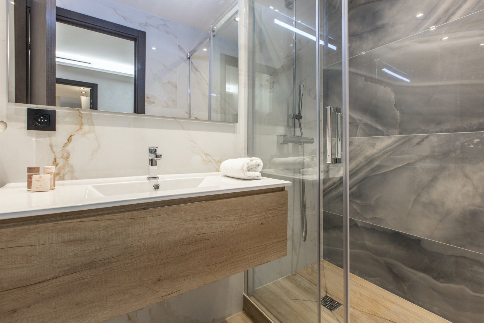 This beautiful little apartment is tucked away in the heart of Cannes and is the perfect hideaway for travellers looking for somewhere that's equal parts cosy and sophisticated. With marble floors and a separate bedroom with an en-suite, you'll have everything you need to feel right at home before you head out to explore Cannes. Wake up and make your morning coffee at the well-equipped kitchenette, perfect for small meals and snacks for keeping you fuelled on busy days. In the evening, cuddle up on the sofa and rustle up some snacks for a movie night.